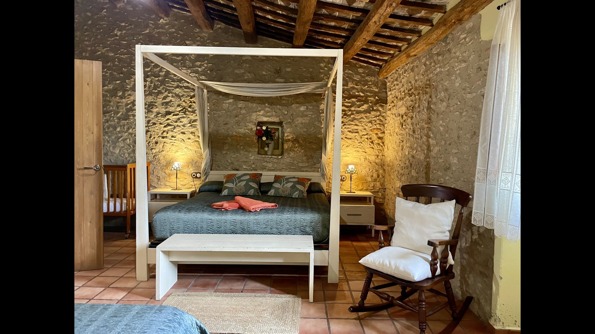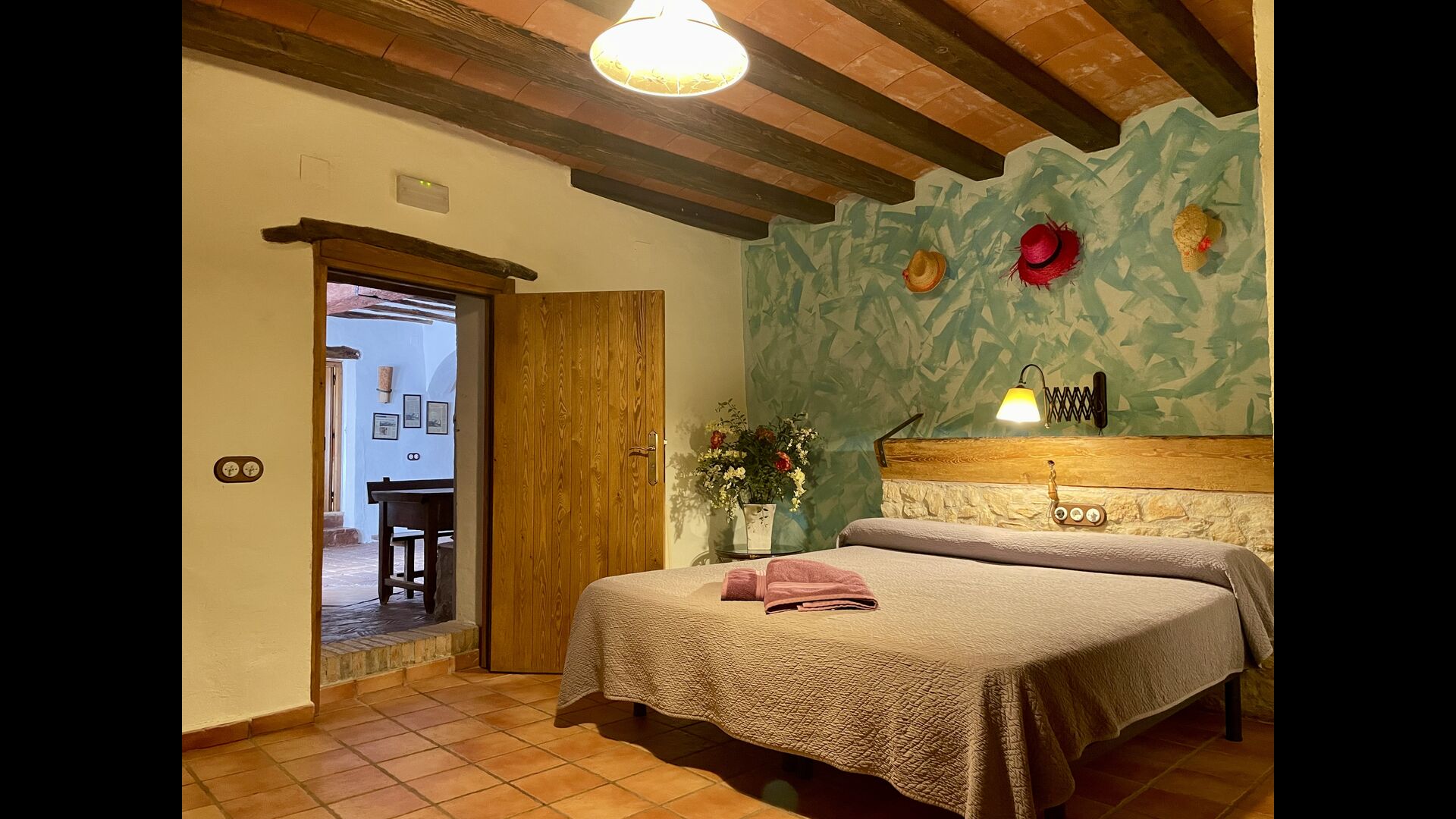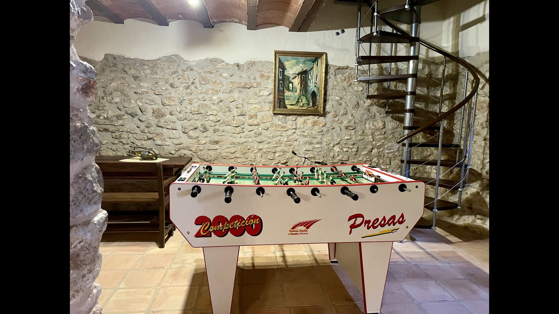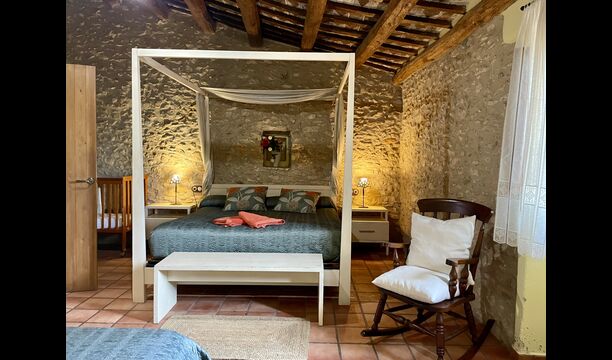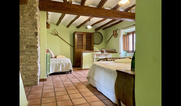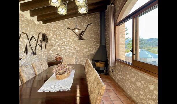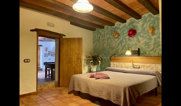 Wenn Sie Masia Lagostea betreten, gelangen Sie in einen glanzvollen Innenhof mit kleinen Tischen, einem Grillbereich und einem Eingang zu einem Essbereich im Erdgeschoss. Von hier aus haben Sie auch Zugang zum Poolbereich, der durch eine umzäunte Tür gesichert ist, und eine weitere Tür führt Sie zum Whirlpool- und Saunabereich. Das Erdgeschoss verfügt über einen ausgezeichneten Empfangsbereich</ stark>mit den Produkten der Felder, die man kaufen kann, ein restaurierter Getreidespeicher, der jetzt zu einer gemütlichen „Höhle“ umgebaut wurde; und hier finden Sie auch die Spielhalle mit Billard und Tischtennis. Auf dieser Ebene finden Sie das angepasste Schlafzimmer.