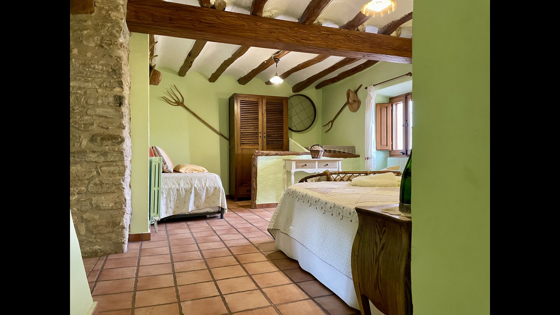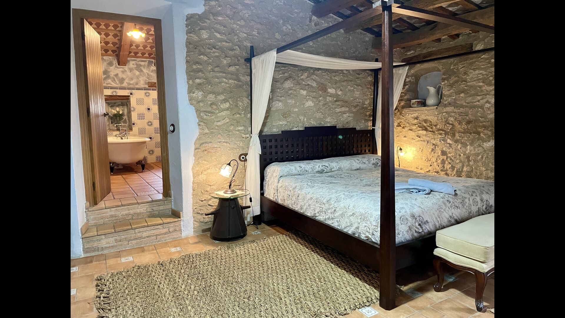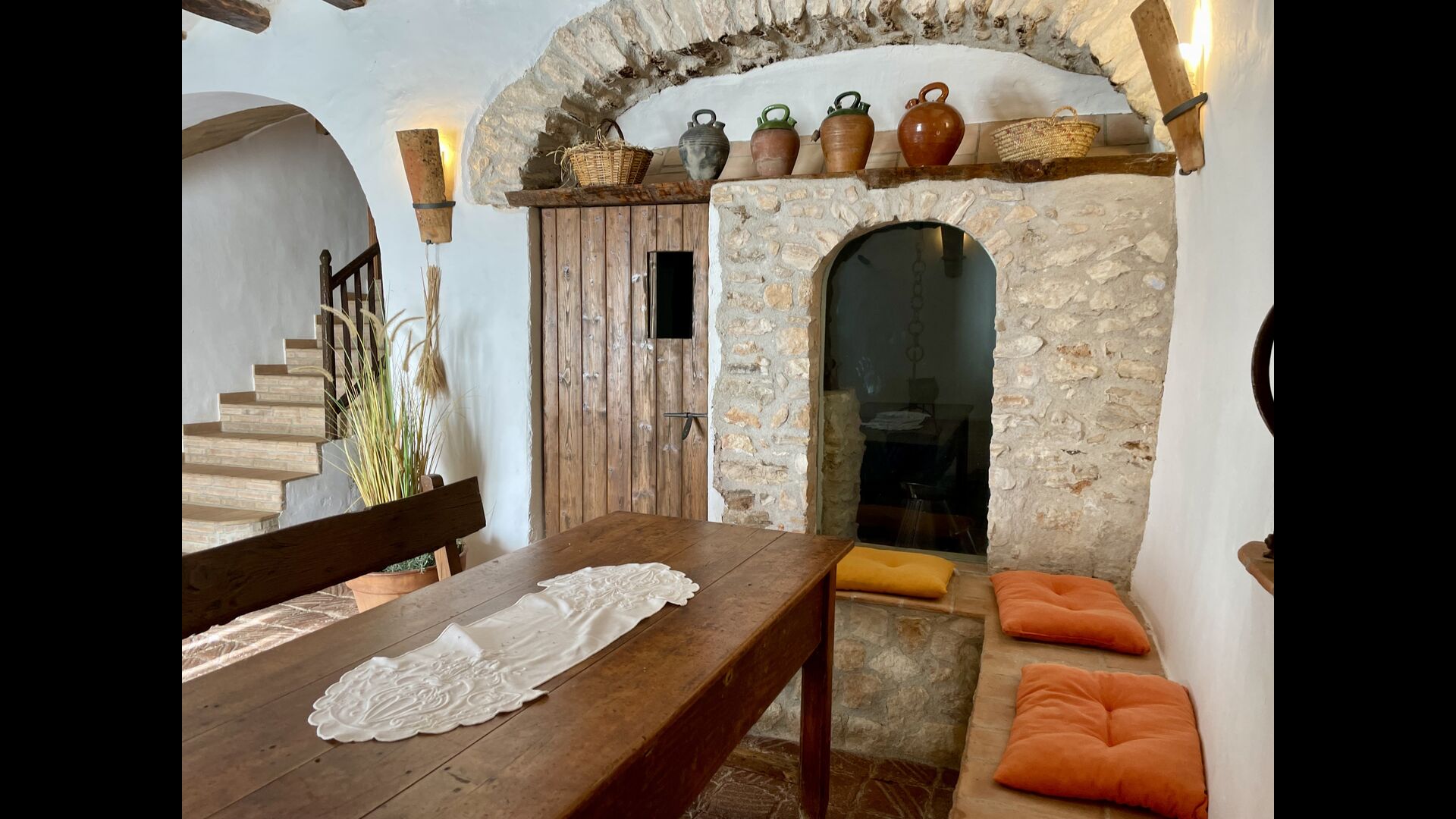 Wenn Sie Masia Lagostea betreten, gelangen Sie in einen glanzvollen Innenhof mit kleinen Tischen, einem Grillbereich und einem Eingang zu einem Essbereich im Erdgeschoss. Von hier aus haben Sie auch Zugang zum Poolbereich, der durch eine umzäunte Tür gesichert ist, und eine weitere Tür führt Sie zum Whirlpool- und Saunabereich. Das Erdgeschoss verfügt über einen ausgezeichneten Empfangsbereich</ stark>mit den Produkten der Felder, die man kaufen kann, ein restaurierter Getreidespeicher, der jetzt zu einer gemütlichen „Höhle“ umgebaut wurde; und hier finden Sie auch die Spielhalle mit Billard und Tischtennis. Auf dieser Ebene finden Sie das angepasste Schlafzimmer.