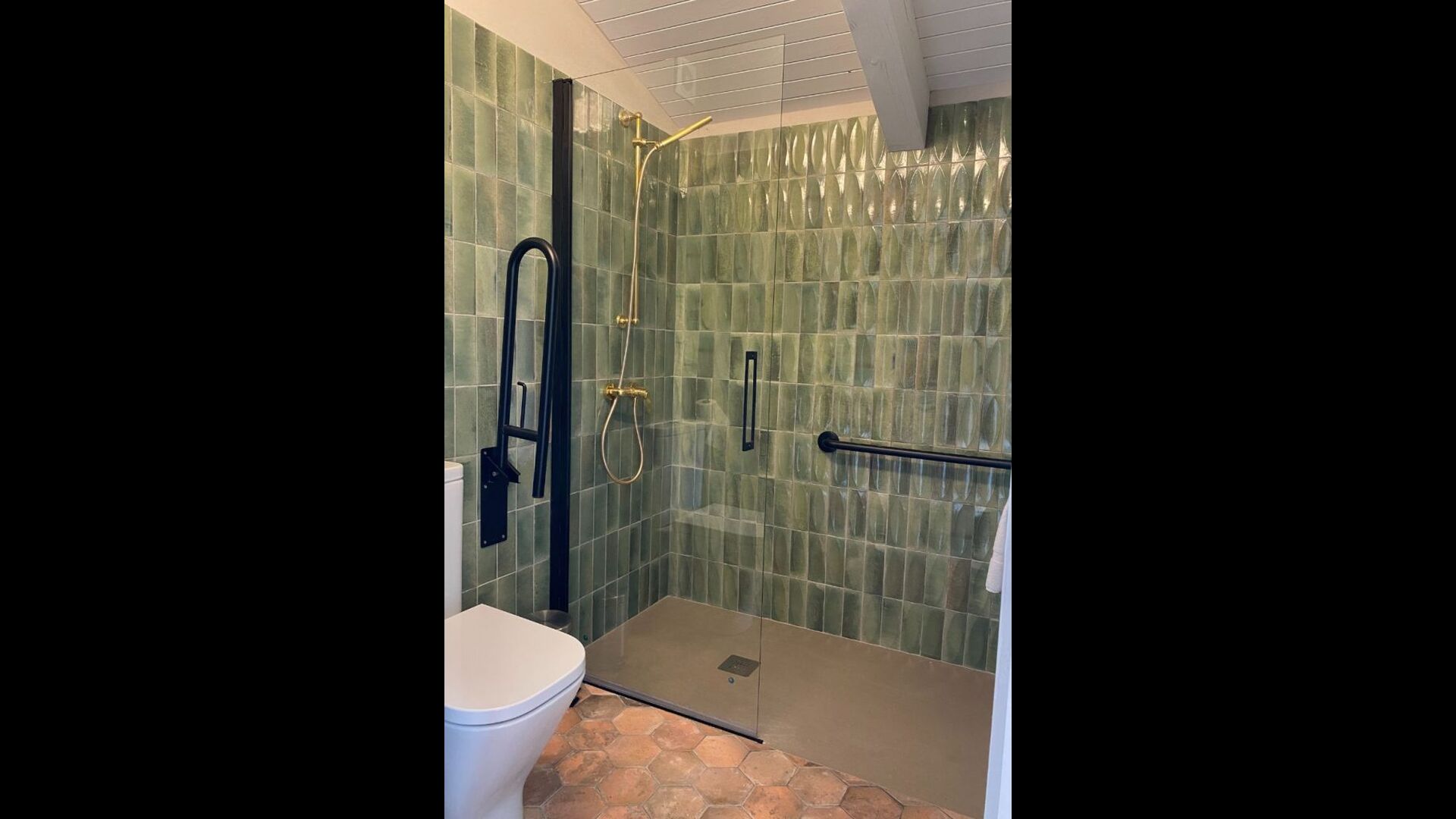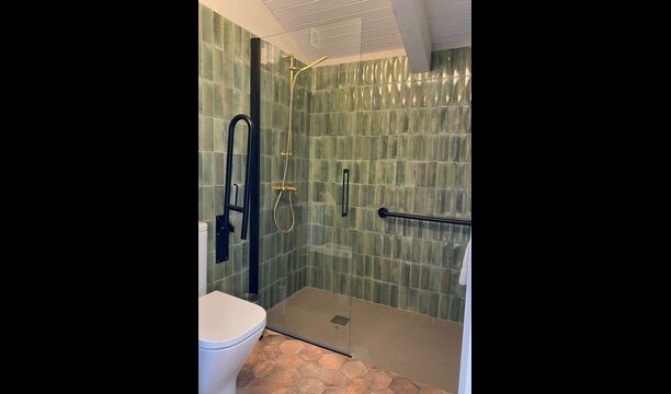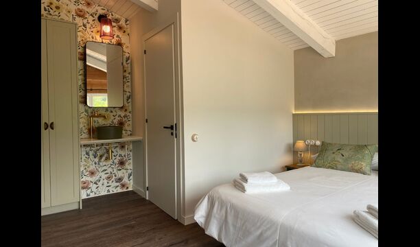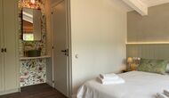 Im Erdgeschoss befinden sich die Küche, das Wohnzimmer mit Kamin und das Esszimmer. Ein Doppelzimmer mit rollstuhlgerechtem Bad befindet sich ebenfalls im Erdgeschoss. Das Haus verfügt über eine zweite Ebene, auf der sich ein zusätzliches Doppelzimmer mit Bad befindet.