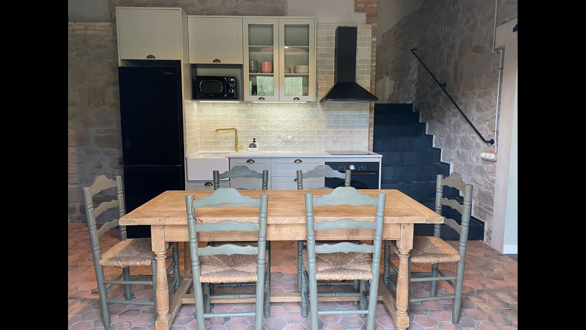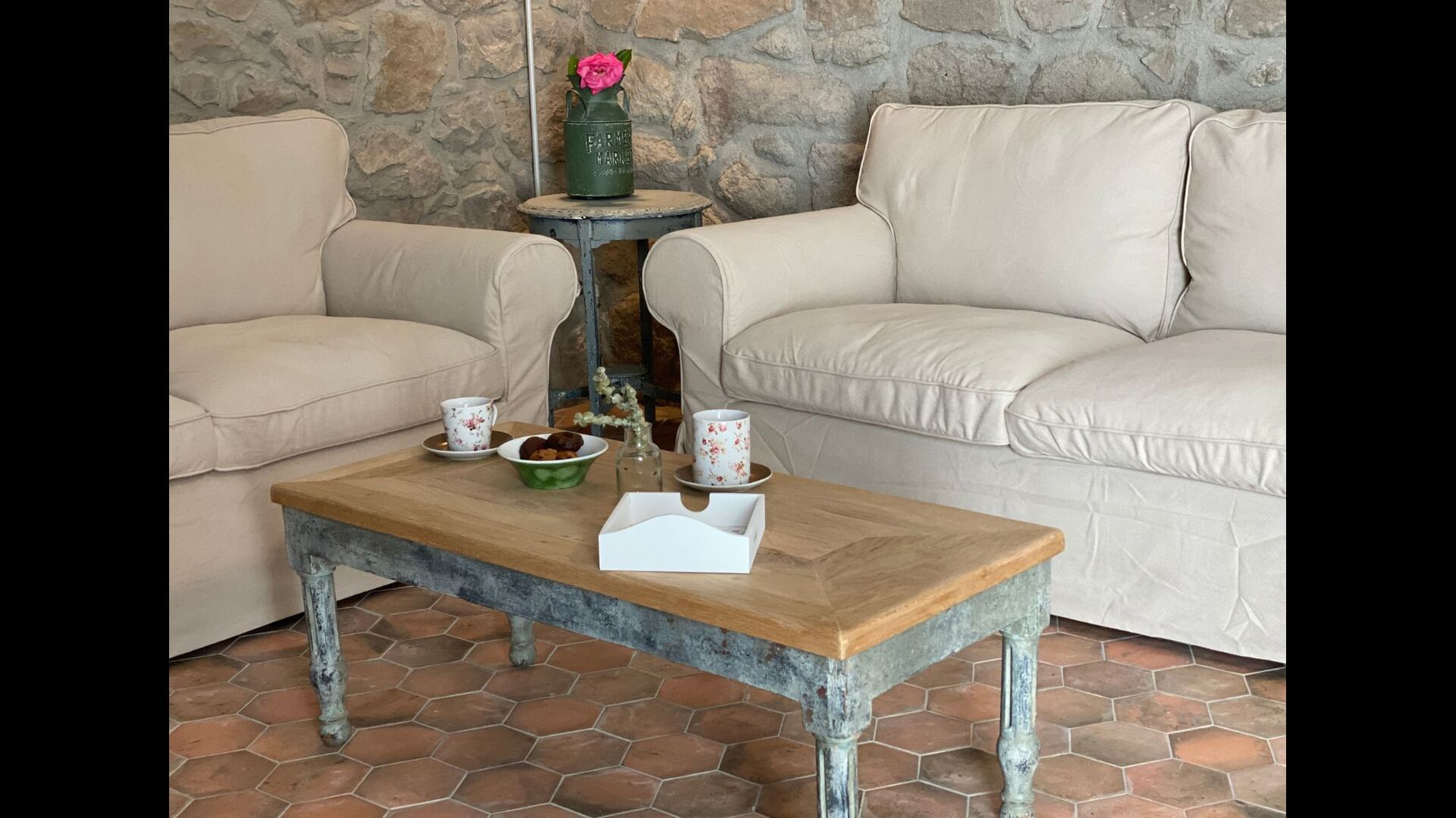 Die schöne Terrasse ist direkt mit dem Haus verbunden und bietet Ihnen sowohl sonnige Plätze, um den katalanischen Sommer zu genießen, als auch schattige Plätze, falls es tagsüber zu heiß wird. Und dann können Sie sich natürlich auch im privaten Swimmingpool erfrischen. Die Terrasse verfügt außerdem über Sonnenliegen, einen Terrassentisch und einen Grill.