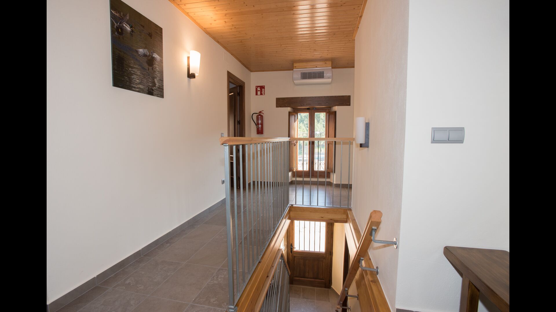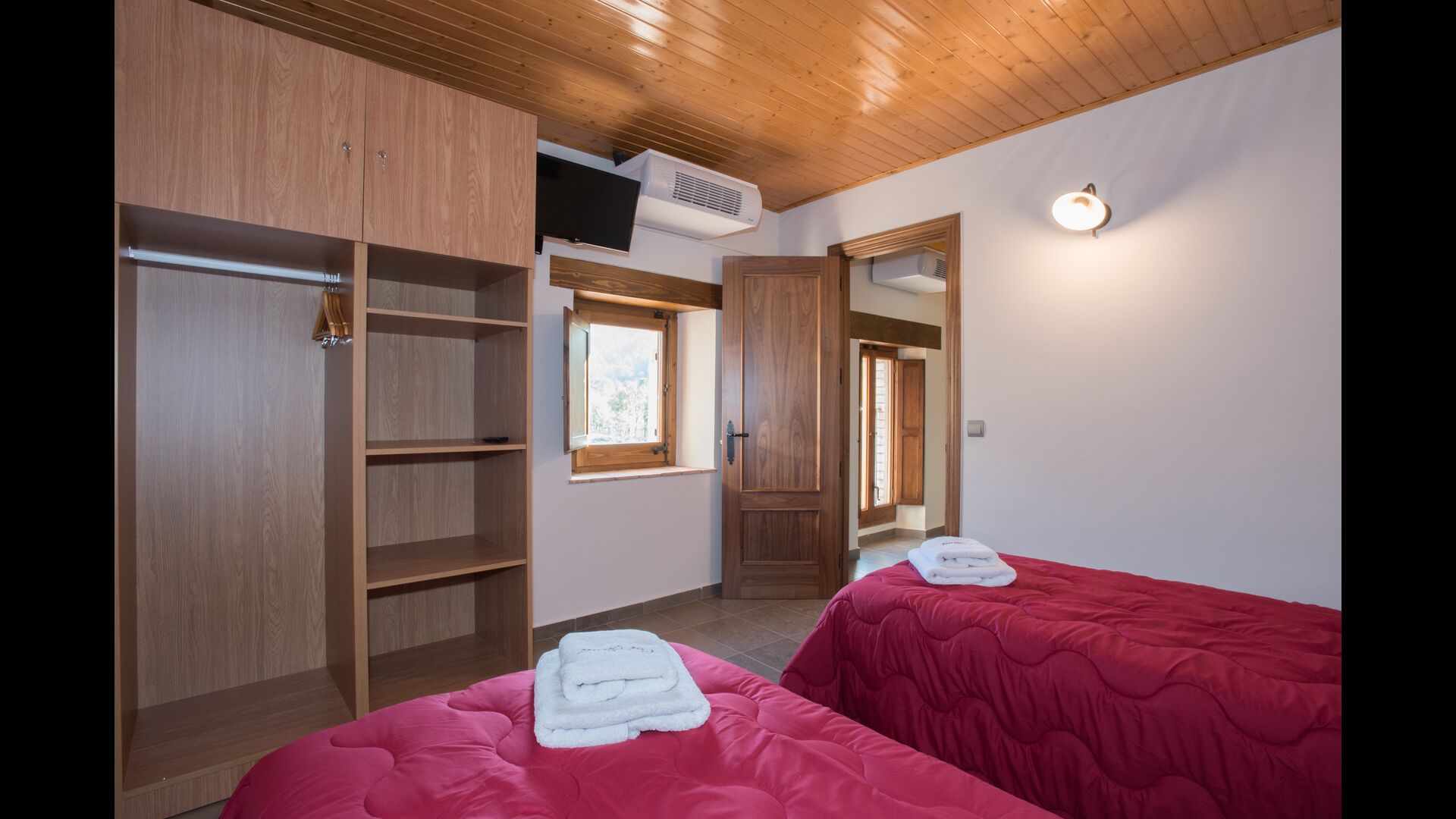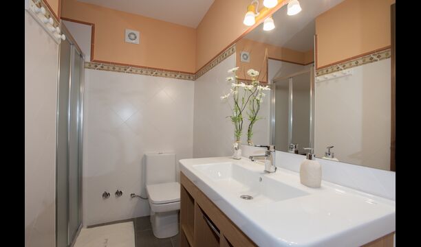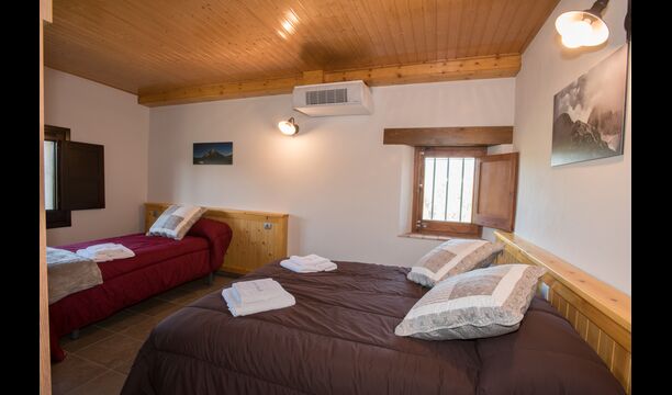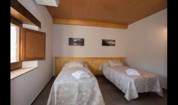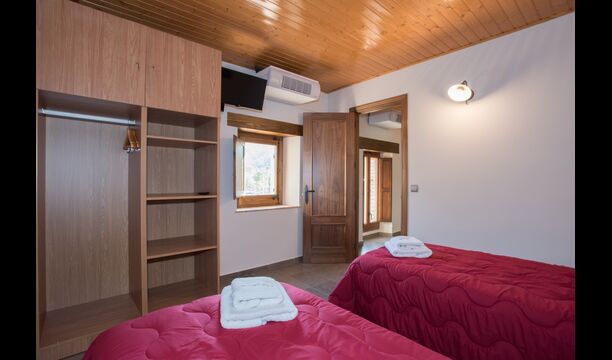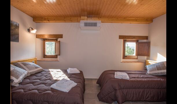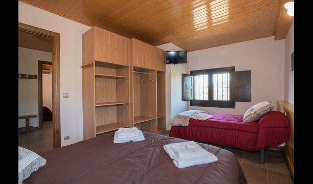 Im Obergeschoss befinden sich die weiteren 4 Schlafzimmer, die für 3 Familien ausgestattet sind, da es 2 Dreibettzimmer und 1 Doppelzimmer gibt, und schließlich wurde das vierte Schlafzimmer in ein Kinderzimmer mit zwei Etagenbetten umgewandelt. Es gibt auch zwei Badezimmer auf dieser Etage, also insgesamt drei. Da es einem etwas heiß wird, gibt es in diesem Raum eine Klimaanlage.