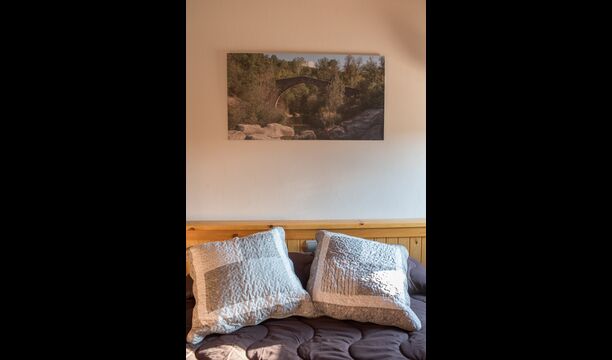 Das Haus hat eine sehr schöne Aufteilung mit den Gemeinschaftsräumen im Erdgeschoss. Dazu gehören eine gut ausgestattete Küche, ein Aufenthaltsraum mit Esstisch und Sofas und TV. Darüber hinaus gibt es im Erdgeschoss ein Schlafzimmer mit Doppelbett und ein angepasstes Badezimmer.