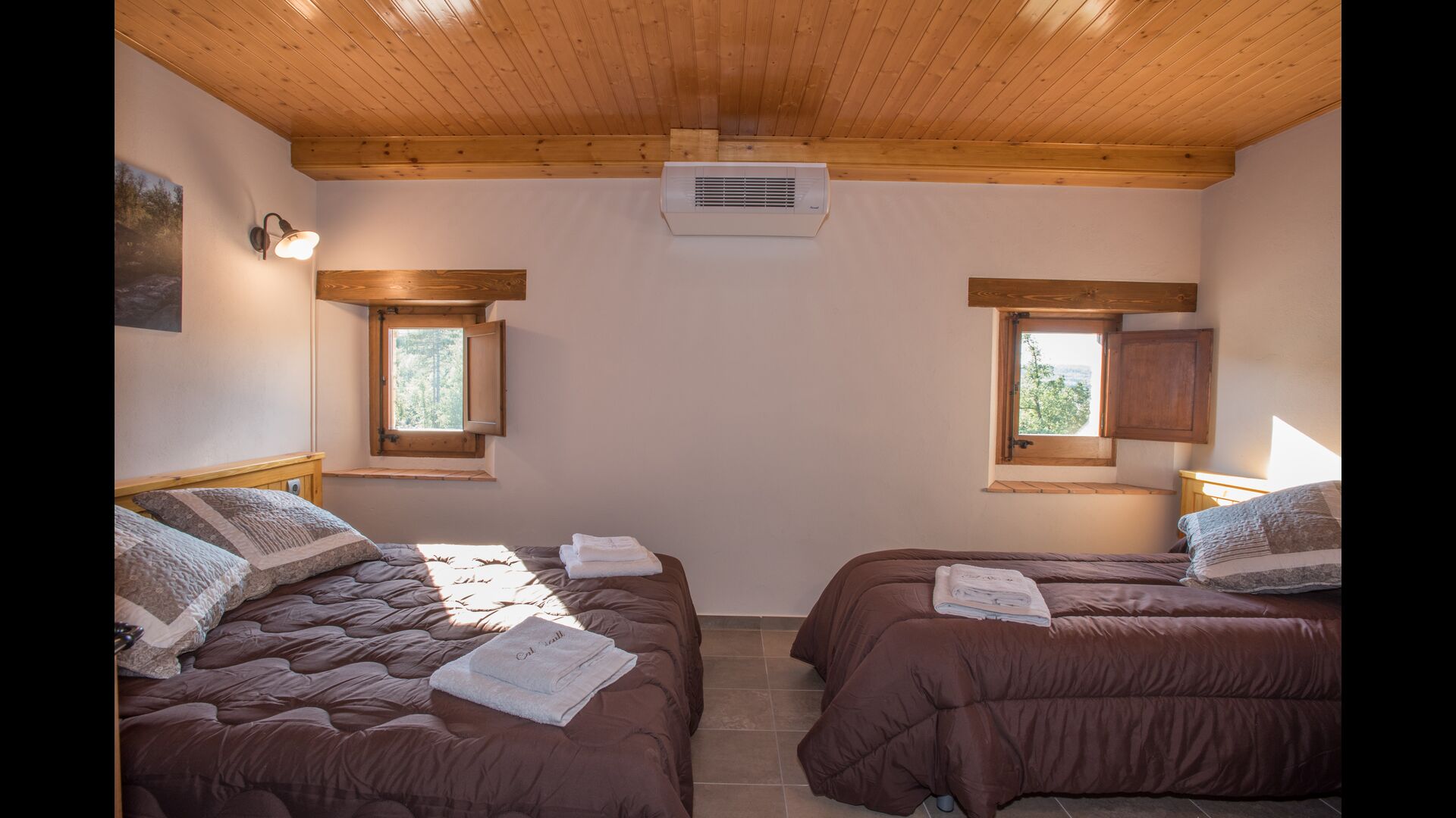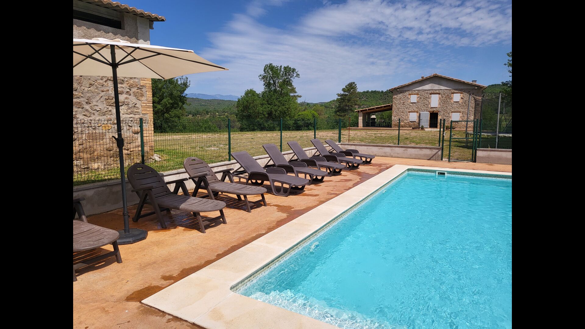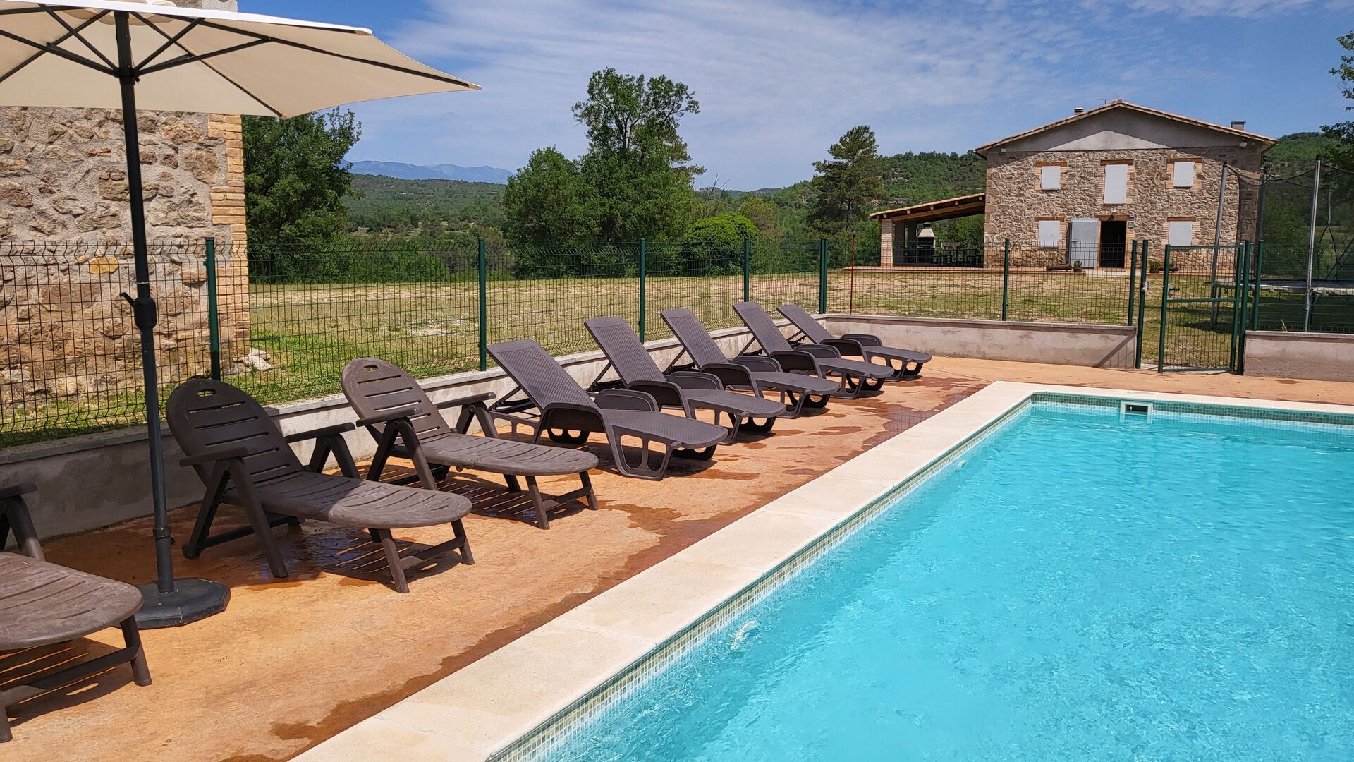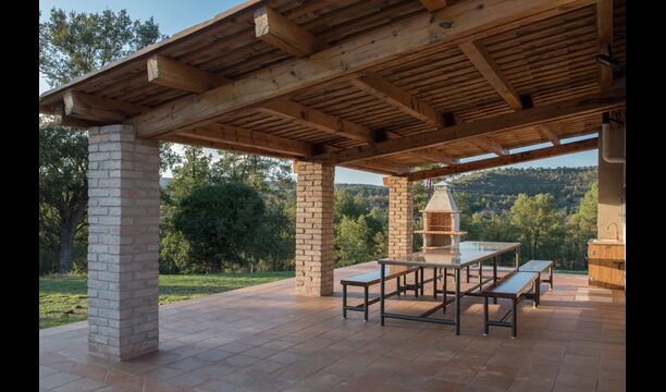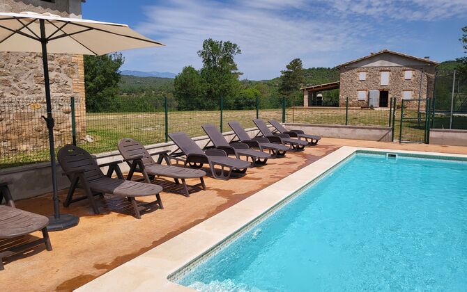 Übernachten Sie in schöner Umgebung ohne Nachbarn im klassischen katalanischen Kalksteinhaus für 12+2 Personen. Genießen Sie die Aussicht auf die bewaldeten Berge oder machen Sie einen kurzen Spaziergang hinunter zur Riera - dem kleinen Fluss, der sich direkt unterhalb des Hauses seinen Weg durch die Landschaft bahnt und Ihnen je nach Wetter sogar schöne kleine Pools zum Schwimmen bietet und auch ein winziges Wasserfall.