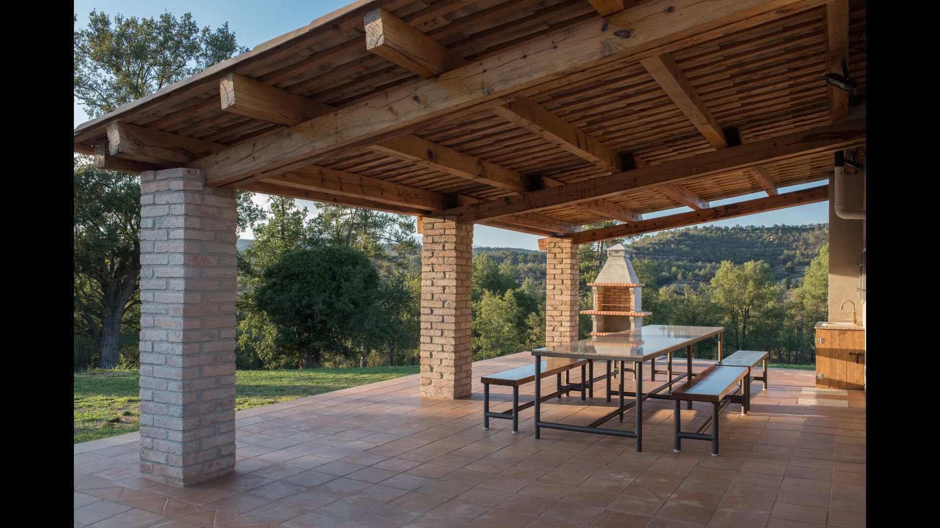 Im Sommer werden Sie sich jedoch wahrscheinlich meistens draußen aufhalten, und hier können Sie das Leben auf der sehr schönen überdachten Terrasse mit Grill genießen und von wo aus Sie den Swimmingpool (der zur zusätzlichen Sicherheit auch eingezäunt ist) leicht im Auge behalten können. .