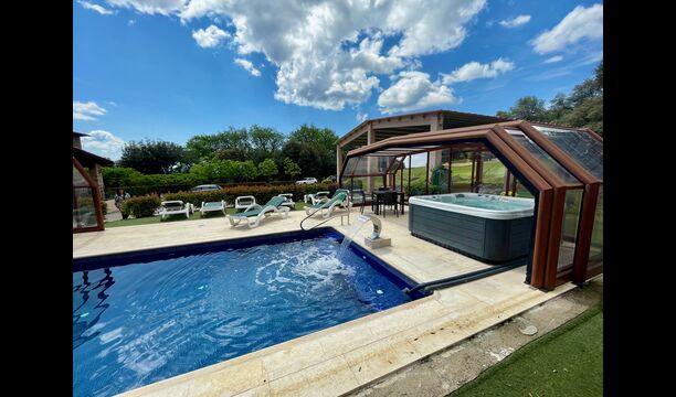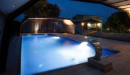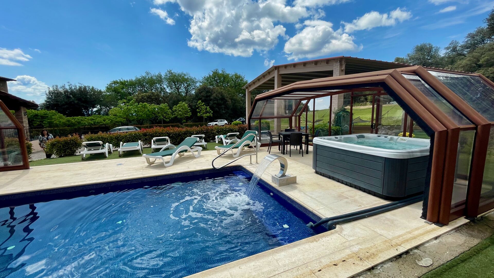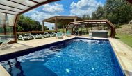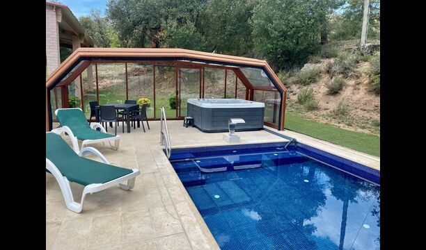 Das Ferienhaus ist ein 350m2 großes Haus mit 7 schön eingerichteten und großen Schlafzimmern, alle mit eigenen Bädern. Es hat einen großen Garten, eine schöne überdachte Terrasse und ein beheiztes Schwimmbad, das geöffnet und abgedeckt werden kann, wenn Sie es wollen - hier ist auch ein Jacuzzi.