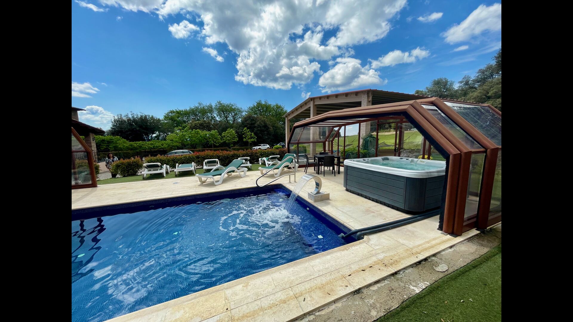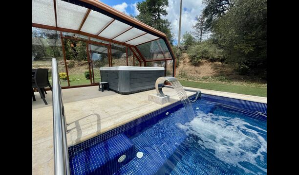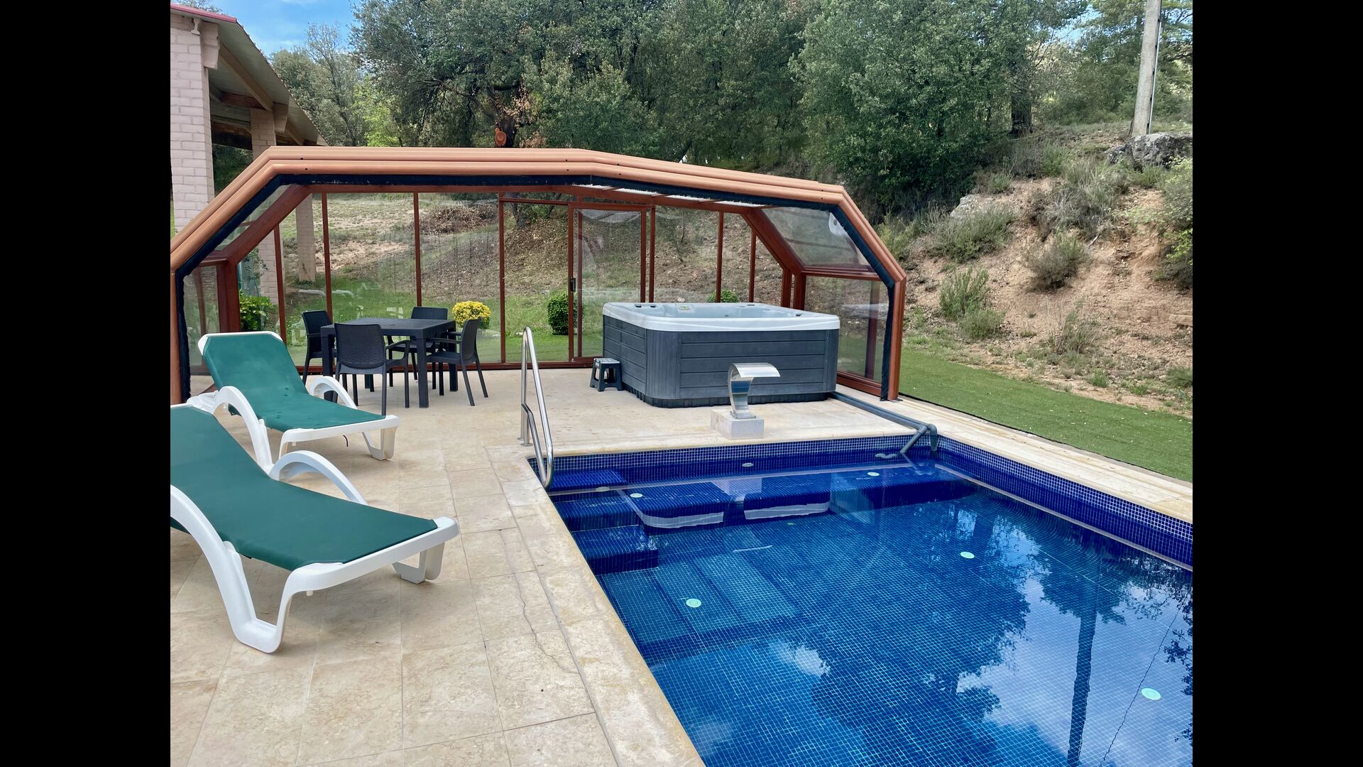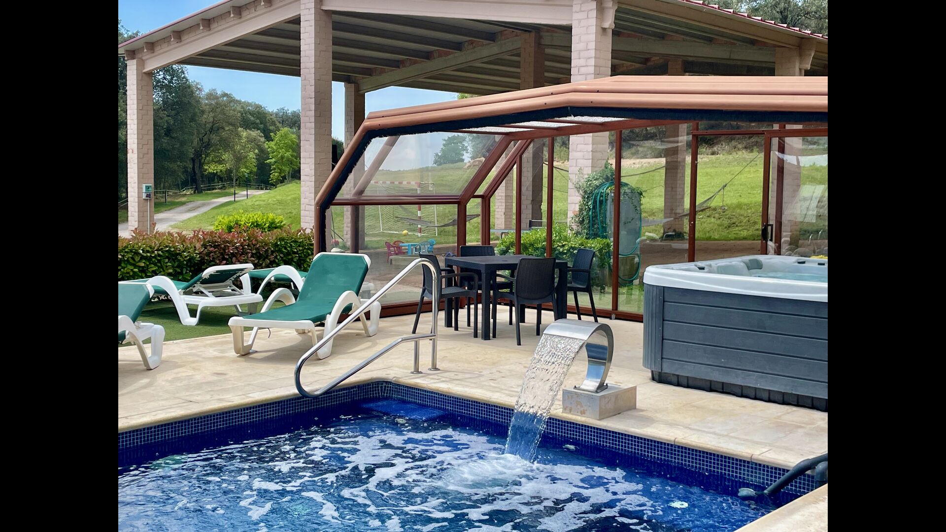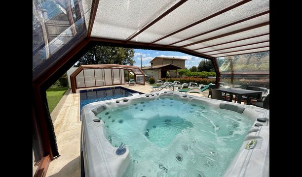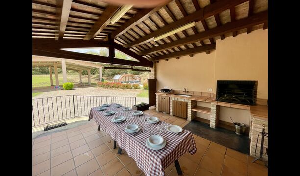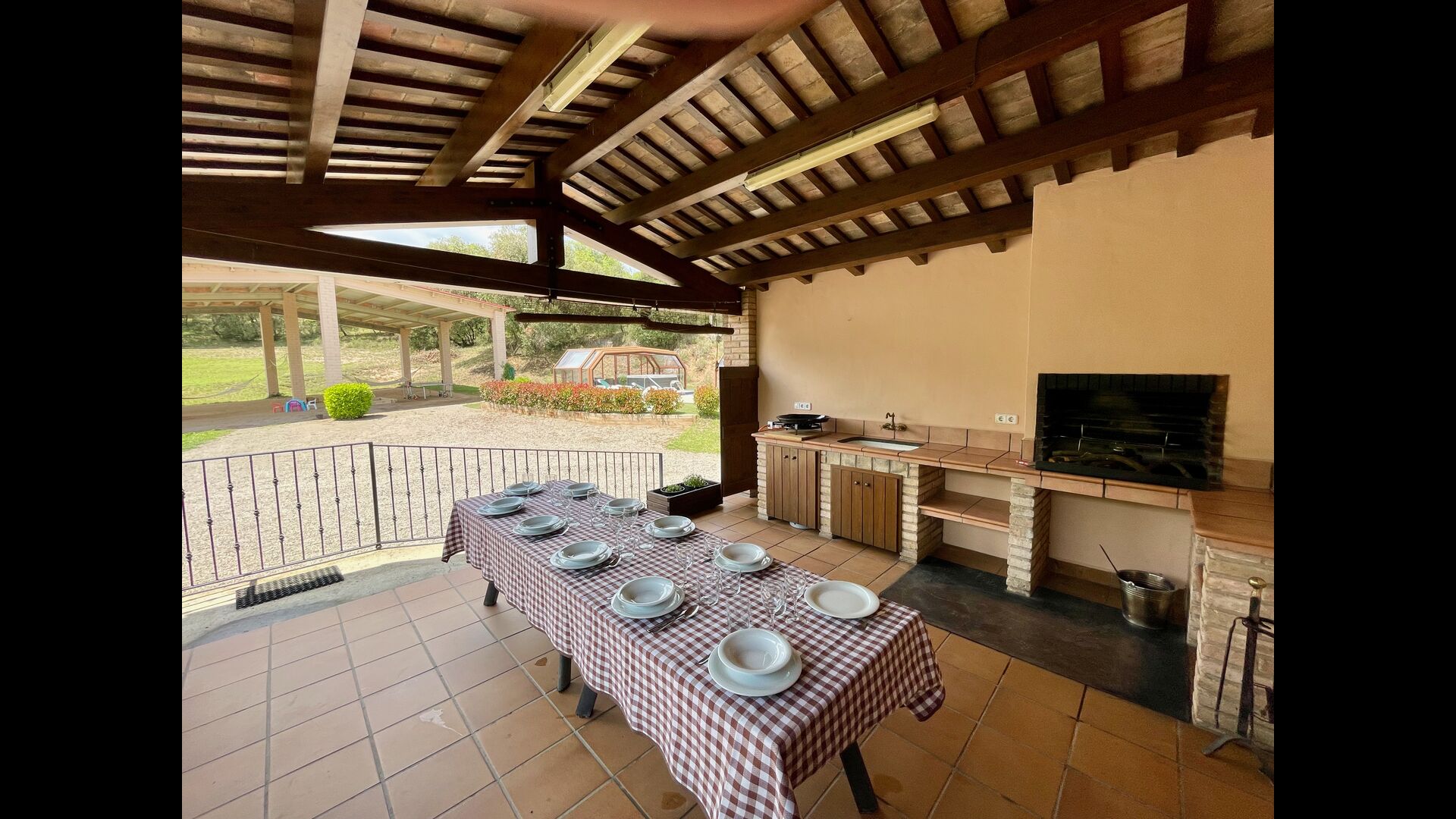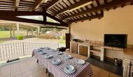 Der Außenbereich ist groß und in Fortsetzung der überdachten Terrasse mit BBQ und eine wunderbare Aussen-Küche gibt es auch einen kleinen Saal mit einem langen Esstisch sowie Billard, Tischfußball und einem großen Flachbild-TV. Abgesehen von dieser Terrasse gibt es eine weitere Terrasse und Hängematten auf der Rückseite des Hauses, wo man wirklich die Aussicht genießen kann. Der Garten hat auch einen überdachten Basketballplatz. Das Pool-Haus ist ein echter Entspannungs-Bereich, wo Sie im Jacuzzi entspannen können und die Kinder werden den großen Springbrunnen in den Pool, die ein kleines "Wasserfall" in den Pool schafft, lieben. Es gibt auch eine wirklich gute WLAN-Verbindung im ganzen Haus.