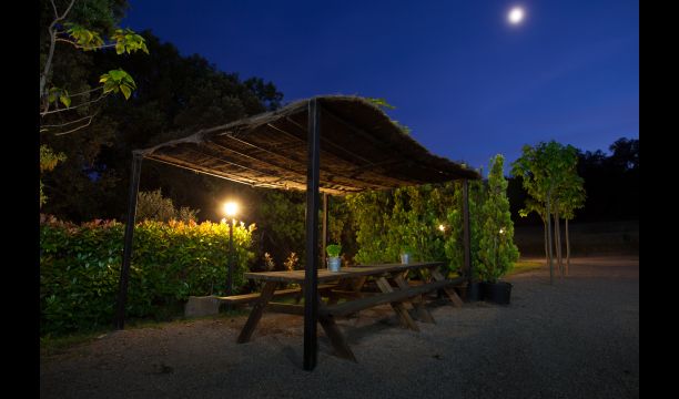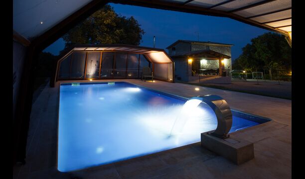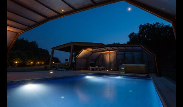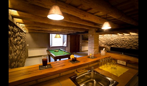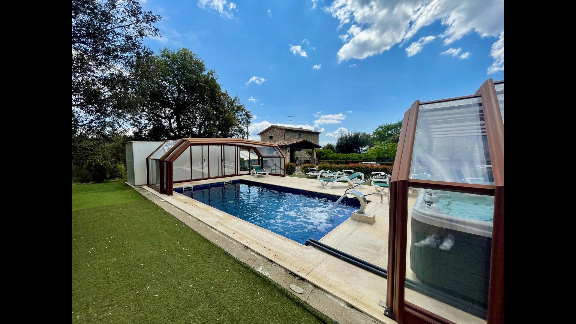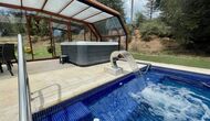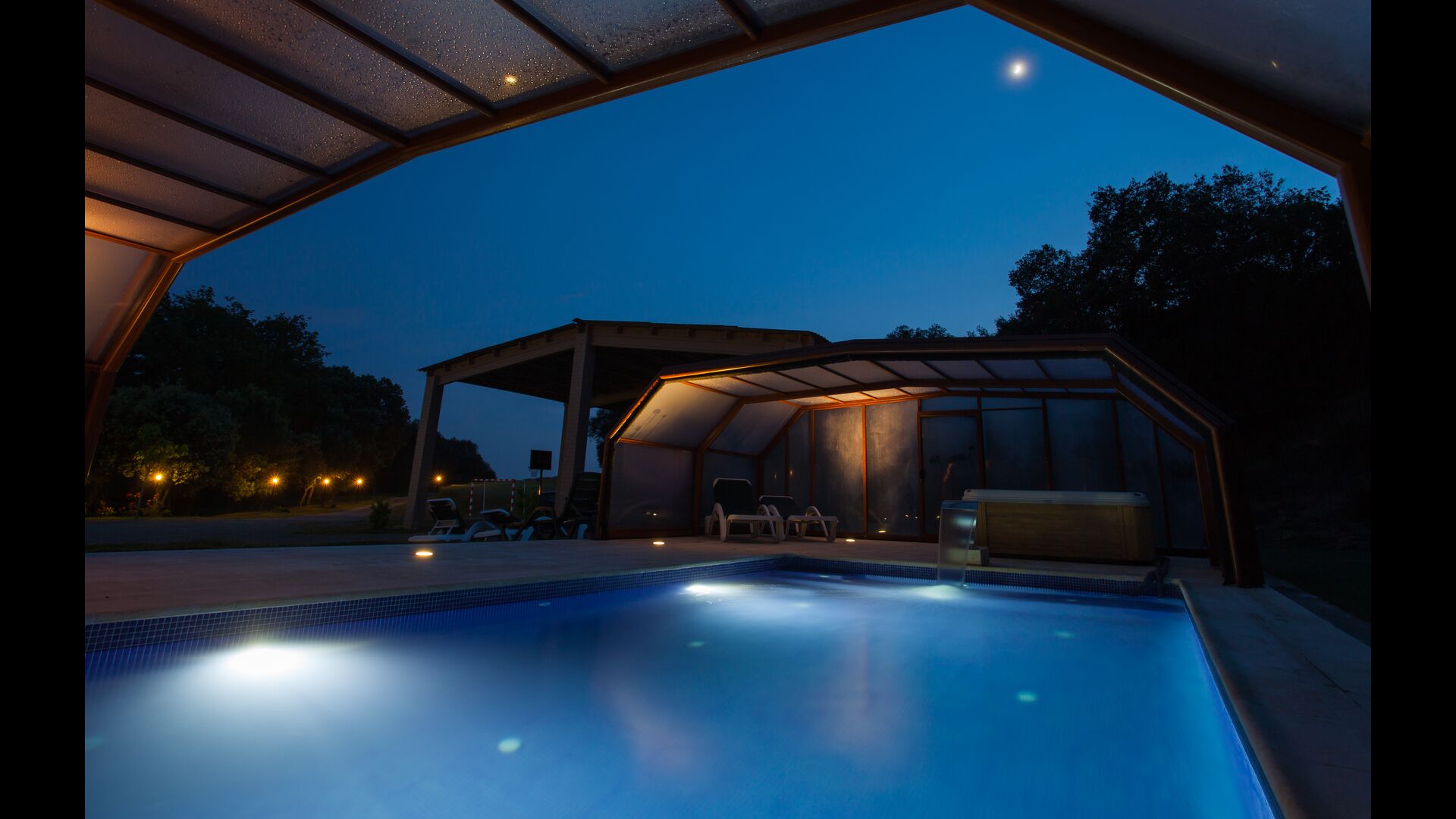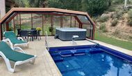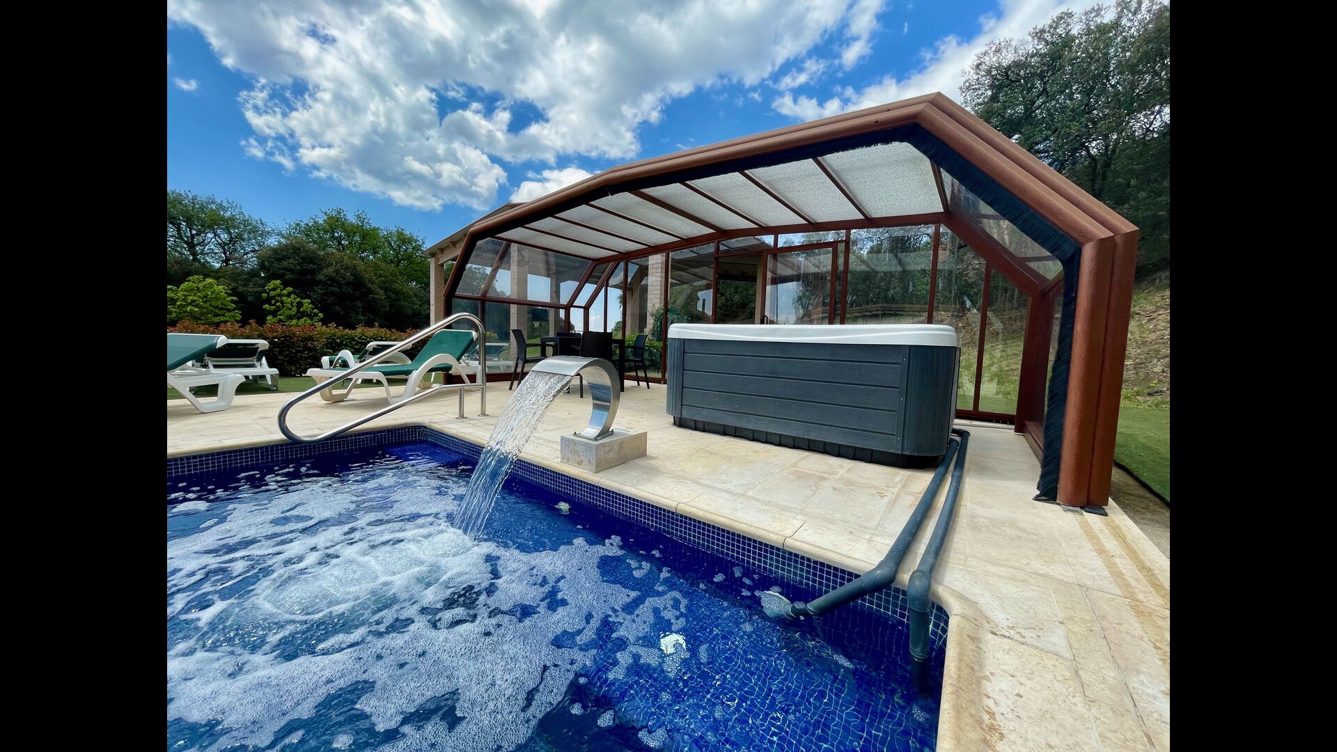 Der Außenbereich ist groß und in Fortsetzung der überdachten Terrasse mit BBQ und eine wunderbare Aussen-Küche gibt es auch einen kleinen Saal mit einem langen Esstisch sowie Billard, Tischfußball und einem großen Flachbild-TV. Abgesehen von dieser Terrasse gibt es eine weitere Terrasse und Hängematten auf der Rückseite des Hauses, wo man wirklich die Aussicht genießen kann. Der Garten hat auch einen überdachten Basketballplatz. Das Pool-Haus ist ein echter Entspannungs-Bereich, wo Sie im Jacuzzi entspannen können und die Kinder werden den großen Springbrunnen in den Pool, die ein kleines "Wasserfall" in den Pool schafft, lieben. Es gibt auch eine wirklich gute WLAN-Verbindung im ganzen Haus.