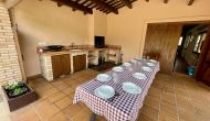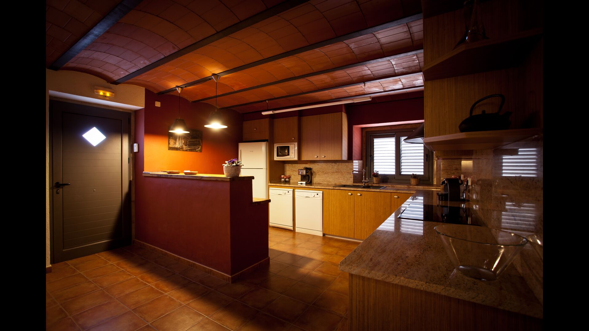 Casa Cugulado hat 3 Etagen. Im unteren Etage gibt es eine große Küche, die für die große Familie ausgestattet ist. Sie hat zum Beispiel zwei Geschirrspülmaschinen, einen extra großen Ofen und es gibt zwei Kühlschränke, und eine weitere auf der Terrasse, wo Sie Getränke oder Fleisch zu grillen speichern kann. Im Erdgeschoss ist auch ein offener Aufenthaltsraum mit Wohn-und Essbereich und es gibt auch Toiletten, damit Sie nicht nach oben zur Zimmern laufen brauchen. Das Wohnzimmer hat auch eine Terrassentür an der Rückseite des Hauses, wo es einen traumhaften Blick über die schöne Landschaft gibt.