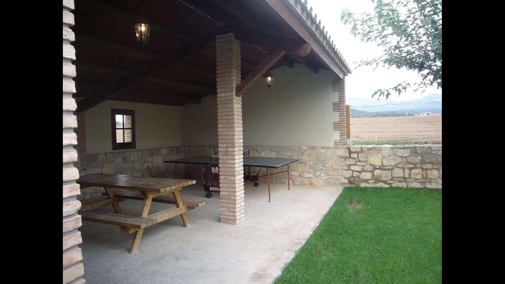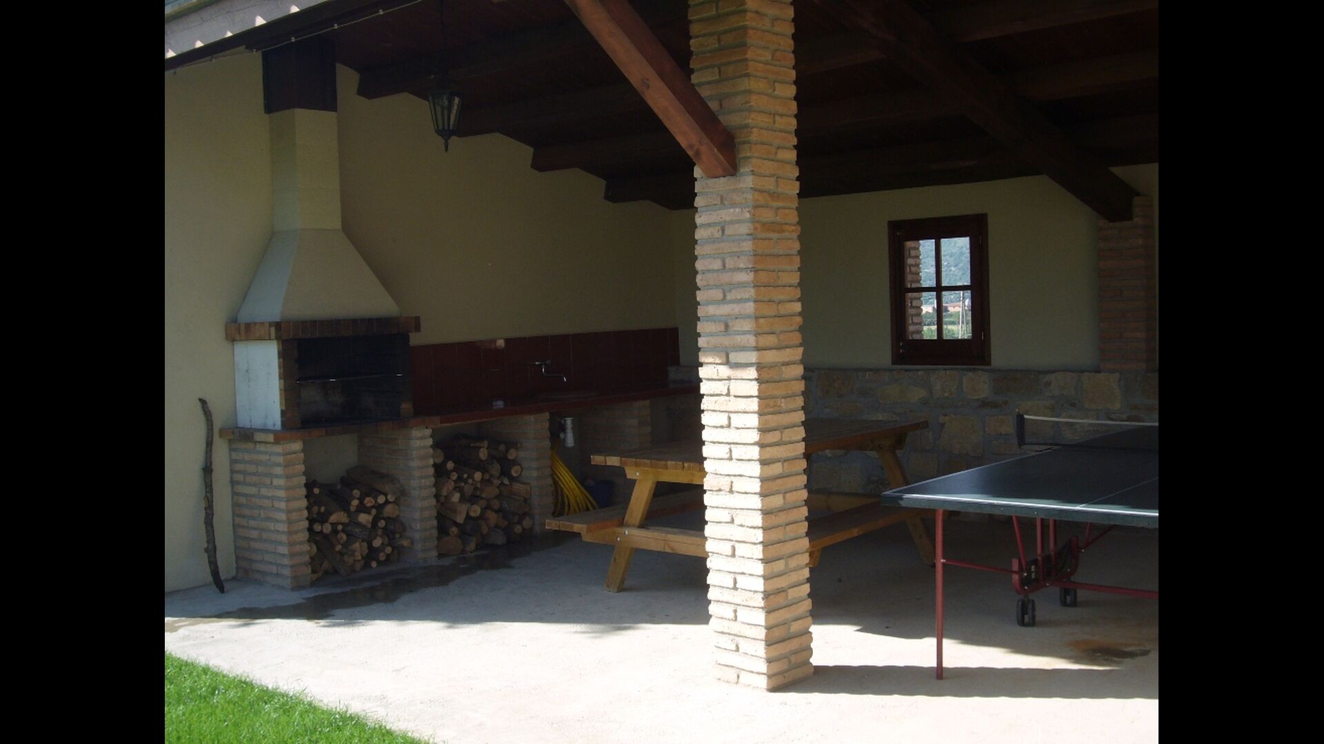 Zum Haus gehört einen schönen Kinderfreundlichen Garten mit überdeckter Terrasse und direkte Zugang zum Swimming-pool.