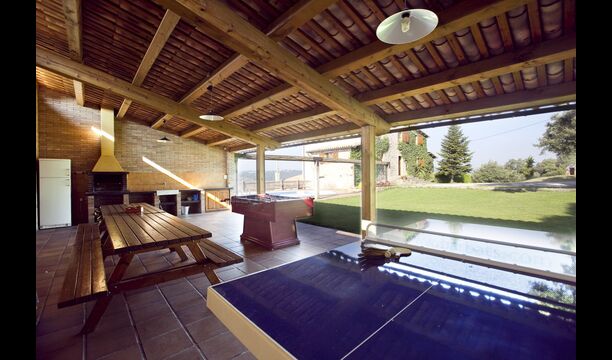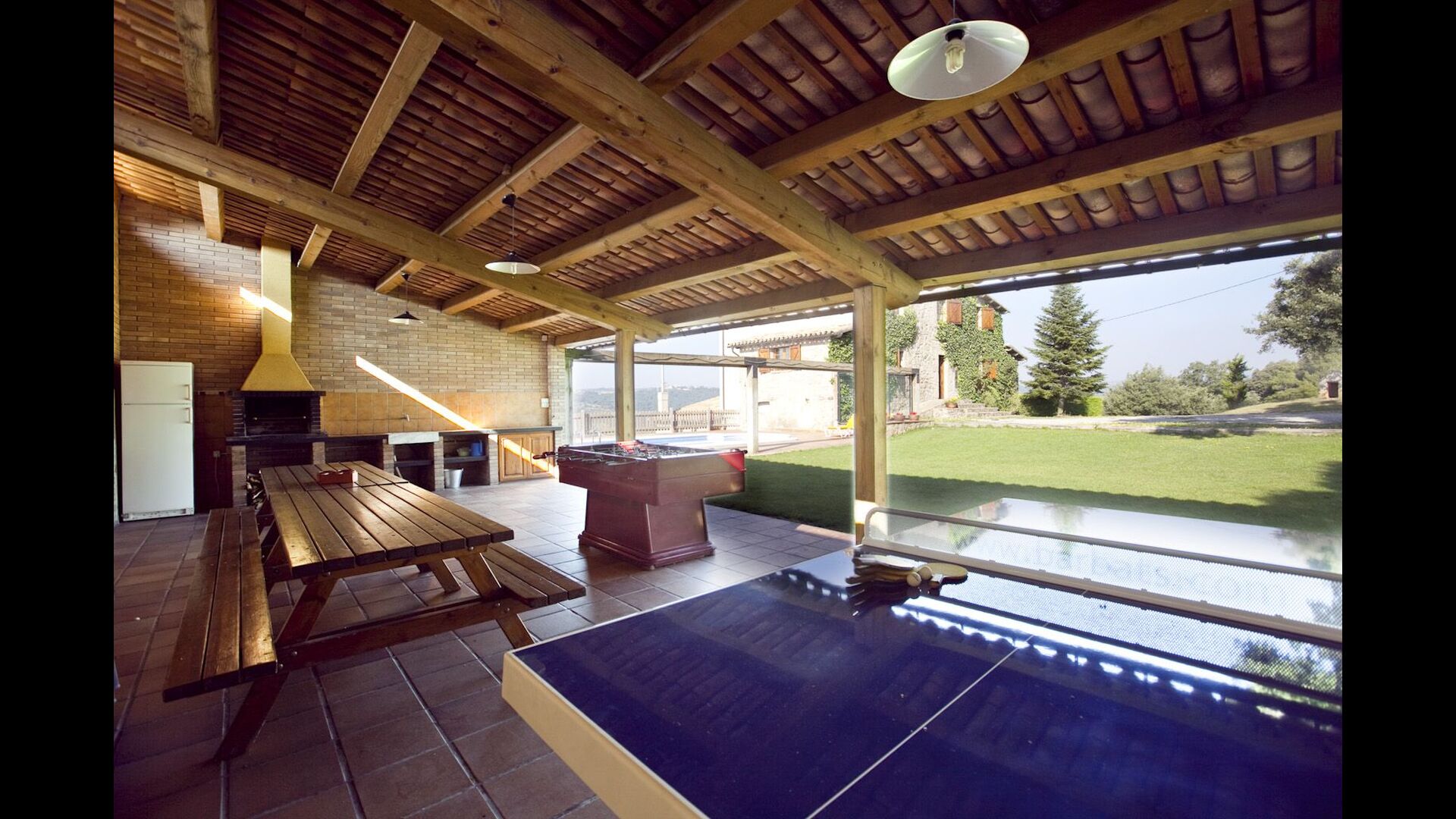 Im Aussen ist der Pool-Bereich ist perfekt zwischen einem im Freien überdachte Terrasse und das Haus integriert. Es gibt viele Einrichtungen, wie Grill, Schaukeln, Basketball-Korb, Tischfussball und Tischtennis. Es gibt viele schattige Bäume, und aus dem Haus können Sie kürzere oder längere Wanderungen machen. Zum Beispiel, wenn Sie der Spur folgen, ist die kleine Stadt Gironella nur 2,5 km. weg.