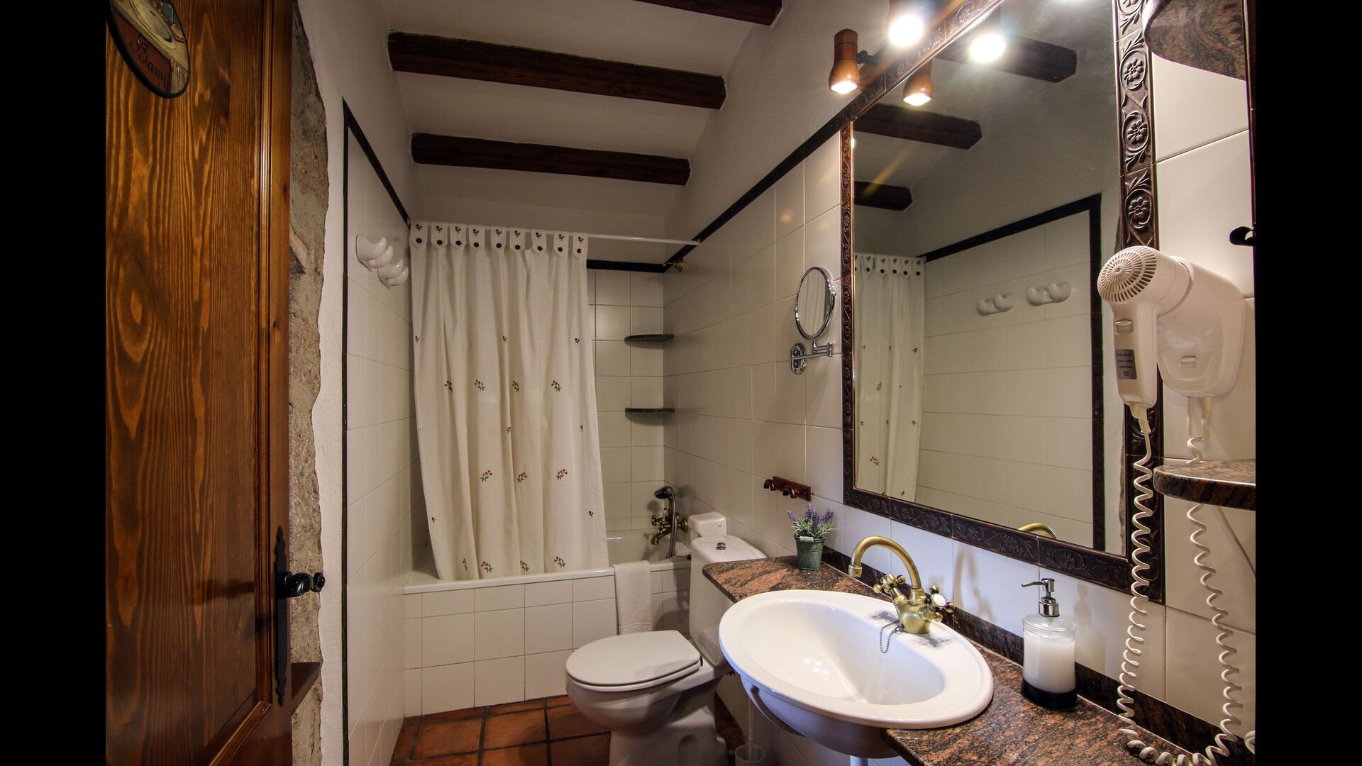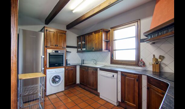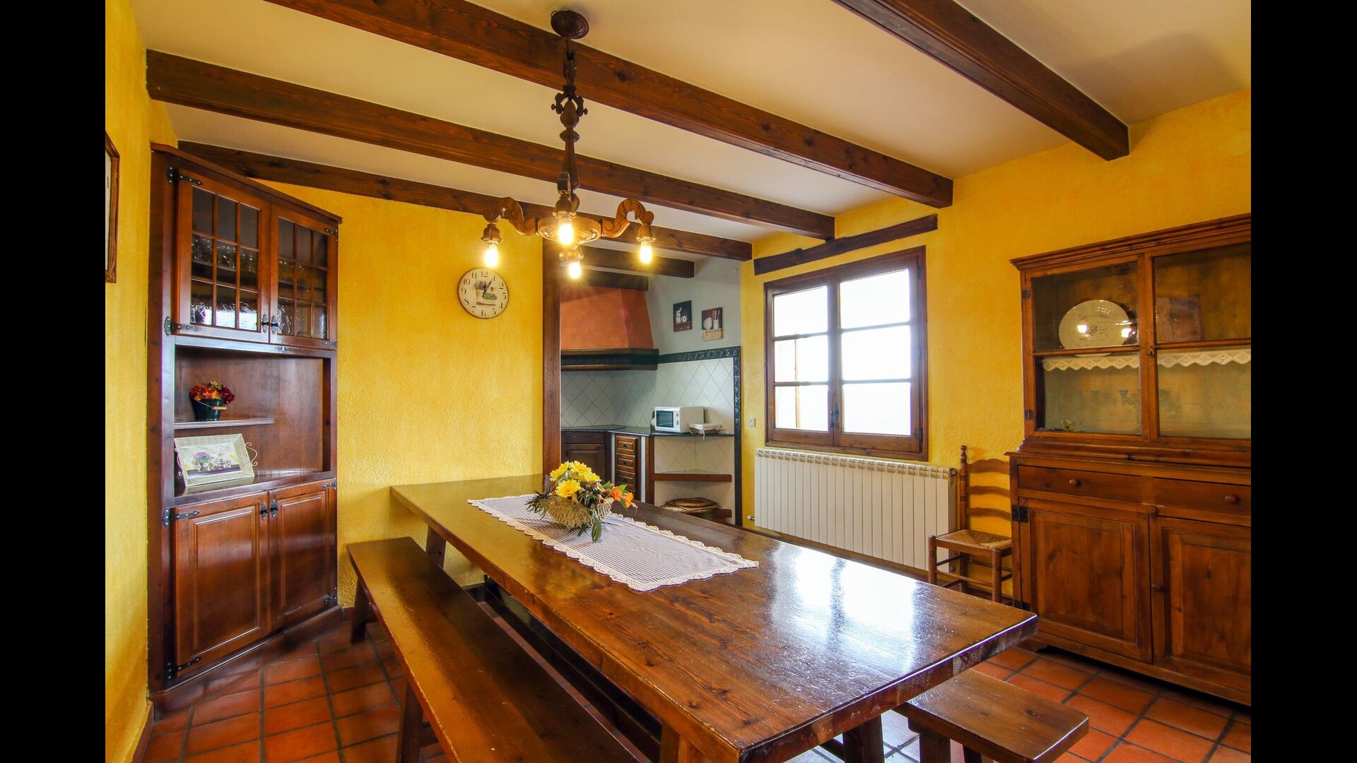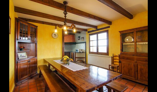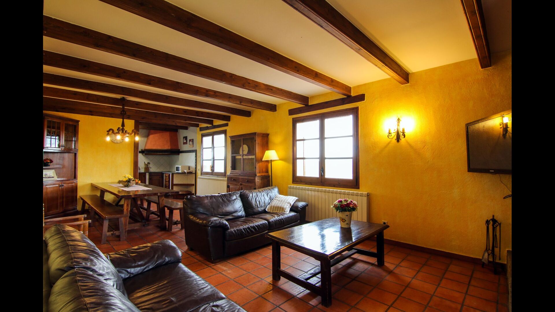 Im Inneren, ist das Haus mit Respekt für den ursprünglichen Stil vollständig Renoviert. Hier ist das perfekte Ausgangspunkt eines Urlaubs in Katalonien. Das Haus enthält 6 Doppelzimmer und ein Dreibettzimmer, 3 komplette Badezimmer, ein Wohnzimmer mit Kamin, HiFi und TV und eine voll ausgestattete Küche mit Kühlschrank, E-Herd, Mikrowelle, Geschirrspüler und Waschmaschine. Das Haus hat Zentralheizung.