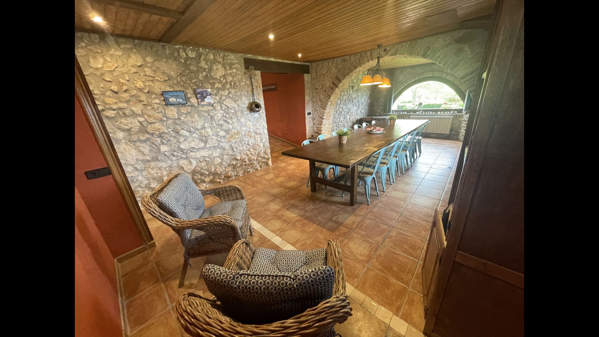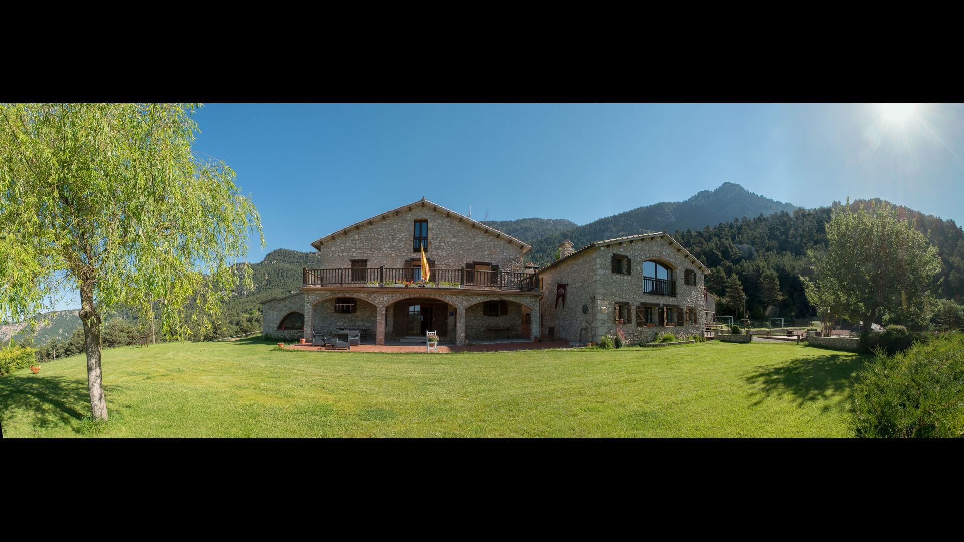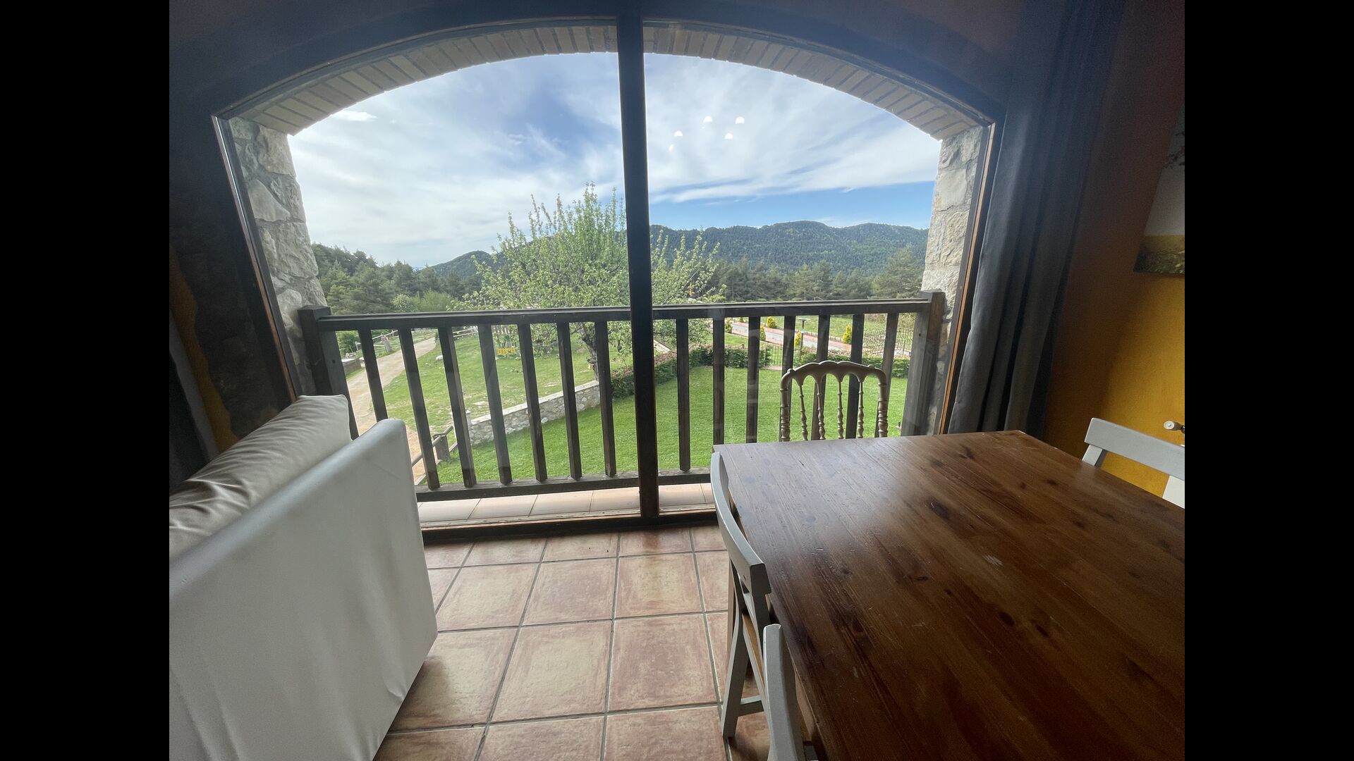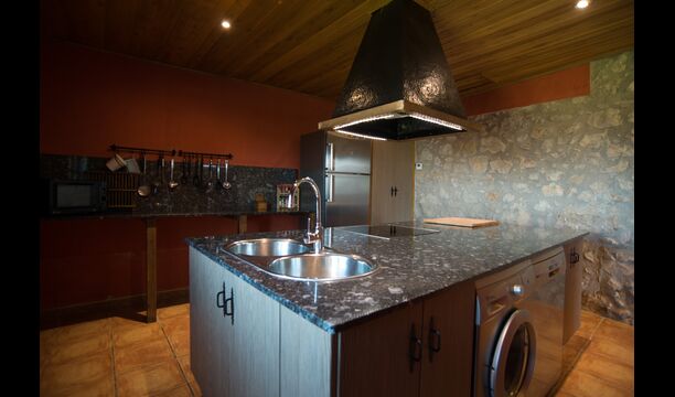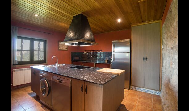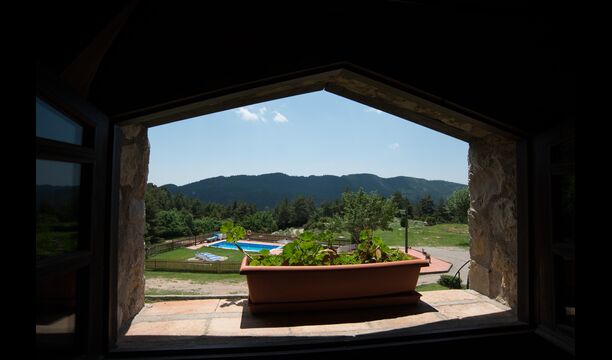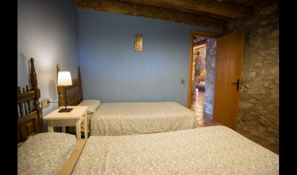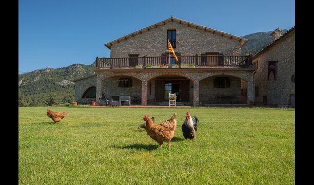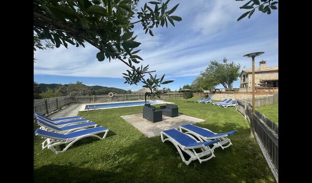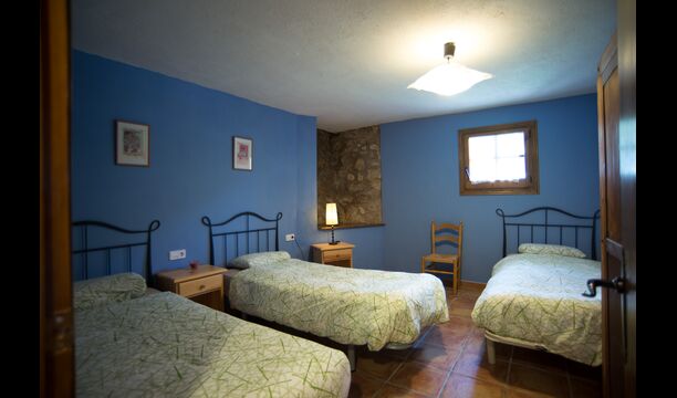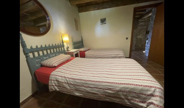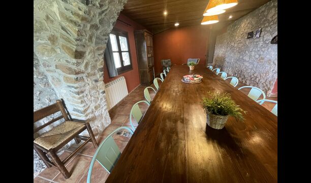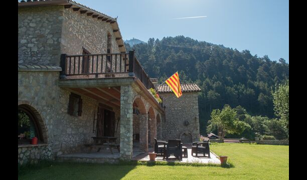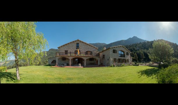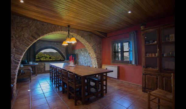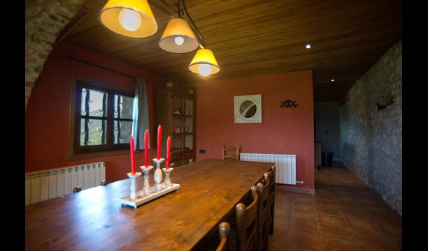 Die große Wohnung „Casa Grande“ im Haupthaus und verfügt über eine große Terrasse mit Blick auf das Grundstück und mit den Pyrenäen im Hintergrund. Diese Wohnung verfügt über vier Doppelzimmer, drei davon mit Doppelbetten, sowie ein Vierbettzimmer mit vier Einzelbetten. Der erste Teil der Wohnung ist aufgeteilt in ein Wohnzimmer mit Ausblick, ein sehr authentisches Esszimmer und einegroße Küche unter anderem mit einem Geschirrspüler und einer Waschmaschine.