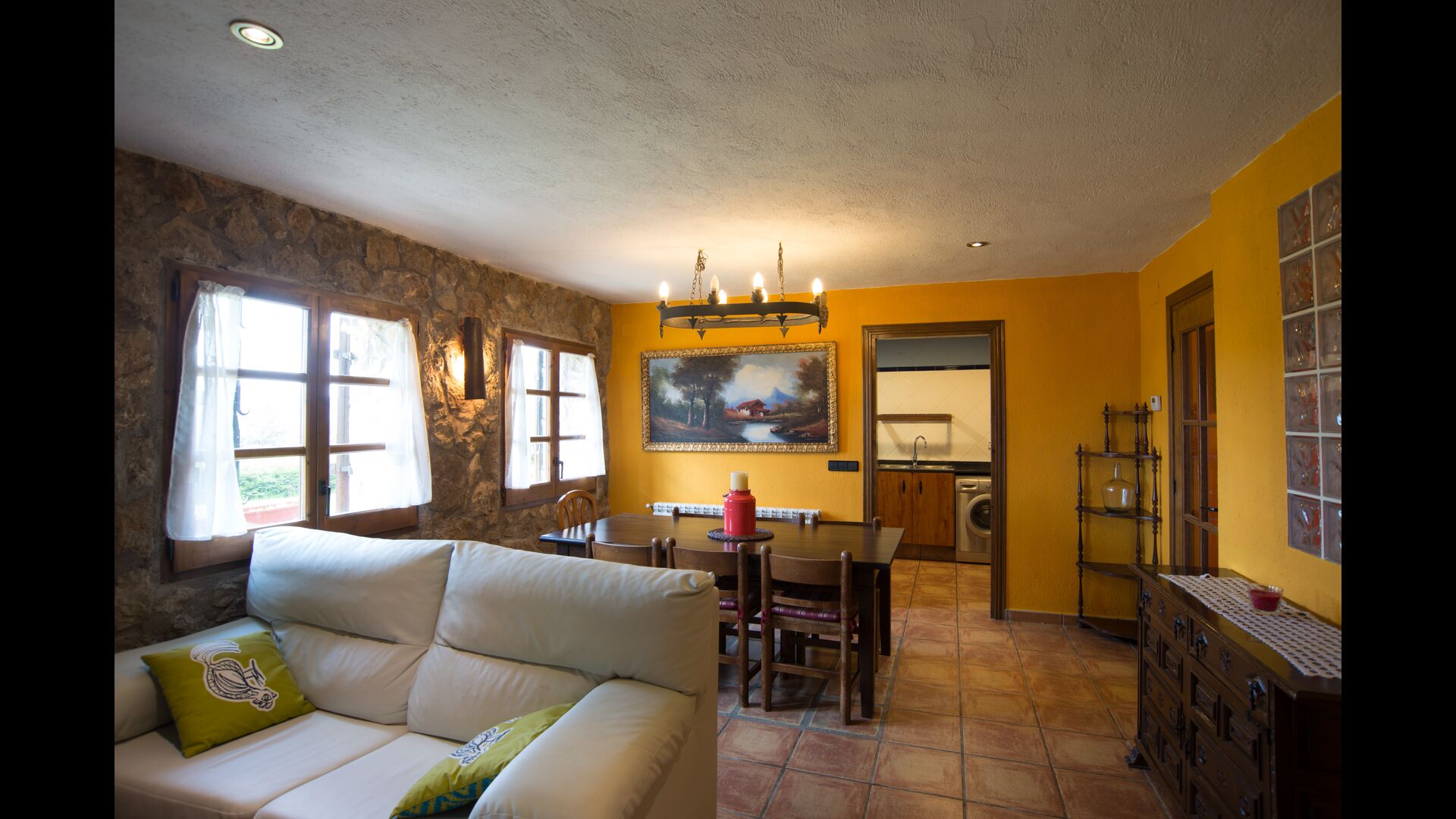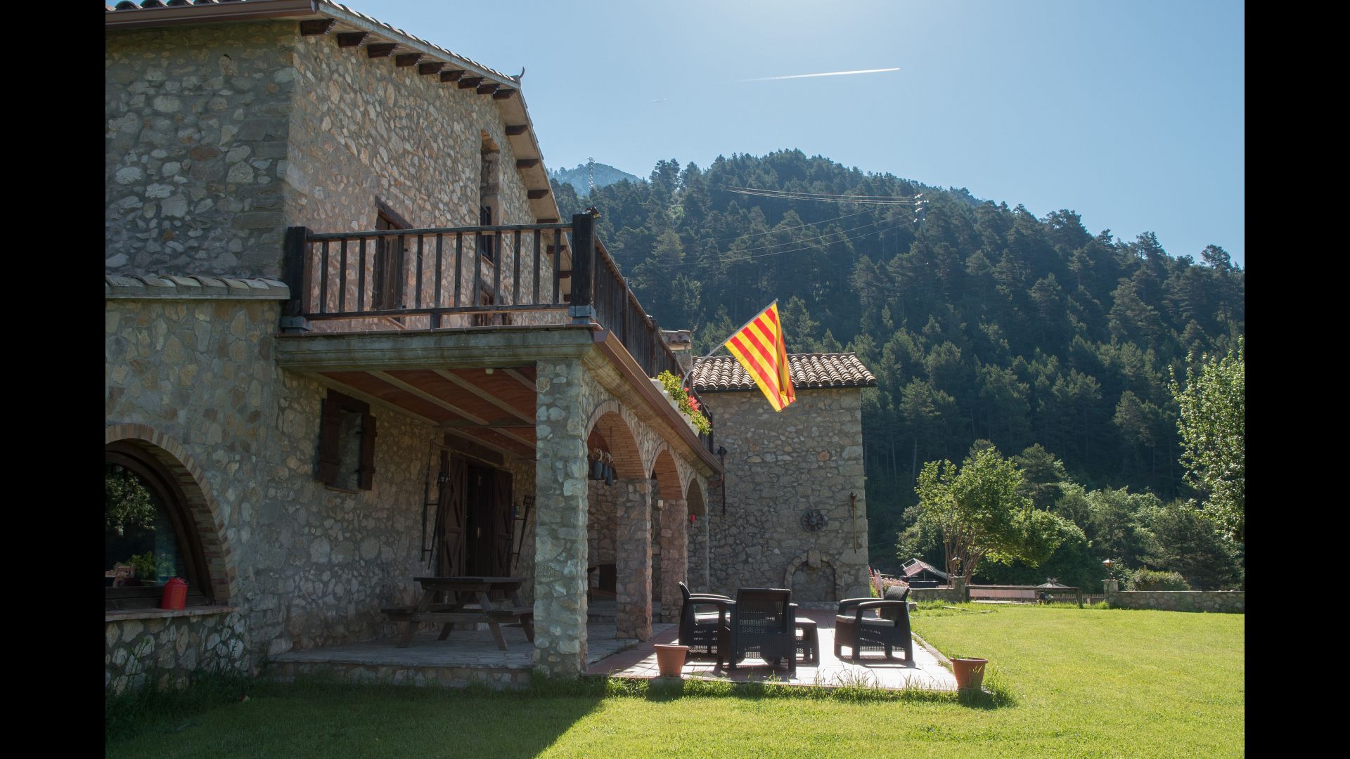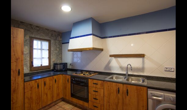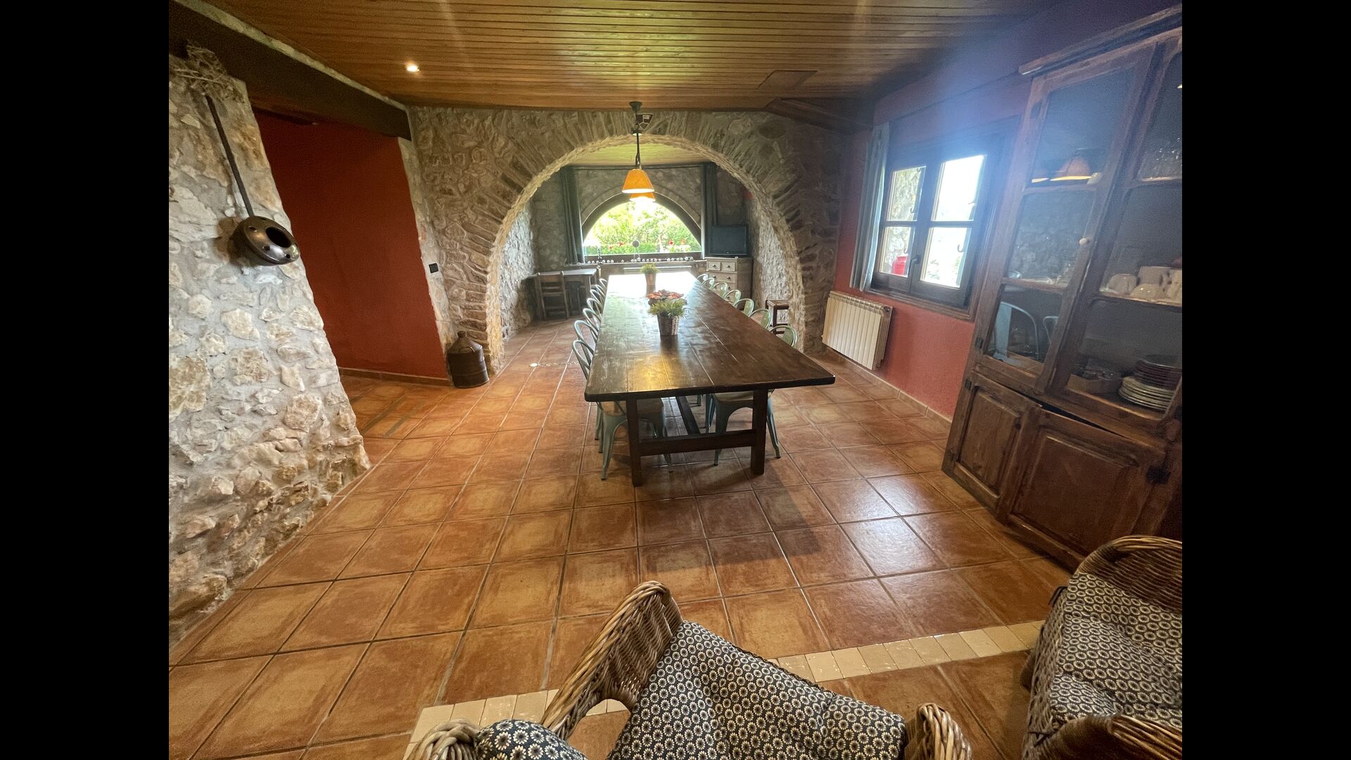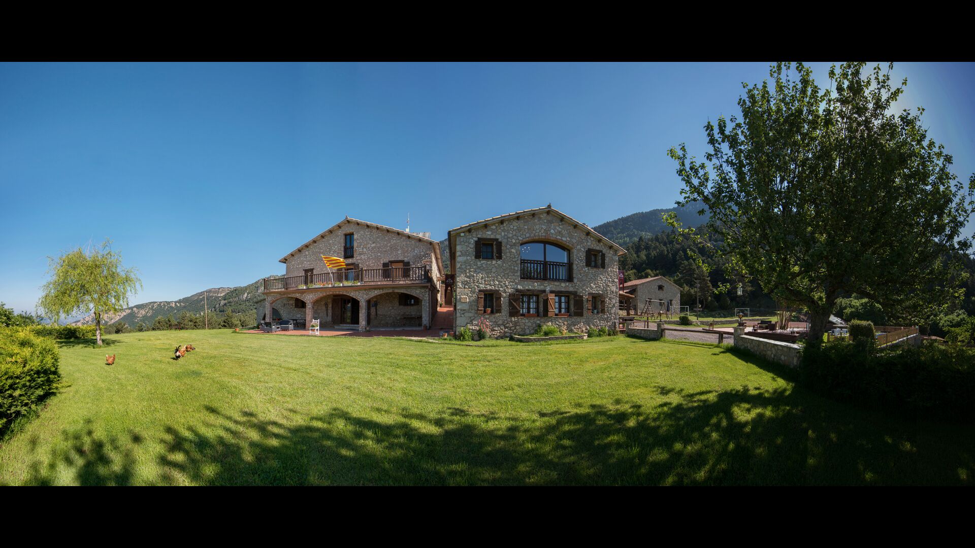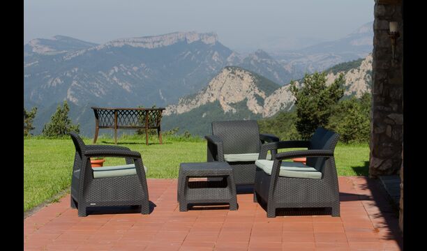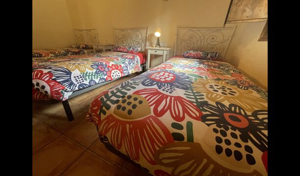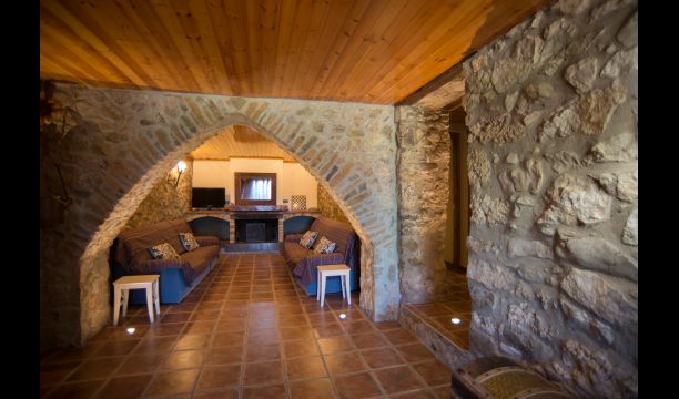 Die große Wohnung „Casa Grande“ im Haupthaus und verfügt über eine große Terrasse mit Blick auf das Grundstück und mit den Pyrenäen im Hintergrund. Diese Wohnung verfügt über vier Doppelzimmer, drei davon mit Doppelbetten, sowie ein Vierbettzimmer mit vier Einzelbetten. Der erste Teil der Wohnung ist aufgeteilt in ein Wohnzimmer mit Ausblick, ein sehr authentisches Esszimmer und einegroße Küche unter anderem mit einem Geschirrspüler und einer Waschmaschine.