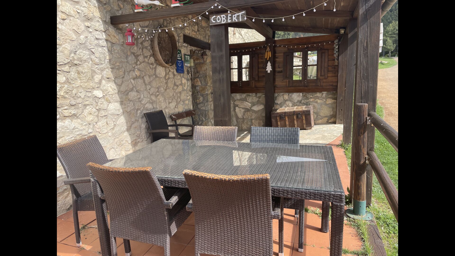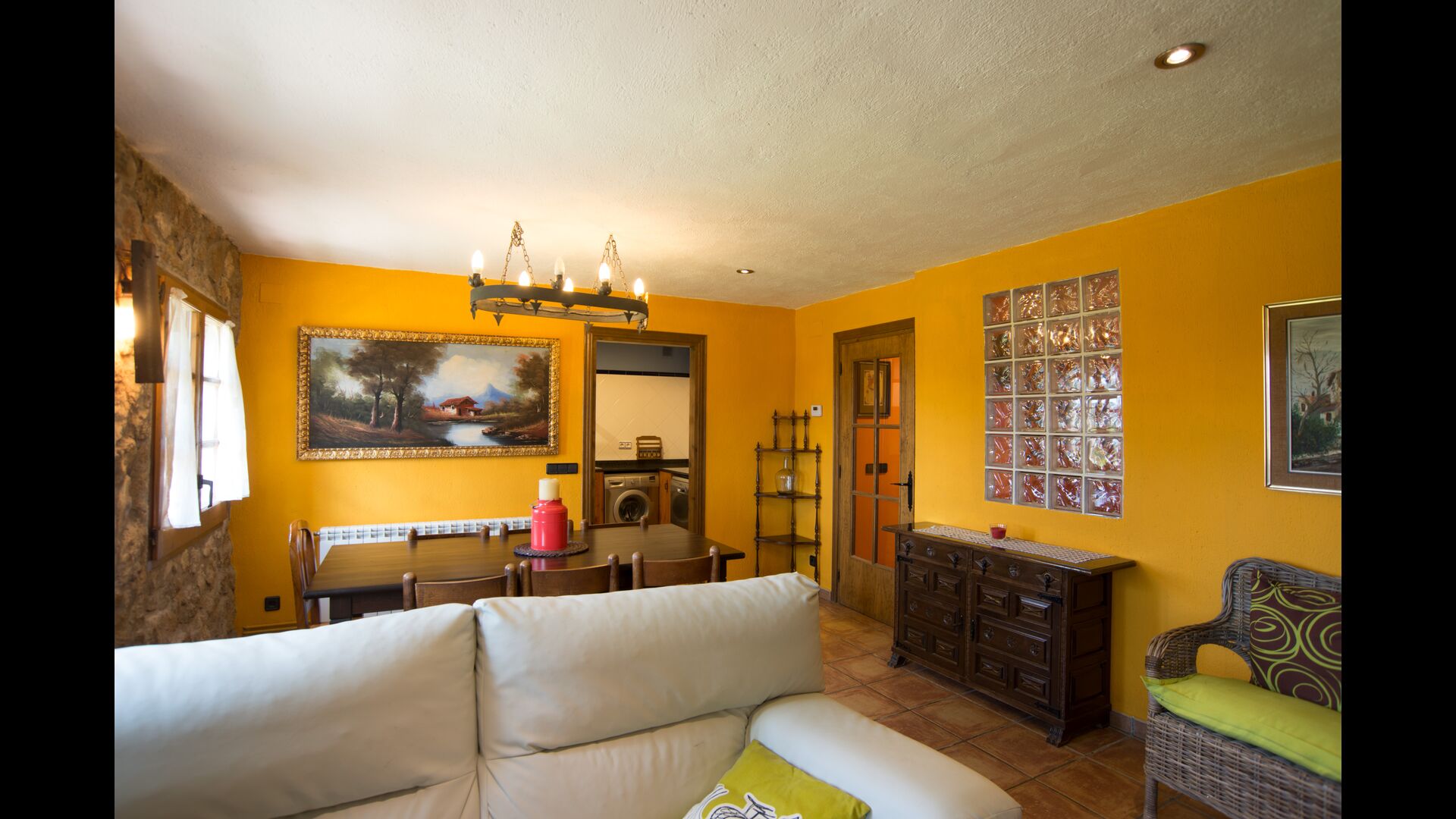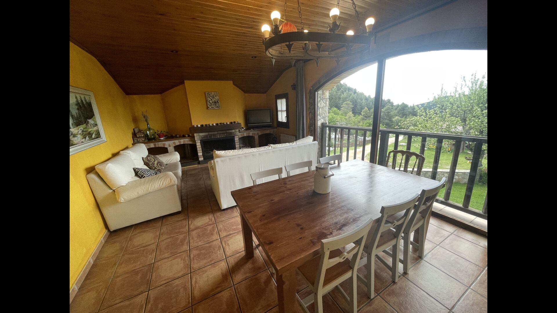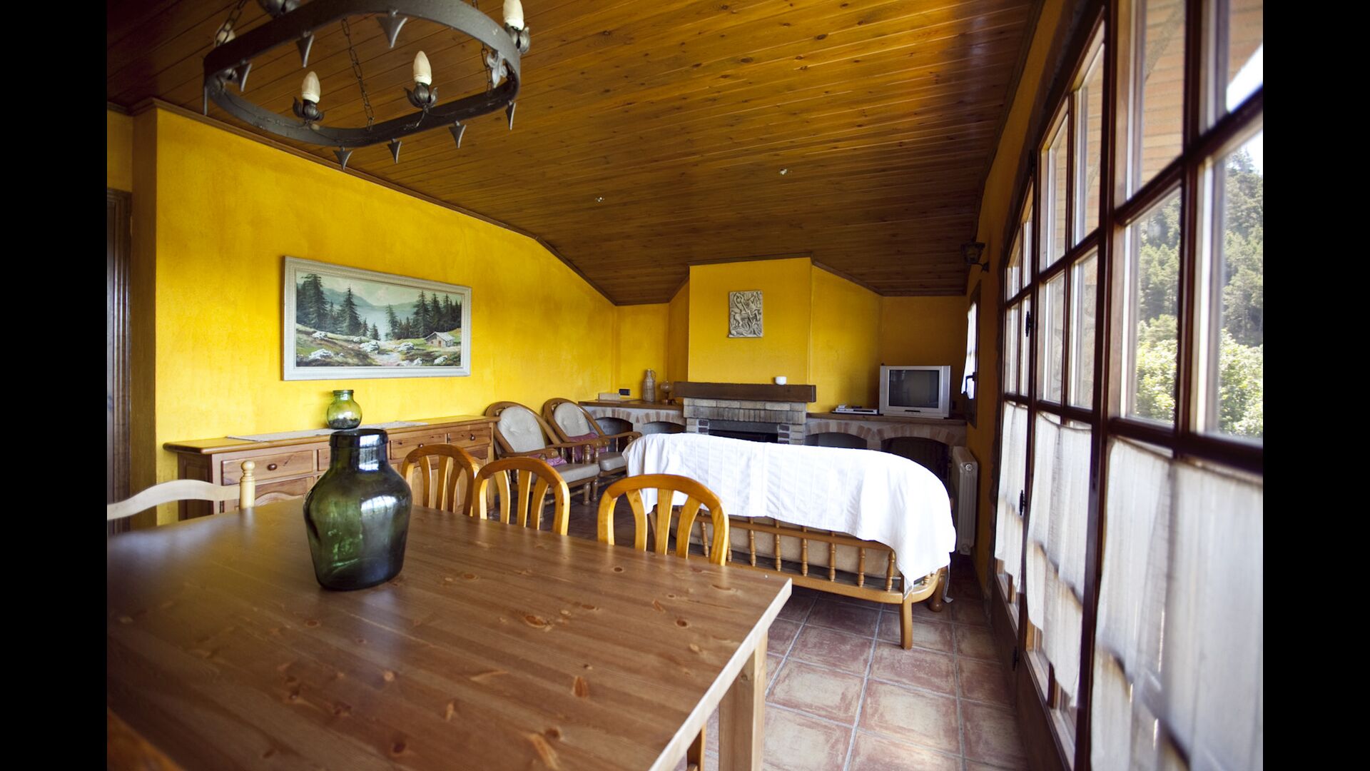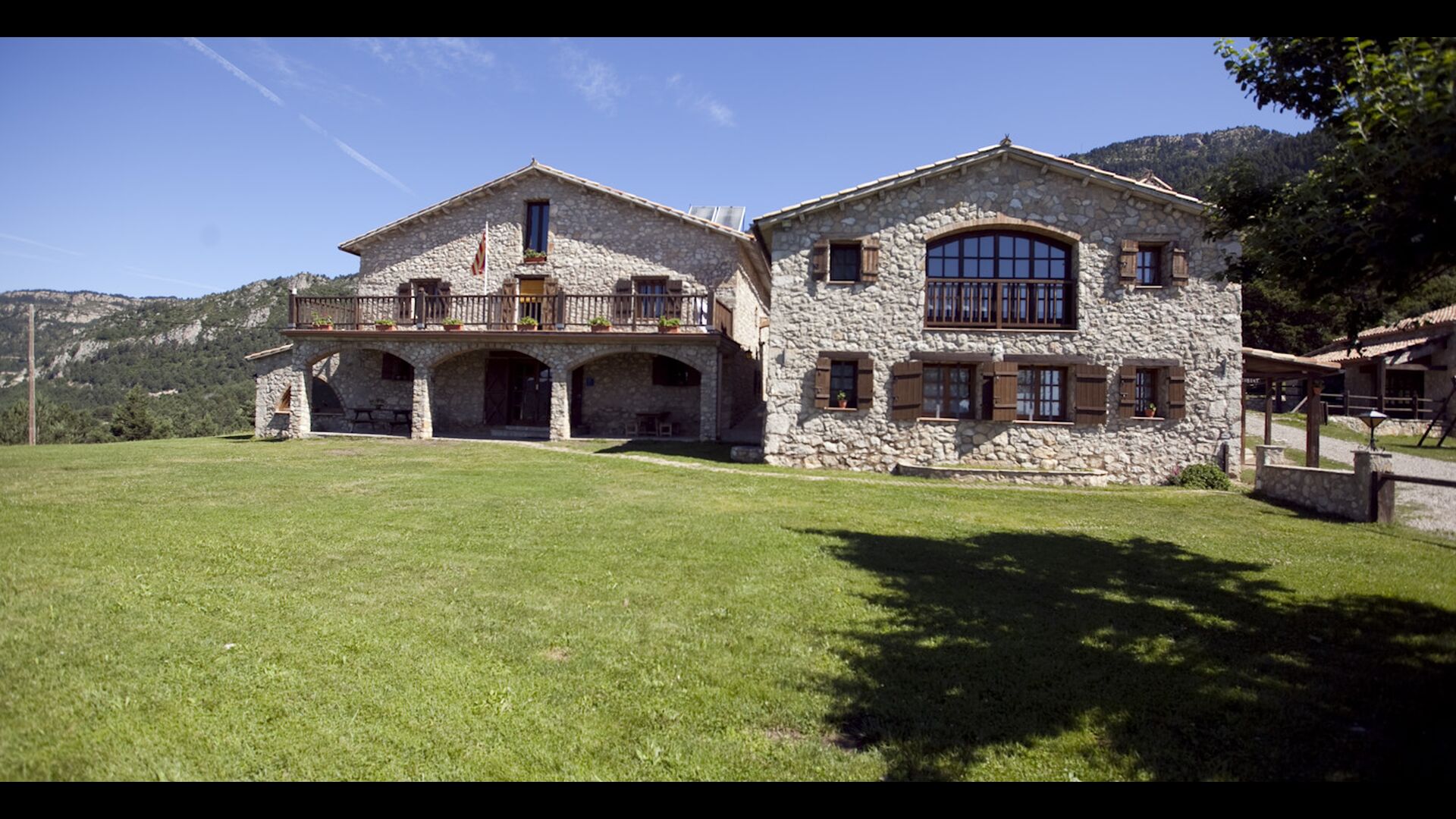 Die große Wohnung „Casa Grande“ im Haupthaus und verfügt über eine große Terrasse mit Blick auf das Grundstück und mit den Pyrenäen im Hintergrund. Diese Wohnung verfügt über vier Doppelzimmer, drei davon mit Doppelbetten, sowie ein Vierbettzimmer mit vier Einzelbetten. Der erste Teil der Wohnung ist aufgeteilt in ein Wohnzimmer mit Ausblick, ein sehr authentisches Esszimmer und einegroße Küche unter anderem mit einem Geschirrspüler und einer Waschmaschine.