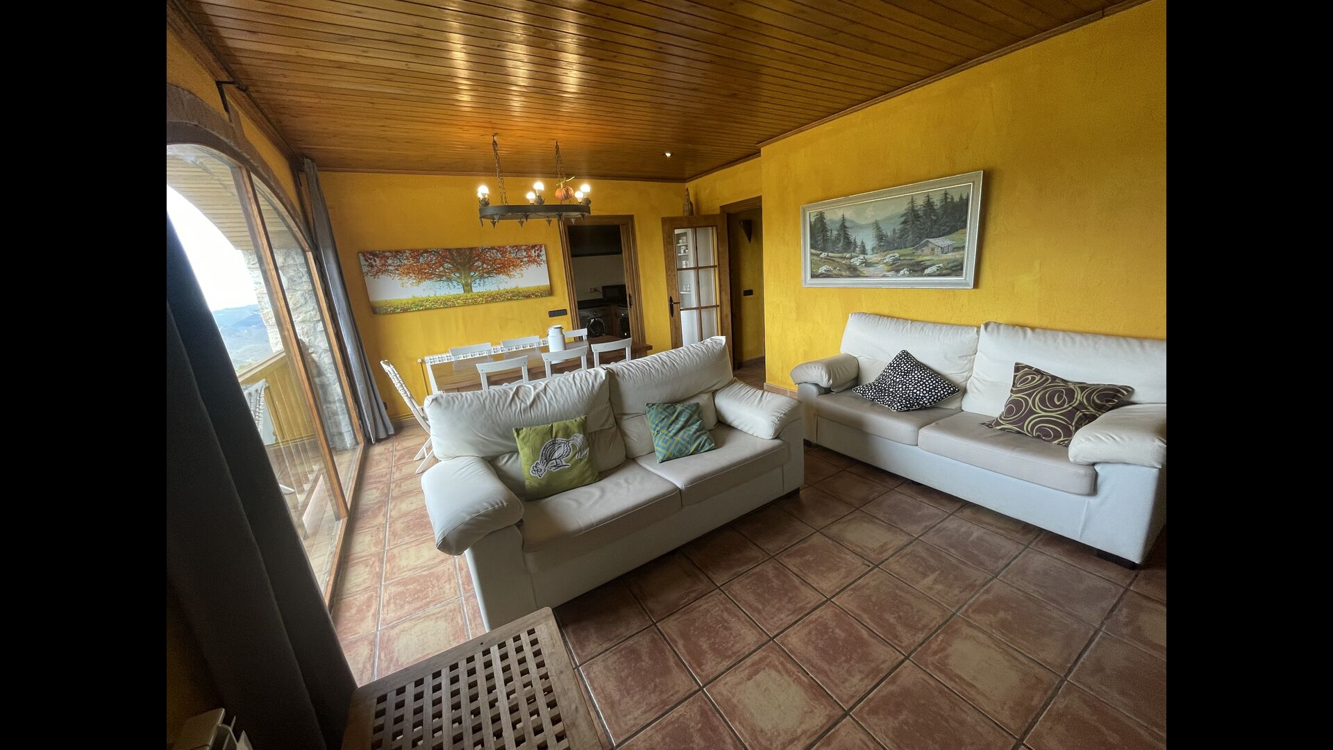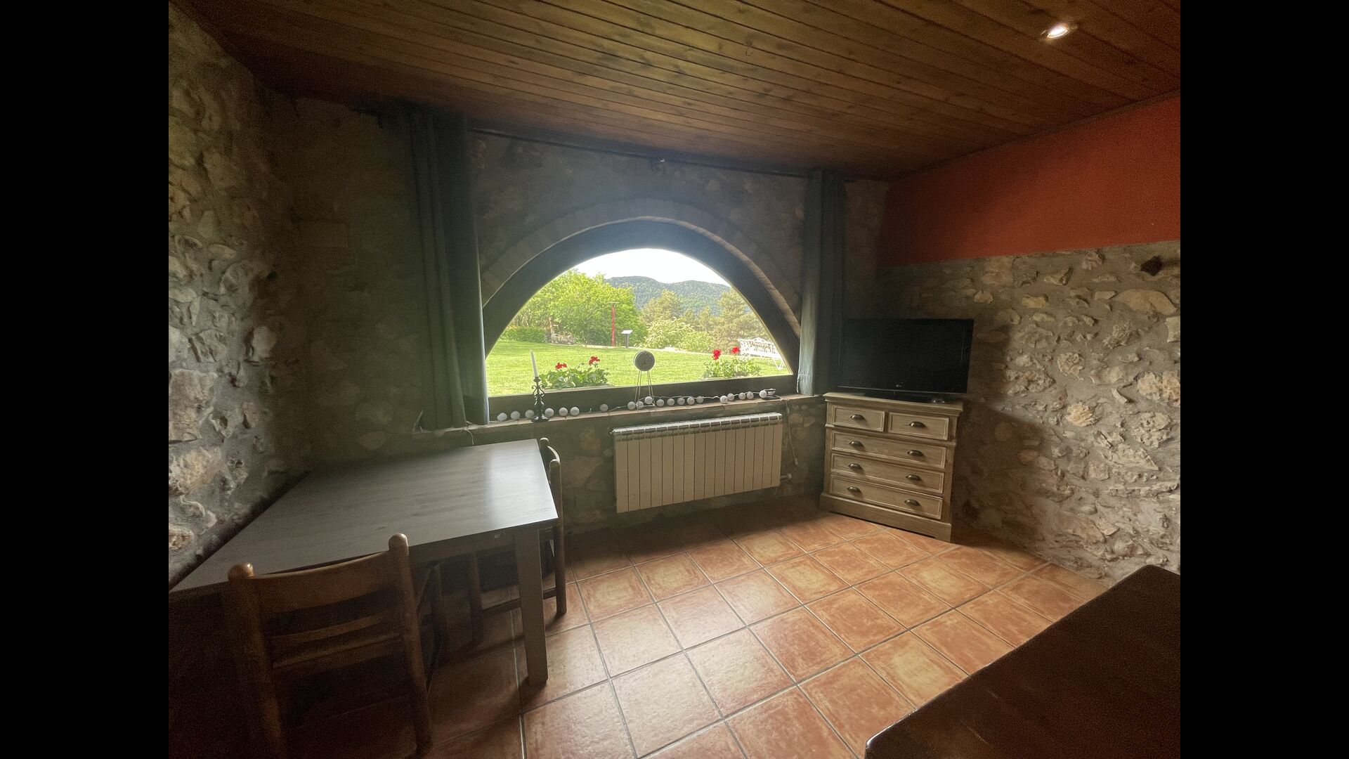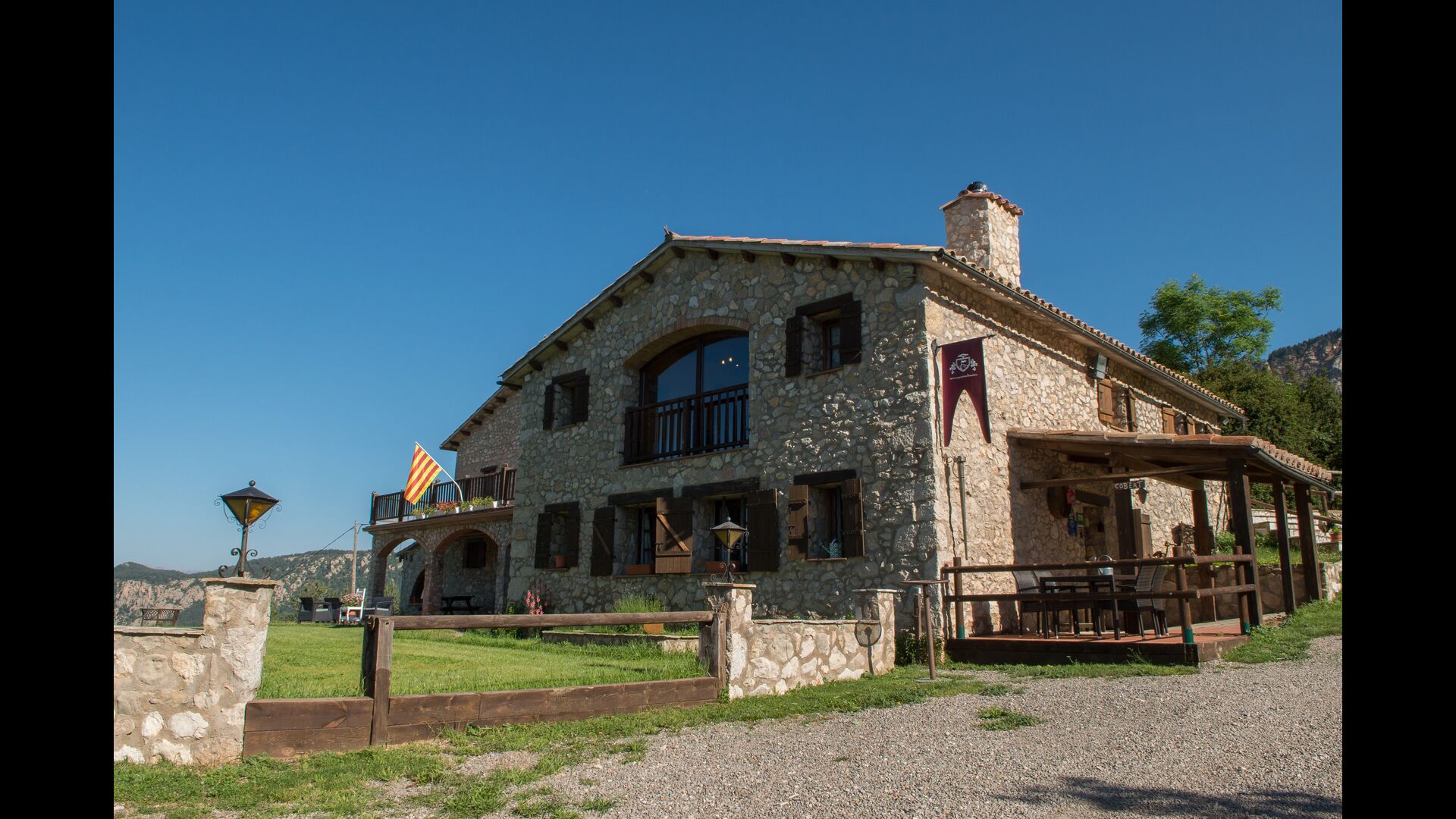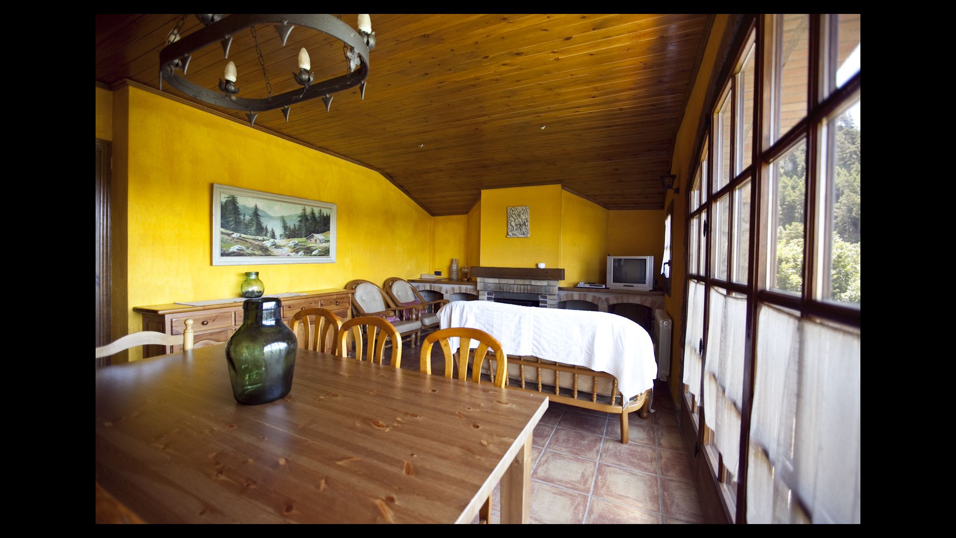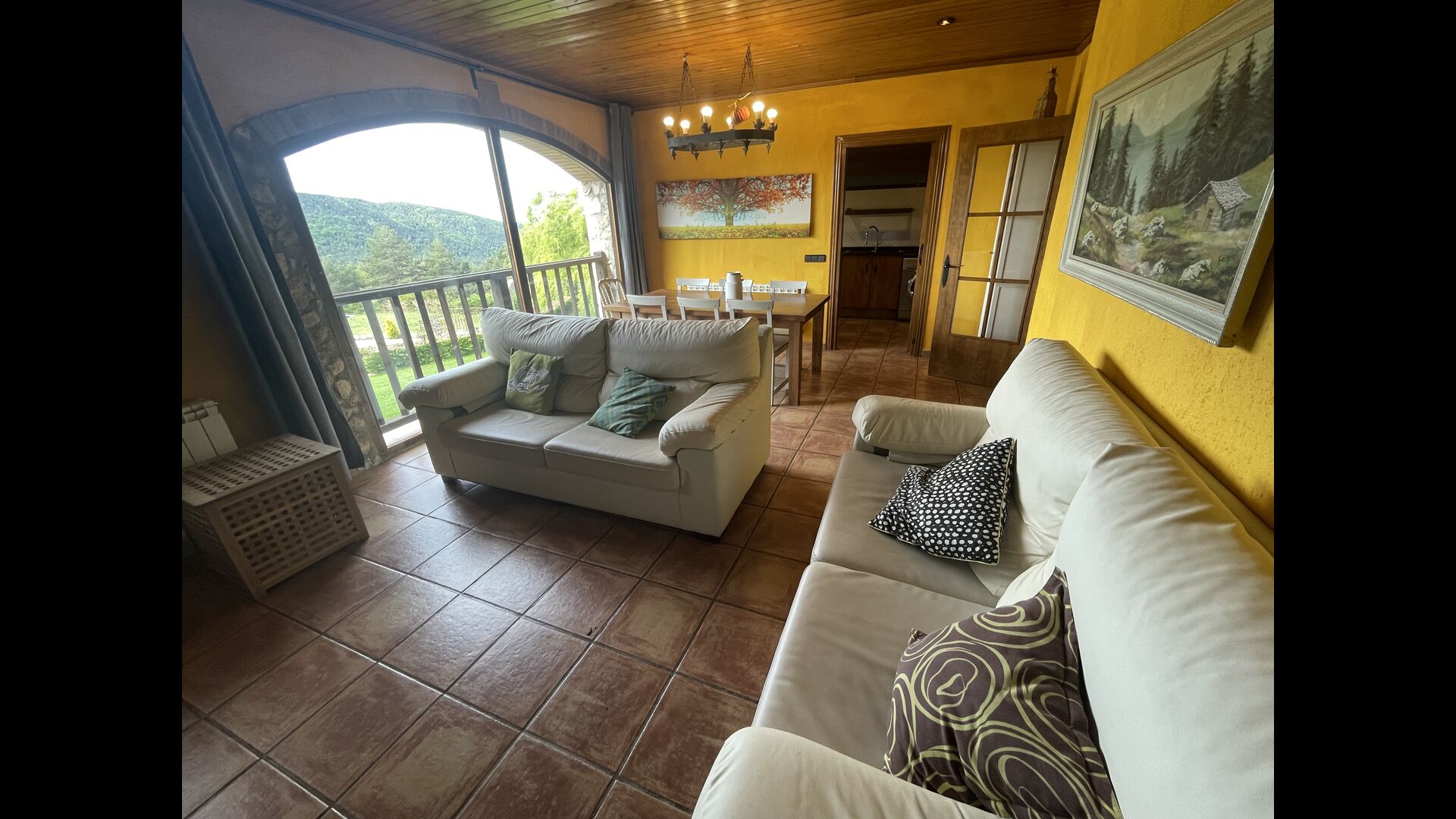 Die große Wohnung „Casa Grande“ im Haupthaus und verfügt über eine große Terrasse mit Blick auf das Grundstück und mit den Pyrenäen im Hintergrund. Diese Wohnung verfügt über vier Doppelzimmer, drei davon mit Doppelbetten, sowie ein Vierbettzimmer mit vier Einzelbetten. Der erste Teil der Wohnung ist aufgeteilt in ein Wohnzimmer mit Ausblick, ein sehr authentisches Esszimmer und einegroße Küche unter anderem mit einem Geschirrspüler und einer Waschmaschine.