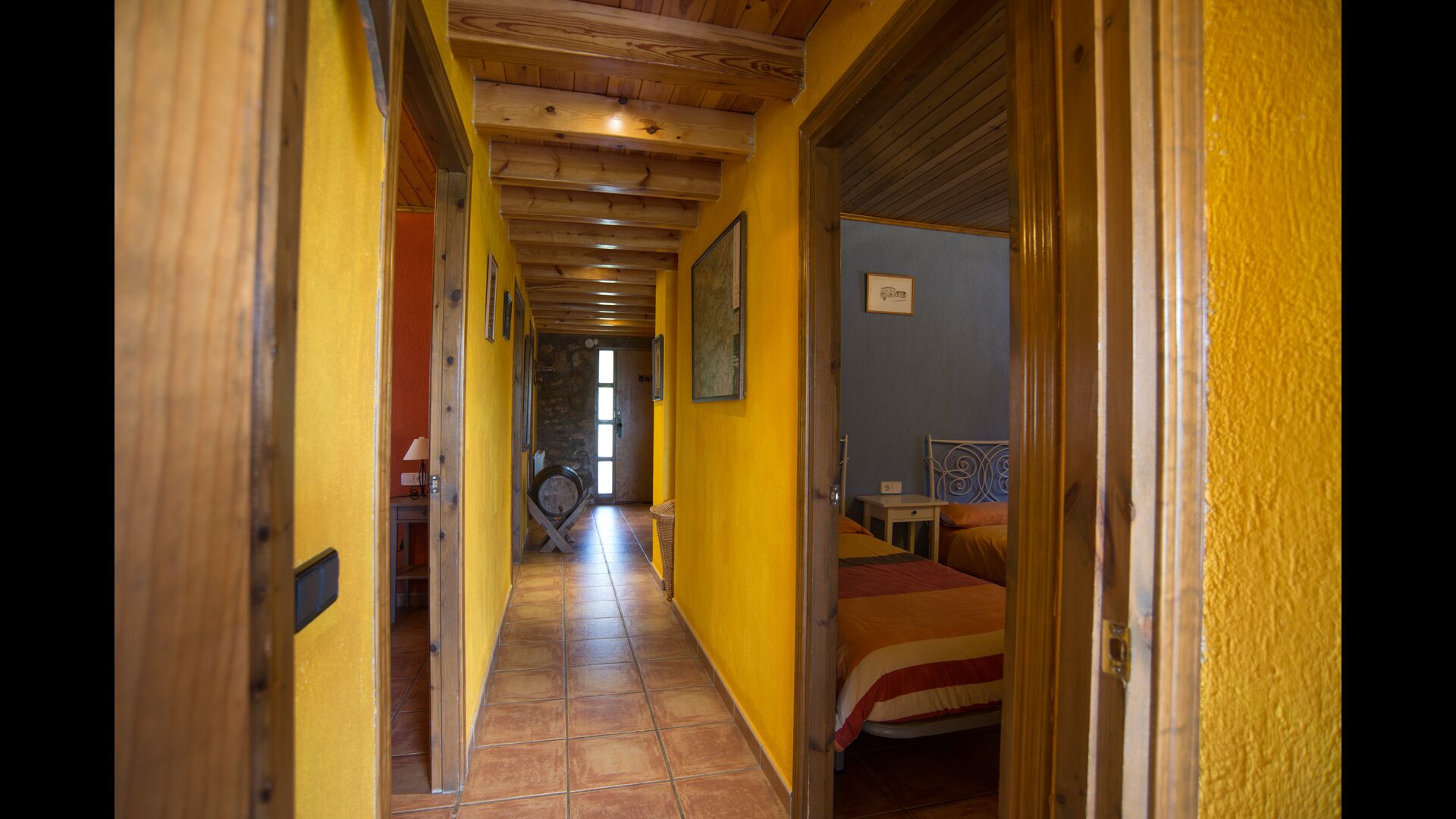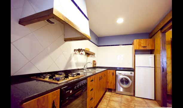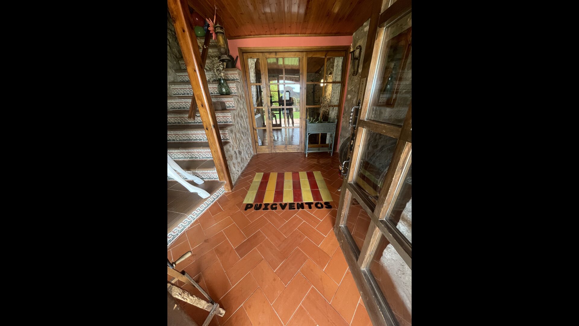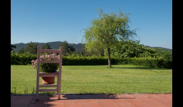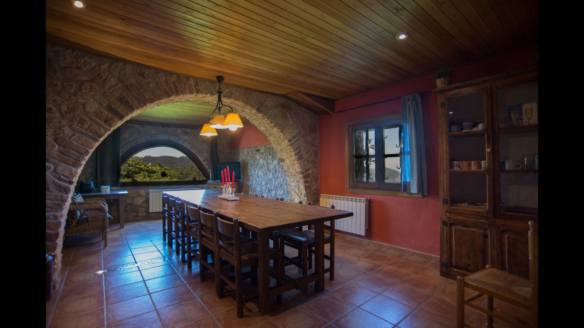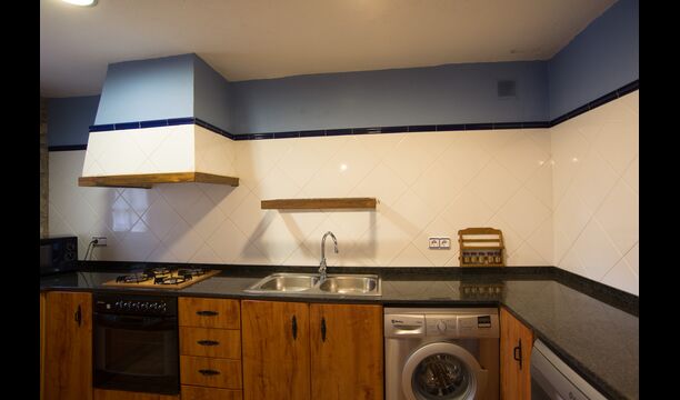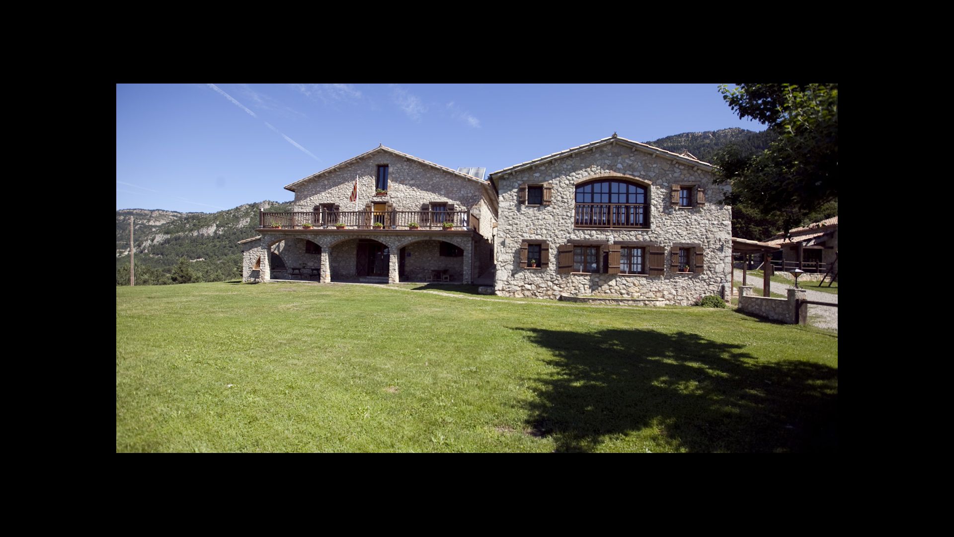 Die große Wohnung „Casa Grande“ im Haupthaus und verfügt über eine große Terrasse mit Blick auf das Grundstück und mit den Pyrenäen im Hintergrund. Diese Wohnung verfügt über vier Doppelzimmer, drei davon mit Doppelbetten, sowie ein Vierbettzimmer mit vier Einzelbetten. Der erste Teil der Wohnung ist aufgeteilt in ein Wohnzimmer mit Ausblick, ein sehr authentisches Esszimmer und einegroße Küche unter anderem mit einem Geschirrspüler und einer Waschmaschine.