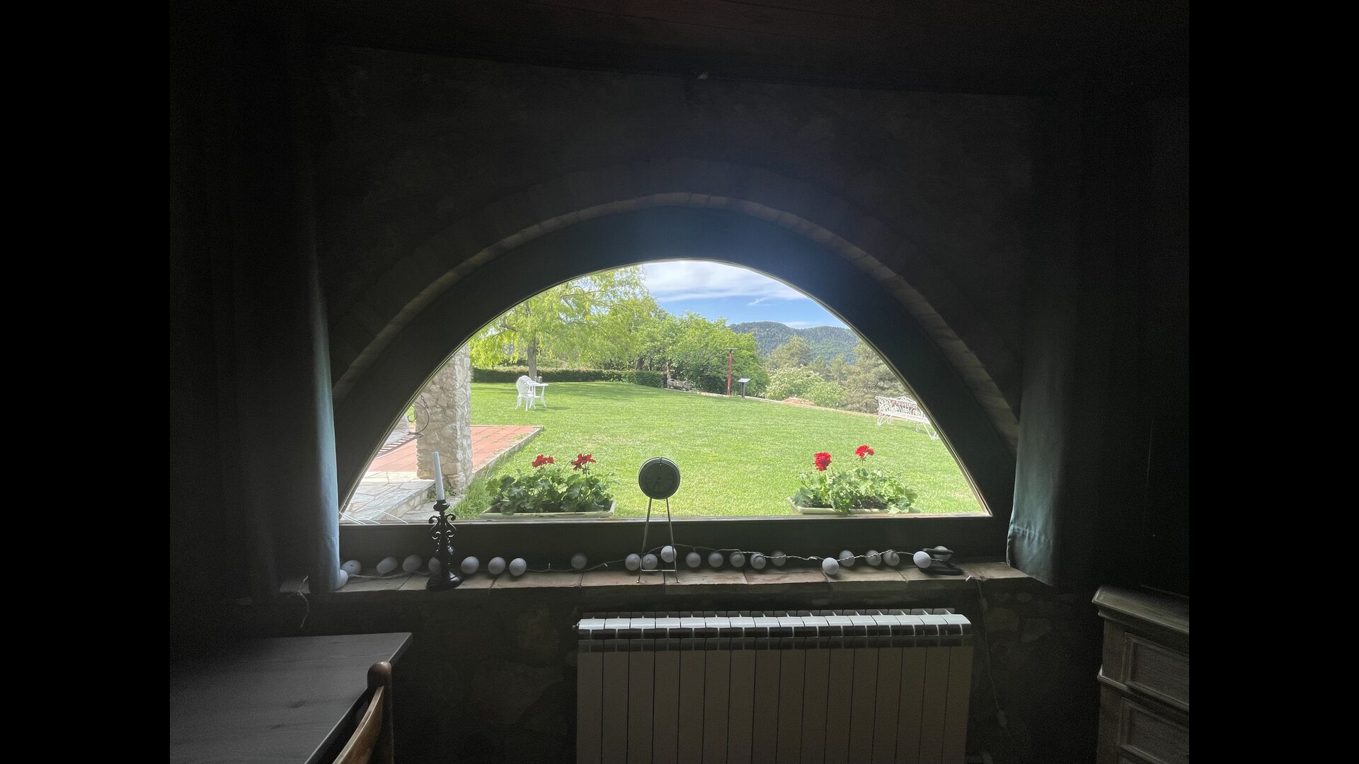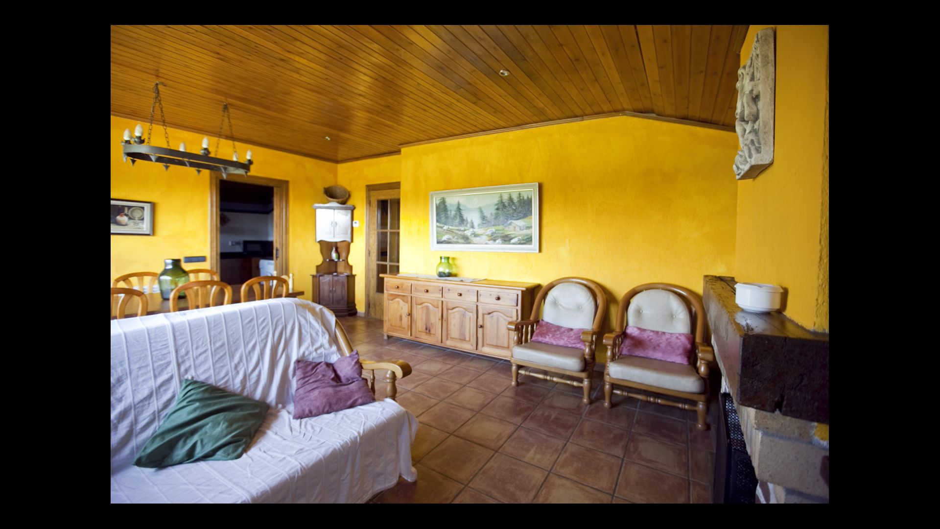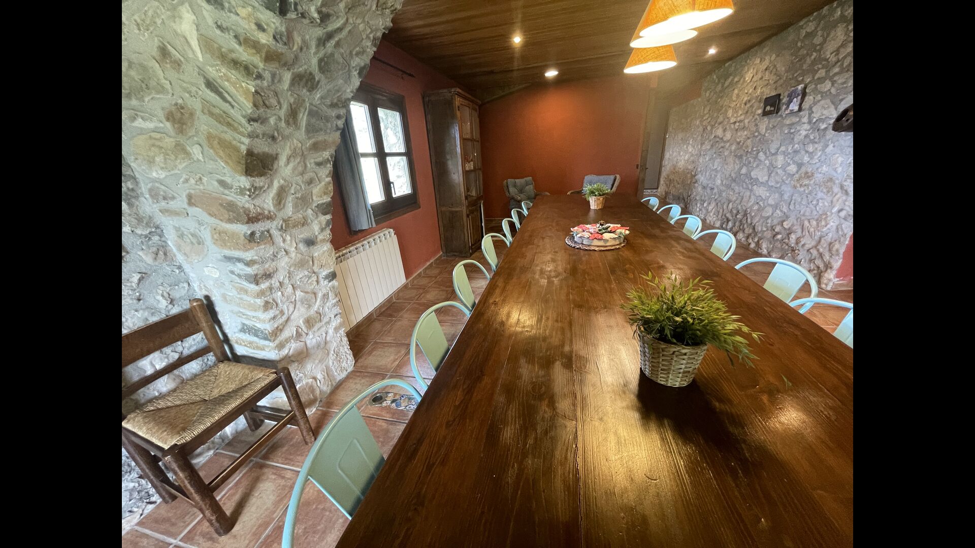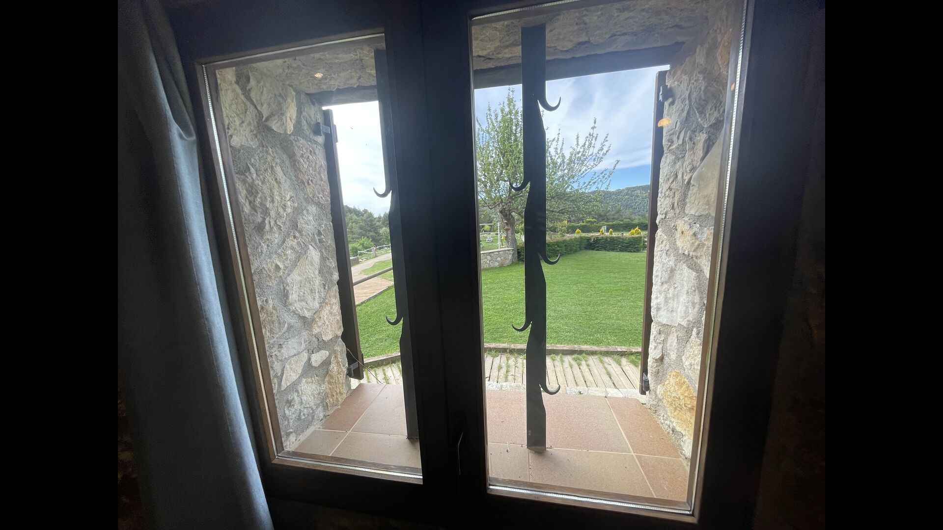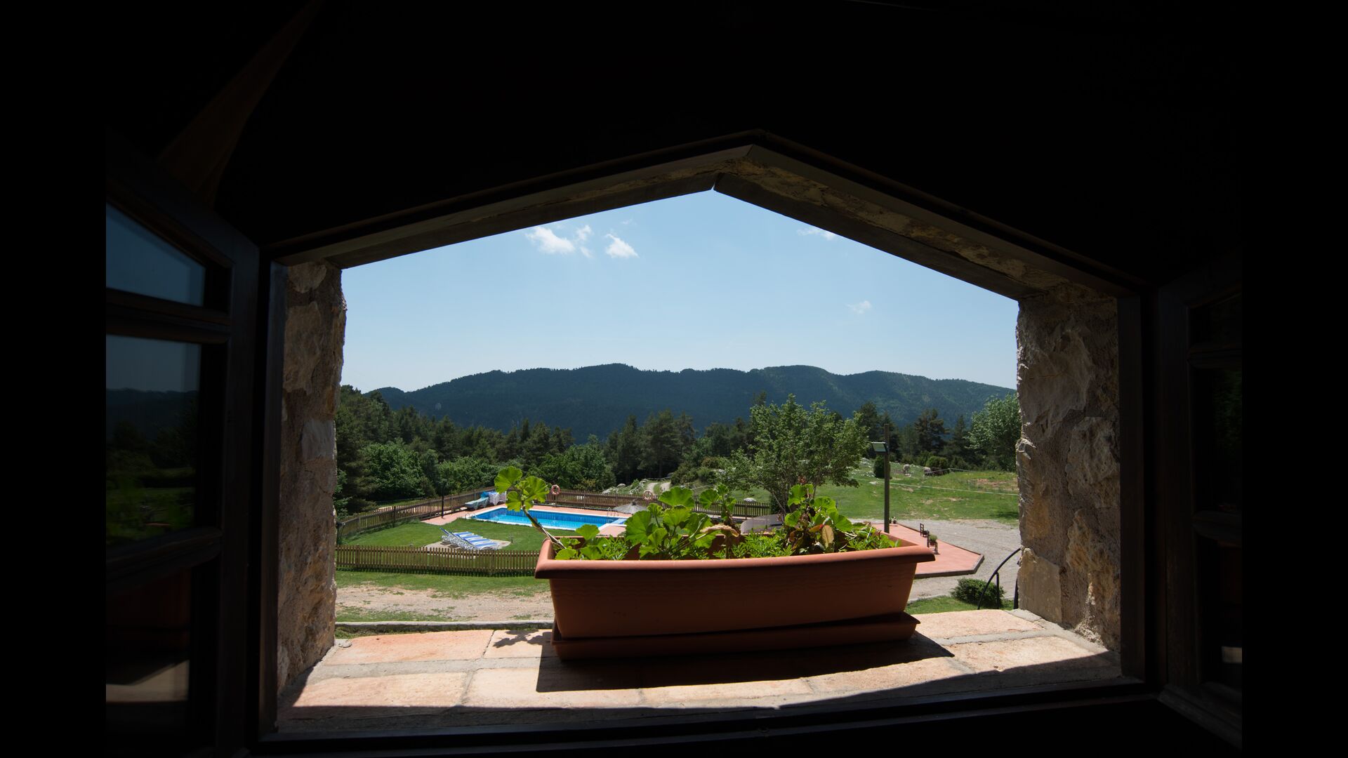 Die große Wohnung „Casa Grande“ im Haupthaus und verfügt über eine große Terrasse mit Blick auf das Grundstück und mit den Pyrenäen im Hintergrund. Diese Wohnung verfügt über vier Doppelzimmer, drei davon mit Doppelbetten, sowie ein Vierbettzimmer mit vier Einzelbetten. Der erste Teil der Wohnung ist aufgeteilt in ein Wohnzimmer mit Ausblick, ein sehr authentisches Esszimmer und einegroße Küche unter anderem mit einem Geschirrspüler und einer Waschmaschine.