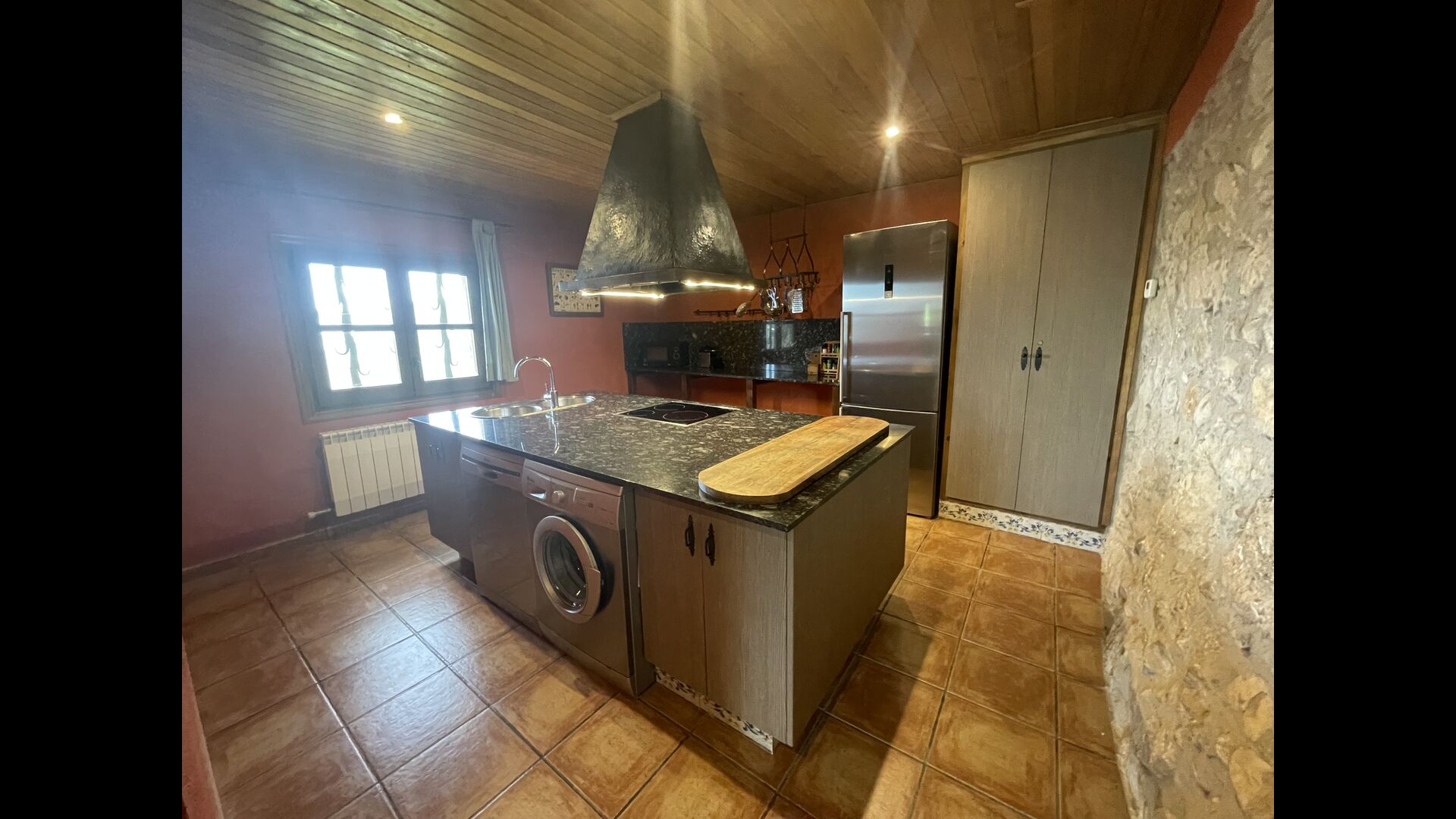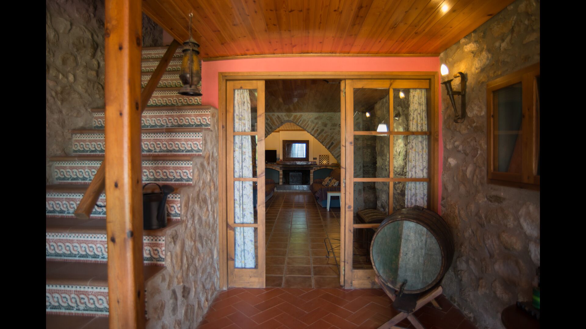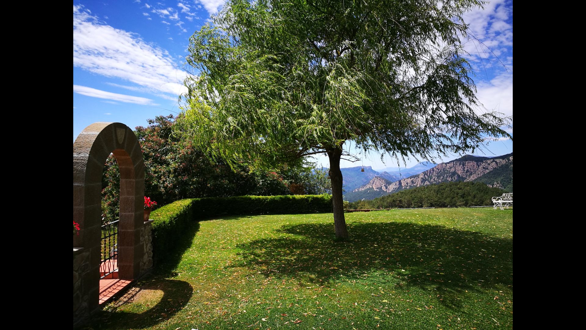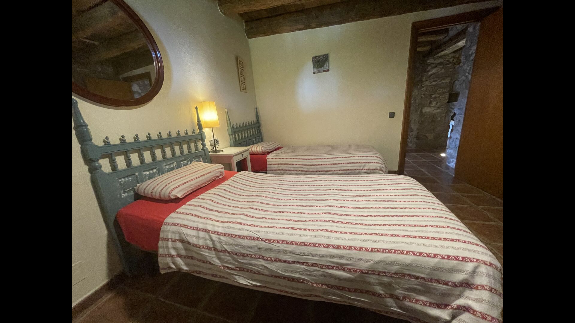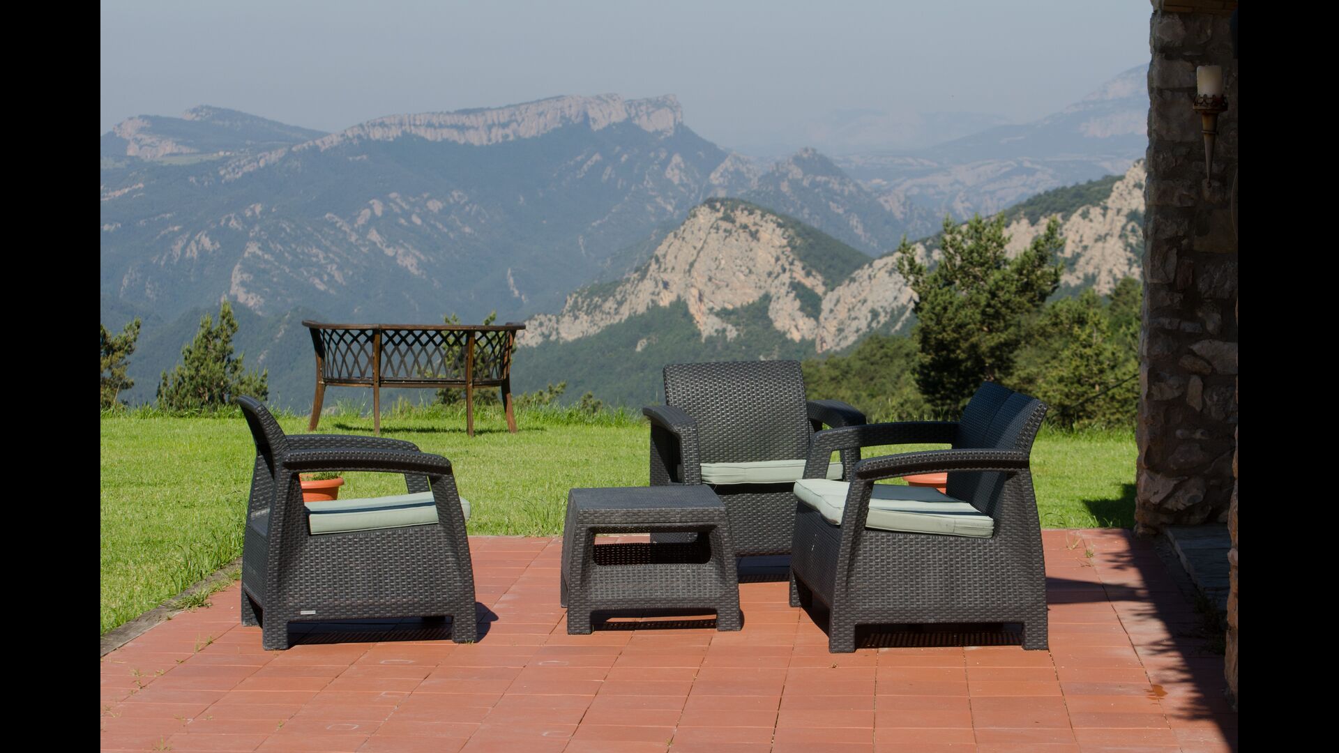 Die große Wohnung „Casa Grande“ im Haupthaus und verfügt über eine große Terrasse mit Blick auf das Grundstück und mit den Pyrenäen im Hintergrund. Diese Wohnung verfügt über vier Doppelzimmer, drei davon mit Doppelbetten, sowie ein Vierbettzimmer mit vier Einzelbetten. Der erste Teil der Wohnung ist aufgeteilt in ein Wohnzimmer mit Ausblick, ein sehr authentisches Esszimmer und einegroße Küche unter anderem mit einem Geschirrspüler und einer Waschmaschine.
