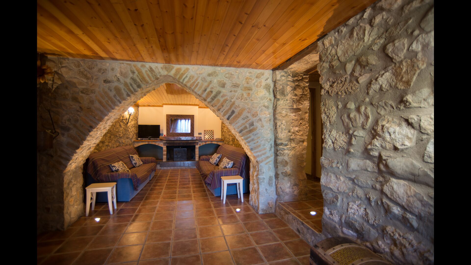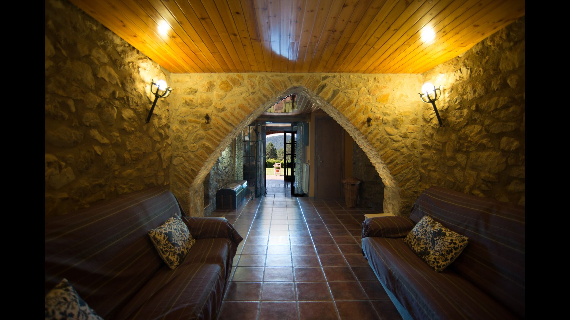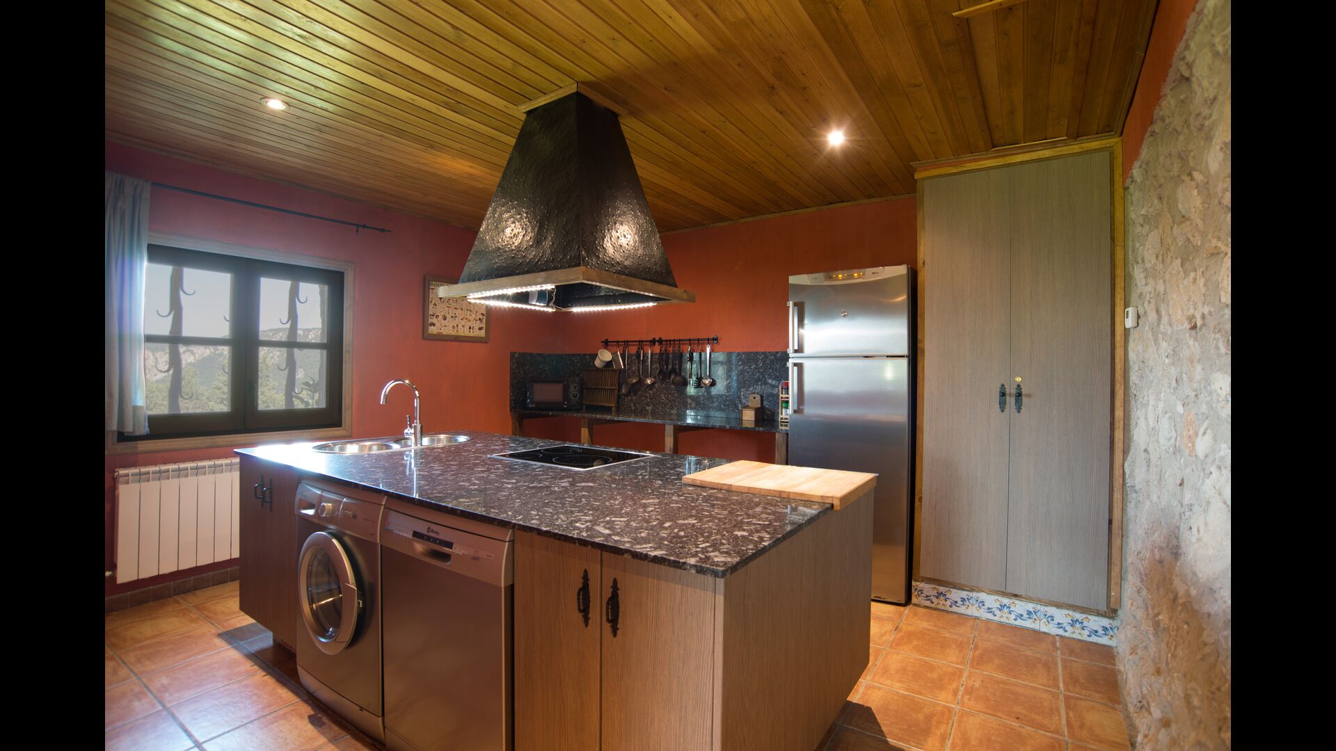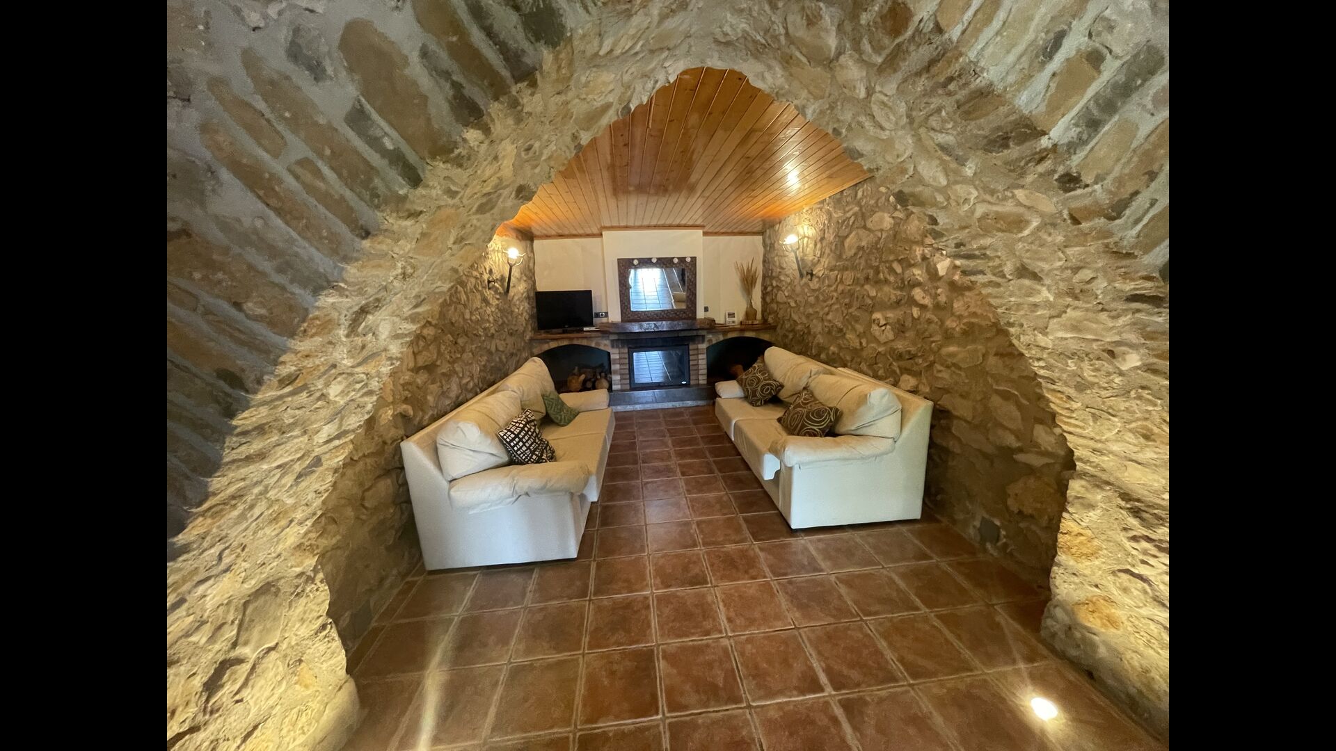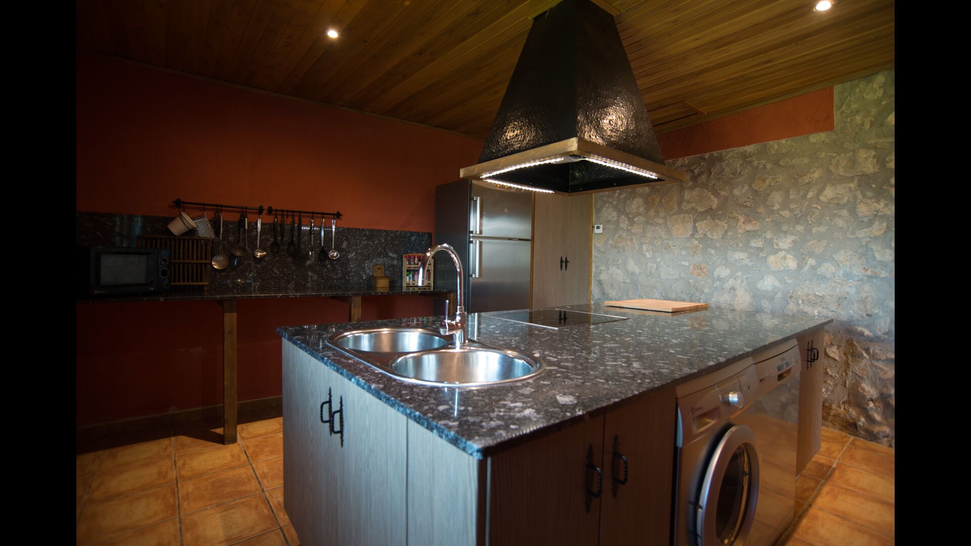 Die große Wohnung „Casa Grande“ im Haupthaus und verfügt über eine große Terrasse mit Blick auf das Grundstück und mit den Pyrenäen im Hintergrund. Diese Wohnung verfügt über vier Doppelzimmer, drei davon mit Doppelbetten, sowie ein Vierbettzimmer mit vier Einzelbetten. Der erste Teil der Wohnung ist aufgeteilt in ein Wohnzimmer mit Ausblick, ein sehr authentisches Esszimmer und einegroße Küche unter anderem mit einem Geschirrspüler und einer Waschmaschine.