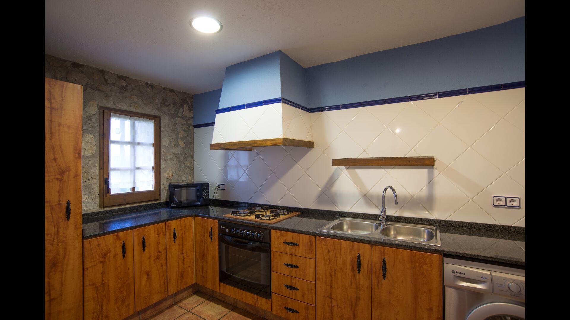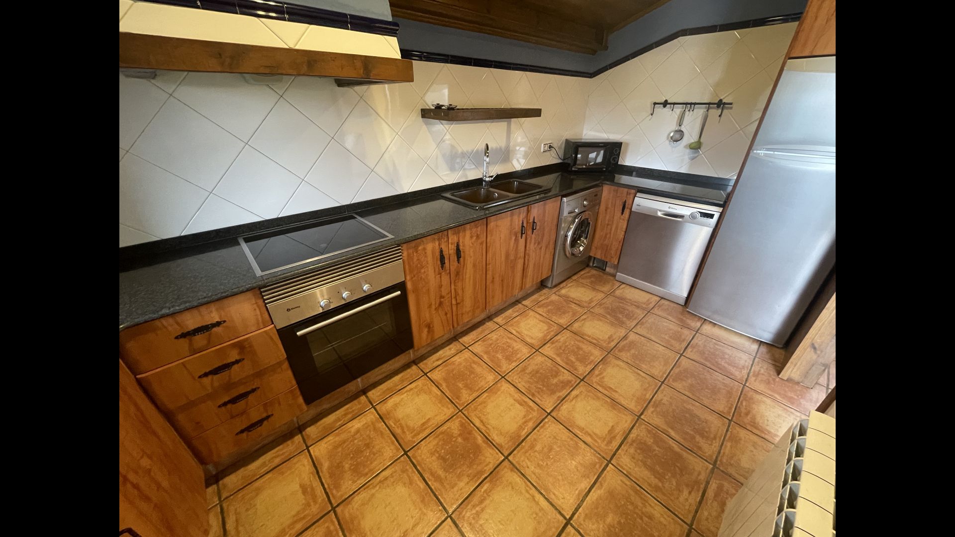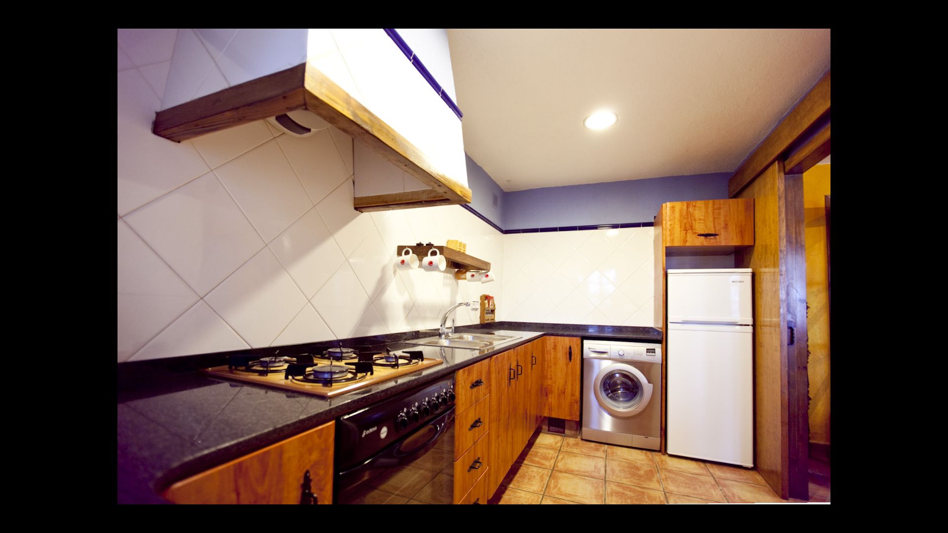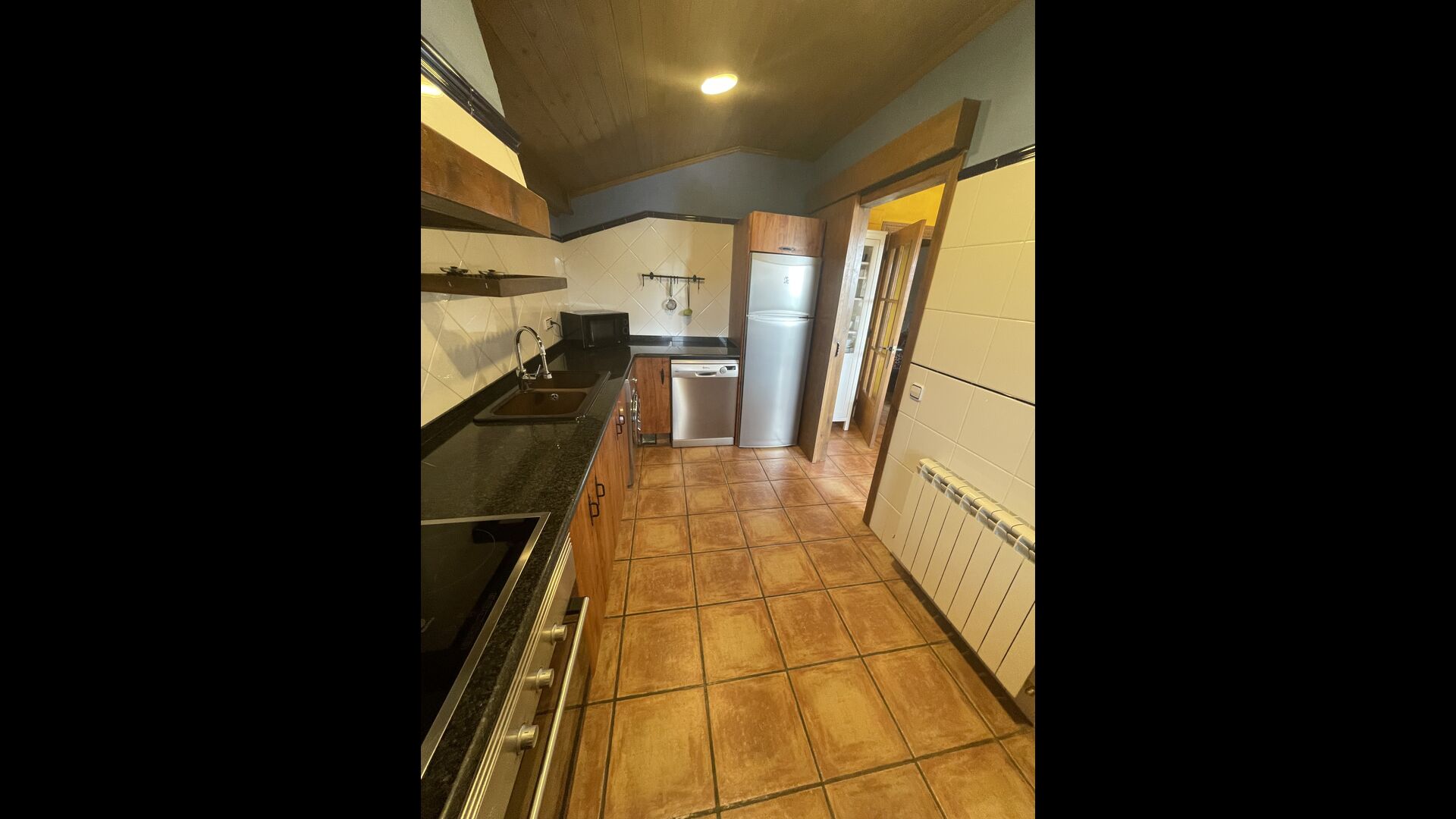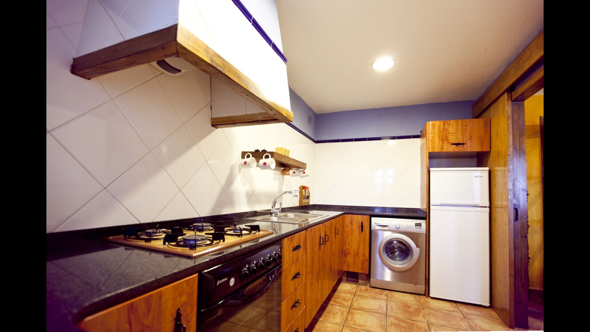 Die große Wohnung „Casa Grande“ im Haupthaus und verfügt über eine große Terrasse mit Blick auf das Grundstück und mit den Pyrenäen im Hintergrund. Diese Wohnung verfügt über vier Doppelzimmer, drei davon mit Doppelbetten, sowie ein Vierbettzimmer mit vier Einzelbetten. Der erste Teil der Wohnung ist aufgeteilt in ein Wohnzimmer mit Ausblick, ein sehr authentisches Esszimmer und einegroße Küche unter anderem mit einem Geschirrspüler und einer Waschmaschine.
