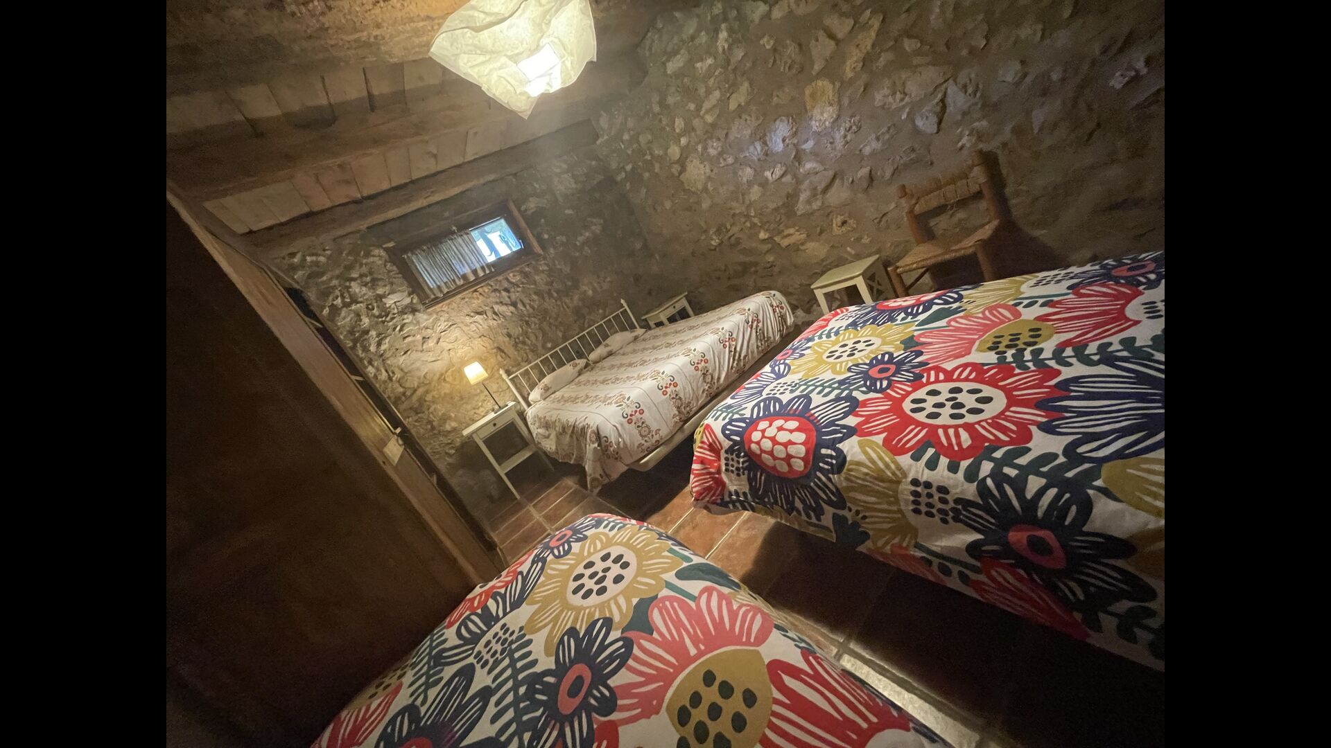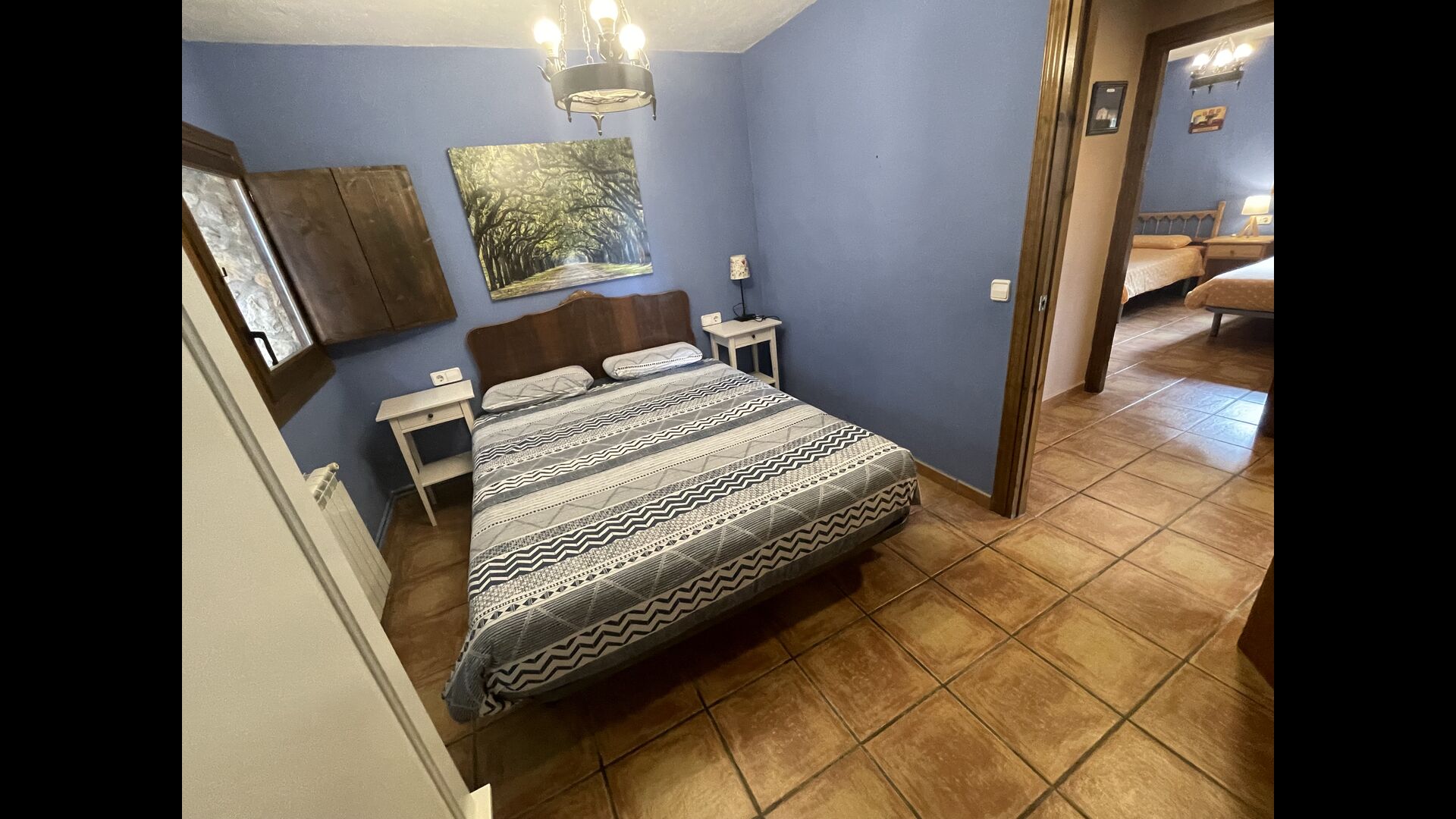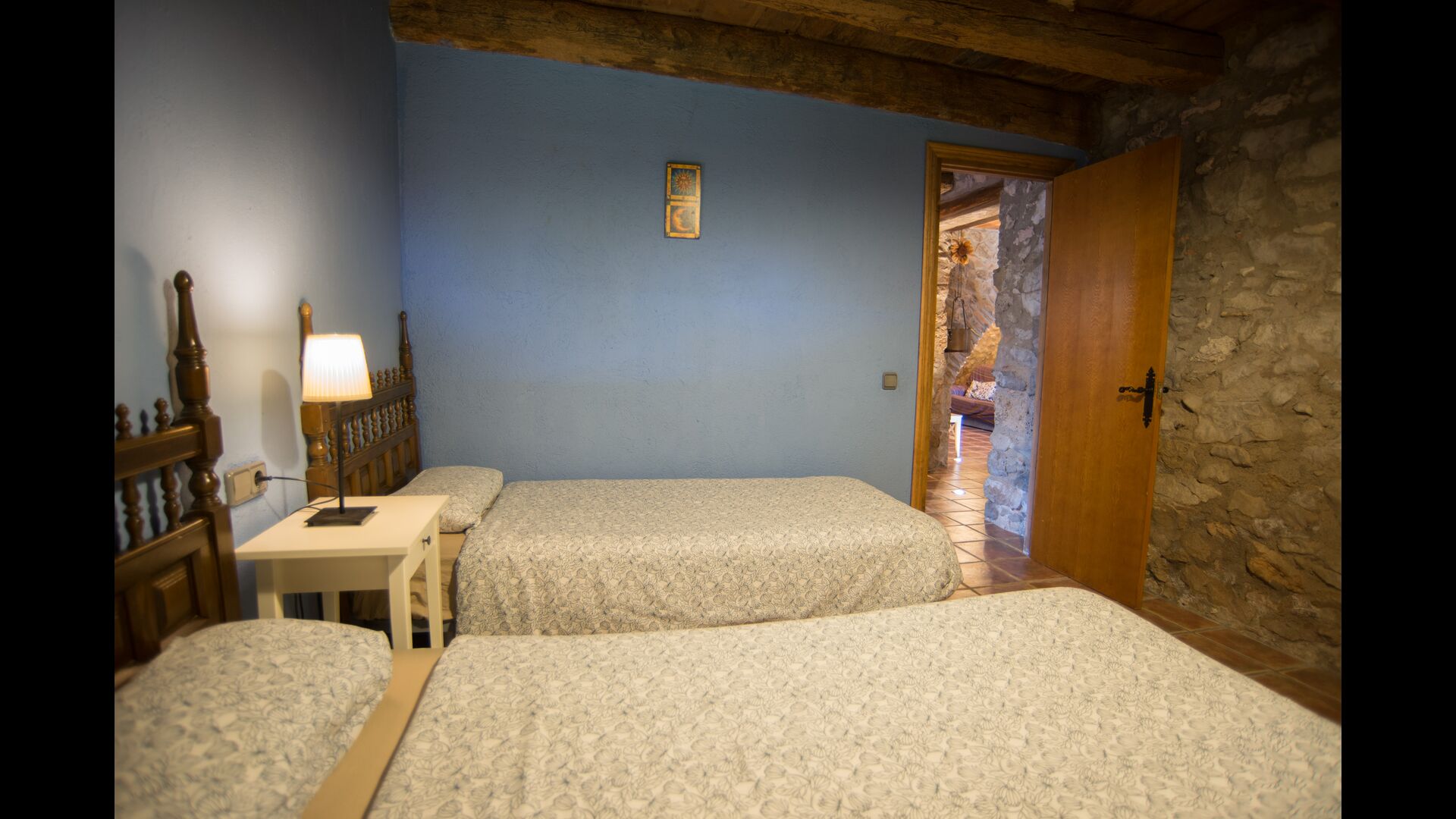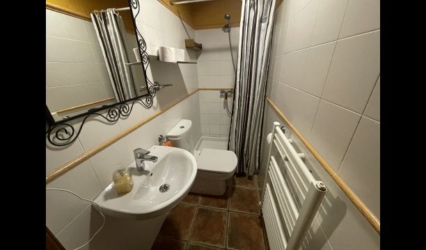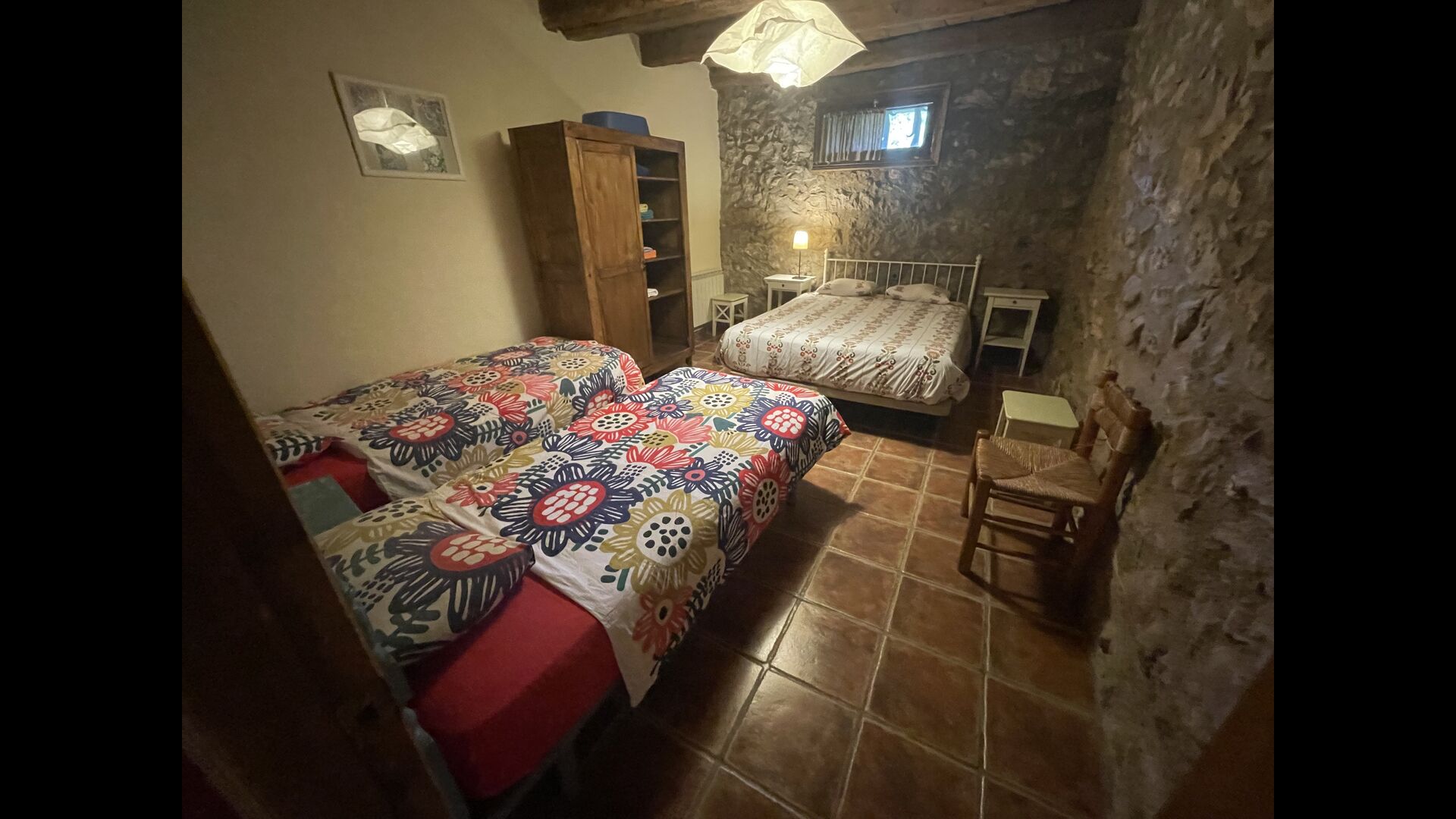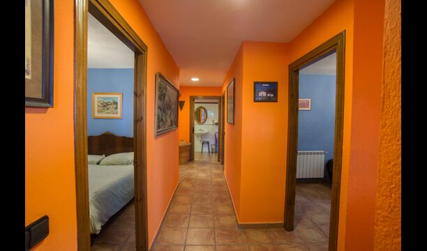 Die Wohnung liegt im ersten Stock und besteht aus einem Doppelzimmer mit 1 Doppelbett, >ein Doppelzimmer mit 2 Einzelbetten und ein Holzschlafzimmer mit Einzelbetten. Darüber hinaus gibt es 2 Badezimmer, eine Küche und ein Wohnzimmer mit einem Esstisch und Sofaecke und ein faszinierender Blick auf die Pyrenäen. Die Aussicht aus den Fenstern ist zu jeder Tageszeit wunderbar – morgens, mittags, abends und nachts.