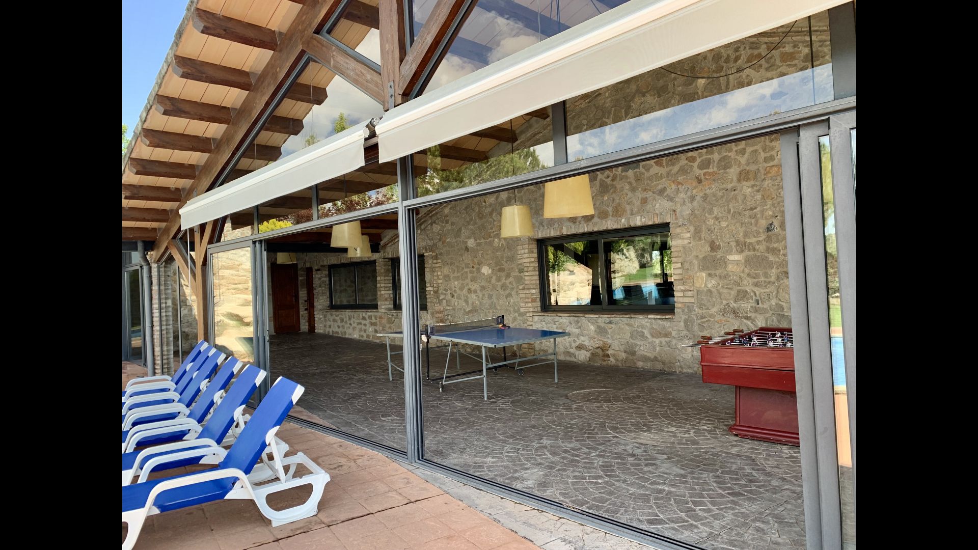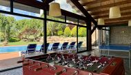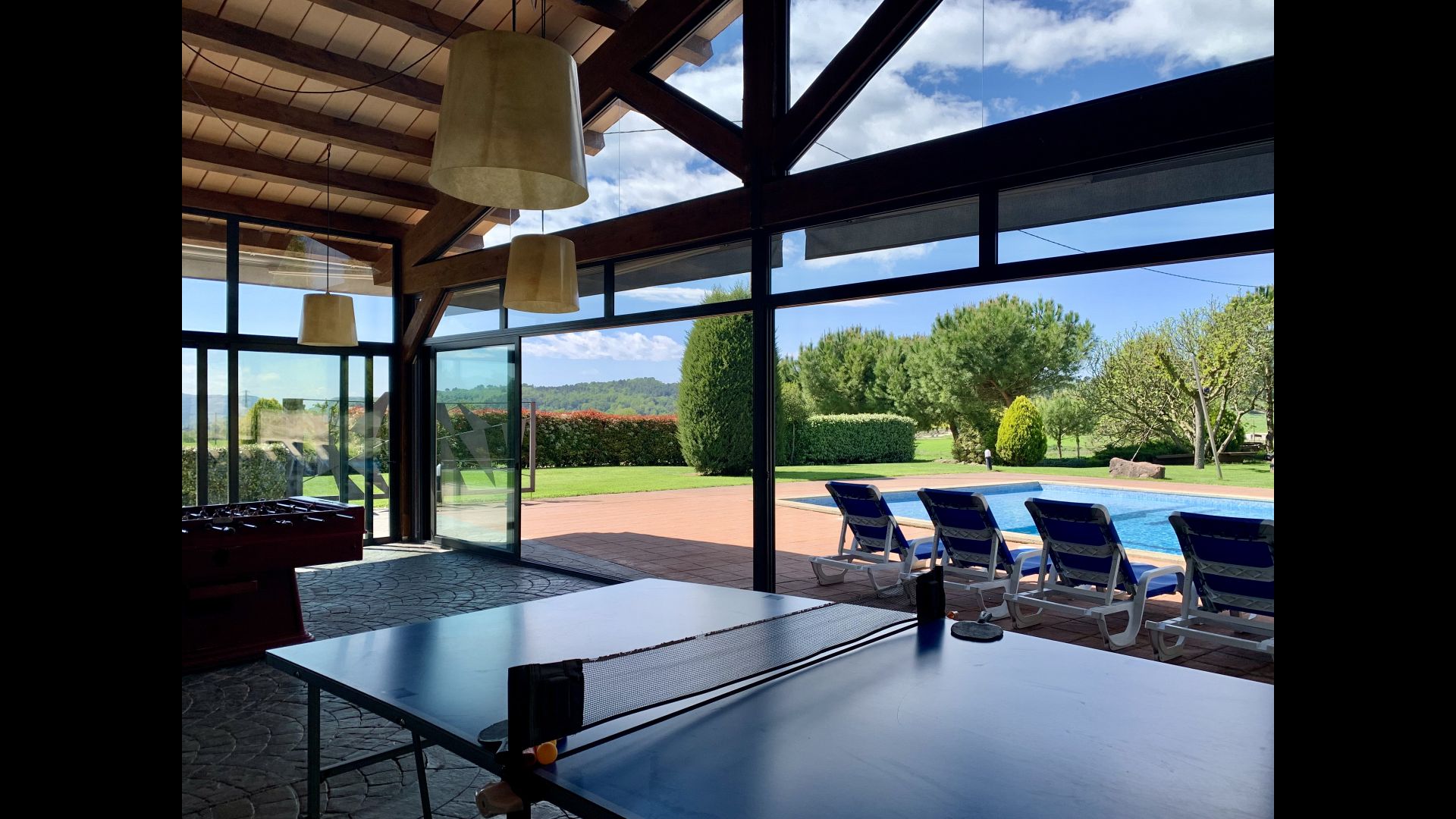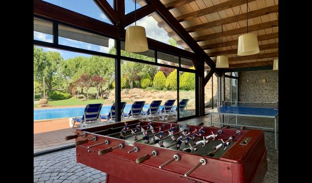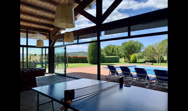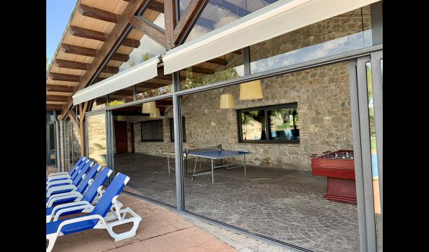 Das Highlight des Hauses ist der Swimmingpoolbereich, der mit einer großen Spielhalle verbunden ist. Wir gehen davon aus, dass Sie die meiste Zeit hier verbringen und das warme katalanische Wetter genießen werden. Bequeme Sonnenliegen sind entlang der Poolseite aufgereiht, und der Swimmingpool ist groß und bietet viel Platz für die gesamte Urlaubsgruppe! Wir stellen uns vor, die Kinder der Feriengruppe werden einen Riesenspaß haben, zwischen Schwimmen, Tischtennis und Tischkicker wechseln zu können!