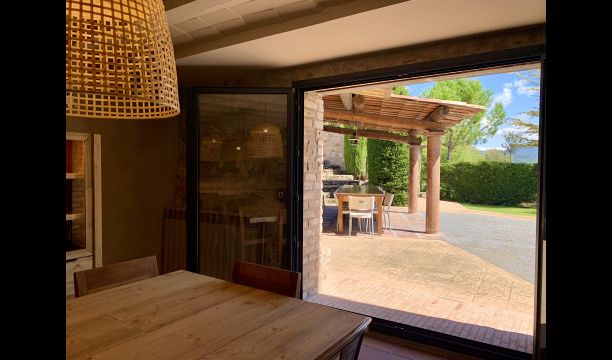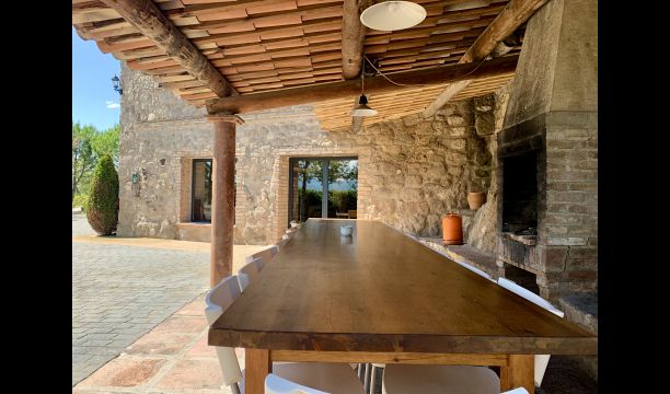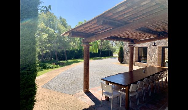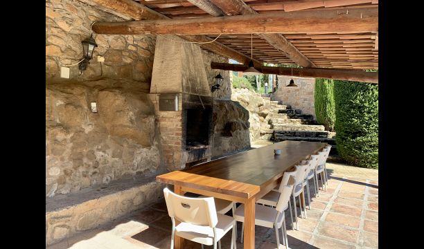 Casa Puentes hat zwei separate Eingänge, da das Haus in zwei unabhängige Wohnungen innerhalb eines Gebäudes aufgeteilt ist. Das erste Gebäude, das Ihnen von der schön gepflasterten Auffahrt entgegenkommt, hat einen großen, schattigen Essbereich im Freien vor dem Haus. Der Essbereich besteht aus einem Grill und einem langen Holztisch mit Platz für die gesamte Gruppe. Wir stellen uns lange Sommernächte mit toller Gesellschaft und lokalen Speisen und Weinen von den katalanischen Märkten und Weingütern vor!
