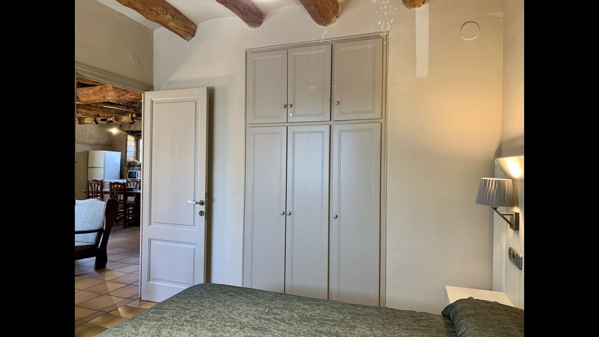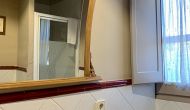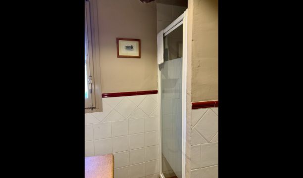 Von der zweiten Etage aus können Sie das Haus in den Hinterhof verlassen. Neben diesem Ausgang finden Sie den Eingang zum anderen Teil des Hauses. Vom Eingang aus betreten Sie einen gemütlichen, gemeinschaftlich genutzten Wohnraum, der aus einer charmanten, offenen Küche, einem Esstisch und einem Loungebereich mit einer Sofagruppe und einem Fernseher besteht. Der Wohnbereich hat auch eine französische Doppelterrasse mit Blick auf den Vorgarten. Vom Wohnraum aus betreten Sie die drei Doppelzimmer und die beiden Badezimmer.