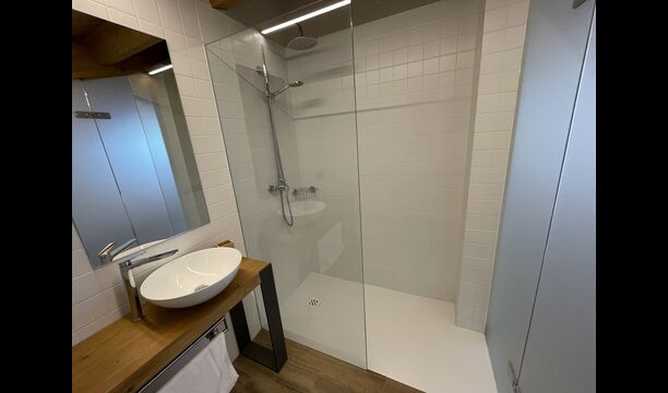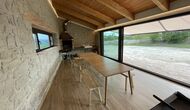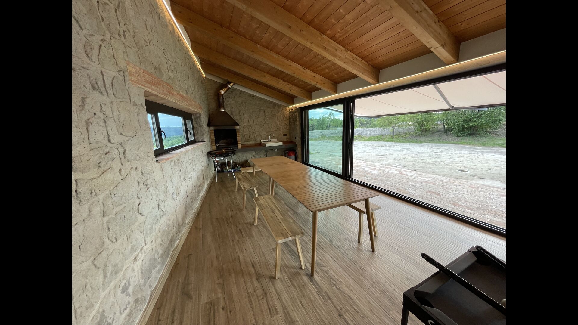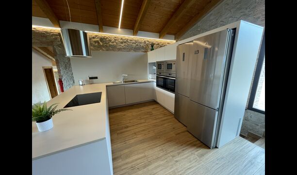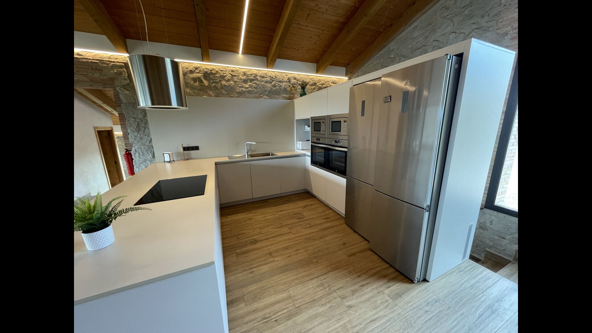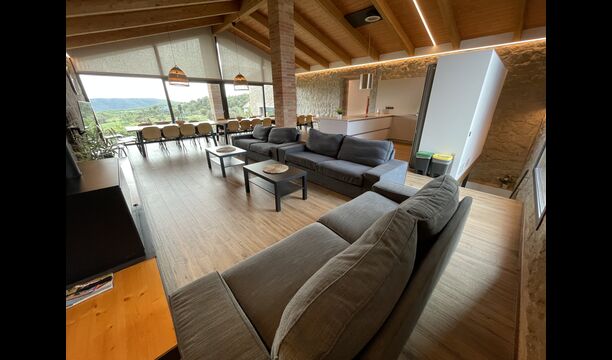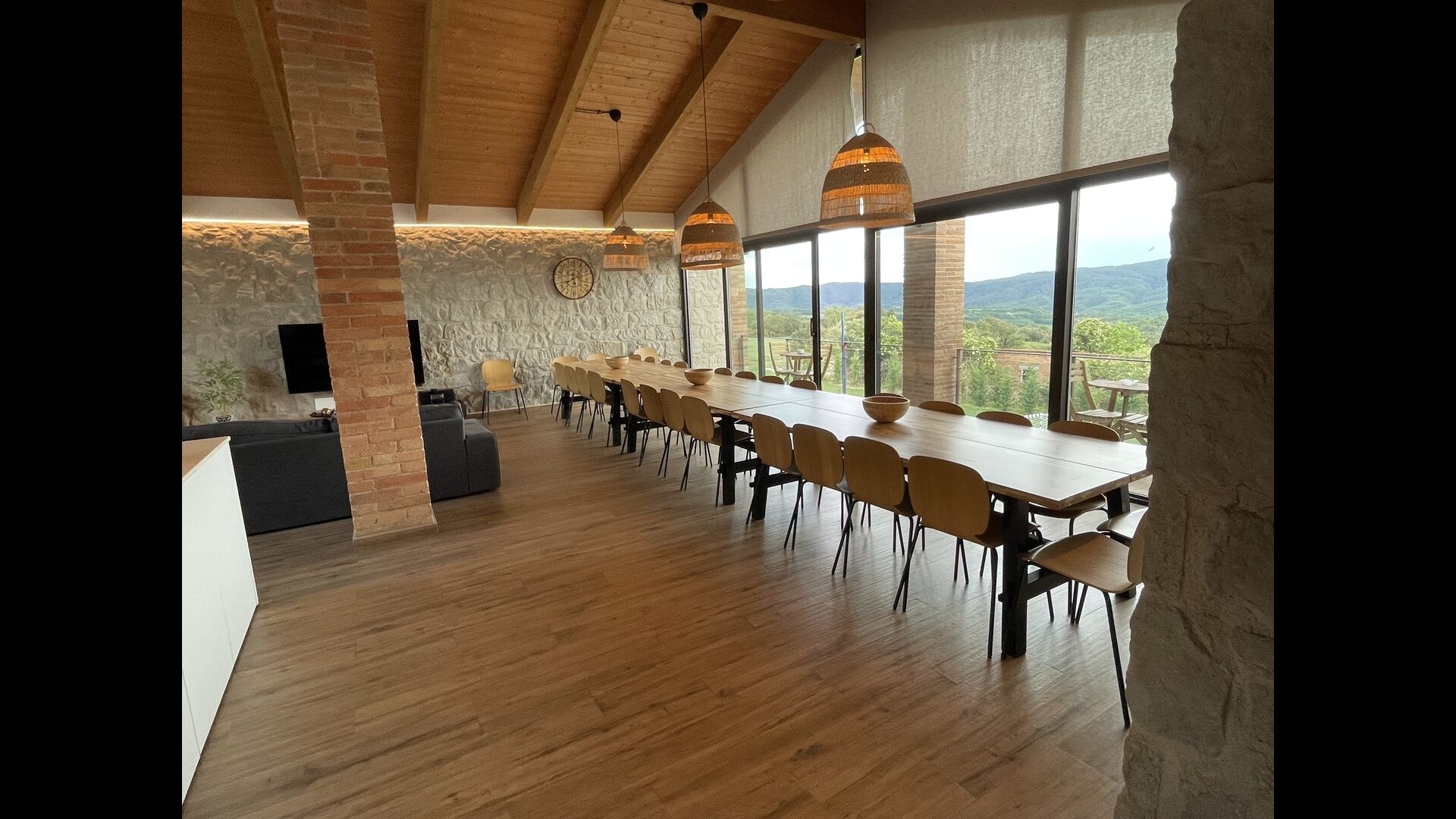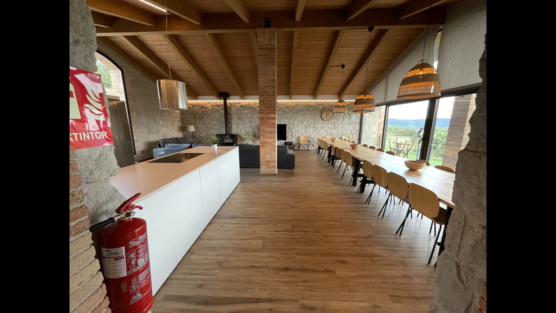 Die TannenDer Boden liegt leicht über dem Erdgeschoss. Beim Betreten finden Sie einengroßen, geräumigen und gemütlichen Raum vor, der auf der linken Seite eine Luxusküche mit 2 Kühlschränken, Öfen und einem Herd vereint. strong> und alle anderen Zubehörteile, Utensilien und Hilfsmittel, die für eine moderne, exquisite Küche geeignet sind. Zu Ihrer Rechten befindet sich ein sehr großer Esstisch, an dem viele Personen Platz finden. Dank der vom Boden bis zur Decke reichenden Fenster mit Blick auf den darunter liegenden Garten haben Sie eine ausgezeichnete Aussicht, während Sie mit Freunden und der Familie speisen, Karten/Brettspiele spielen oder Spaß haben Gespräche bis spät in die Nacht bei einer Flasche köstlichen katalanischen Weins. Wenn Sie außerdem die Aussicht im Freien genießen möchten, gibt es auch eine wunderschöne große Terrasse mit kleinen Couchtischen und Stühlen. Last but not least verfügt das Zimmer auch über eine große, gemütliche Sofaecke mit einem Fernseher und einem Kamin. Wenn Sie Ihre Beine ausruhen oder mit Ihren Reisegefährten einen guten Film genießen möchten, ist dies der perfekte Ort dafür.
