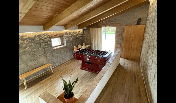 Das Porxo ist das andere Gebäude der Unterkunft – prall gefüllt mit luxuriösen Loungebereichen, Unterhaltung und Entspannung! Es ist in drei Etagen unterteilt: das Erdgeschoss Etage, der erste Stock und der Keller.