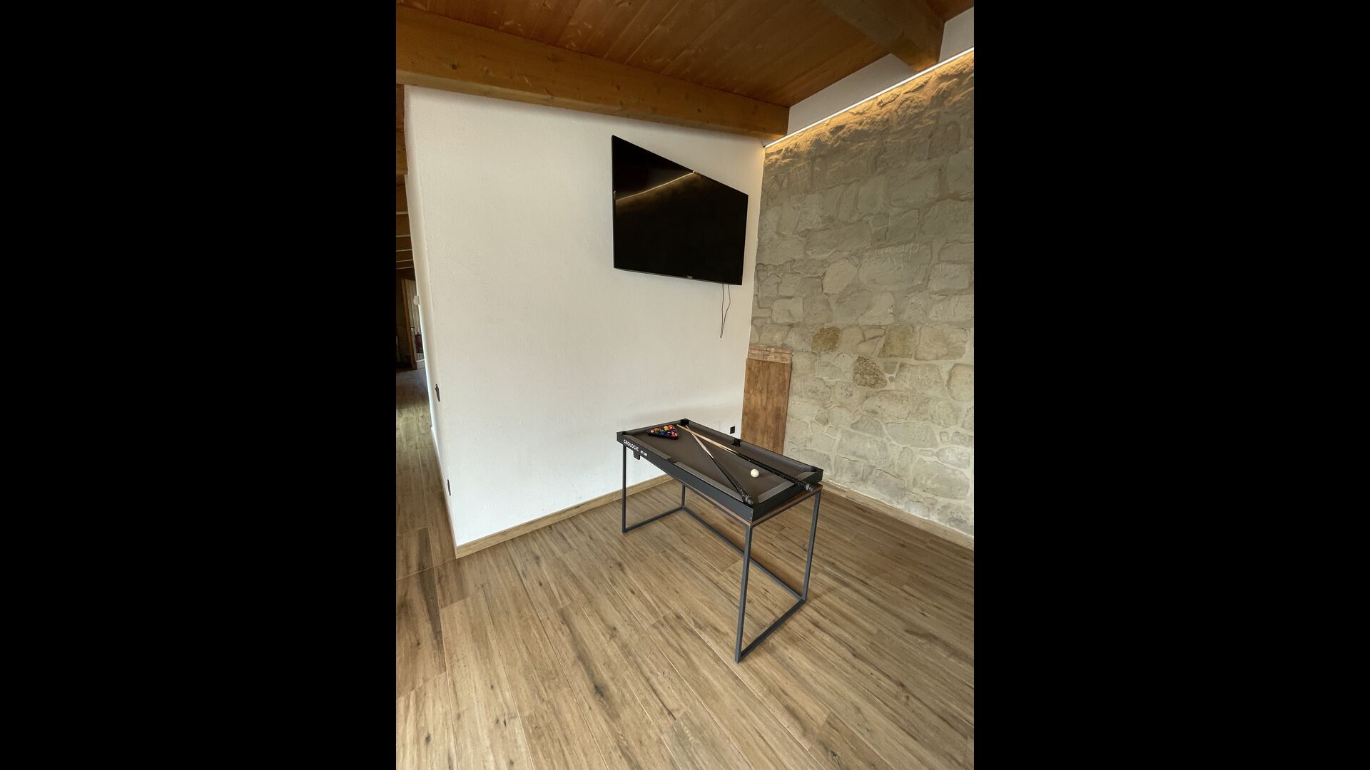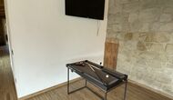 Wenn Sie vom Erdgeschoss eintreten, finden Sie einen Tischfußball-Aufbau und ein Badezimmer. Ebenfalls im Erdgeschoss finden Sie einen großen Esstisch, einen Grill (mit ummauertem Grill) und einen an der Wand montierten Flachbildfernseher</strong > und ein kleiner Billardtisch.