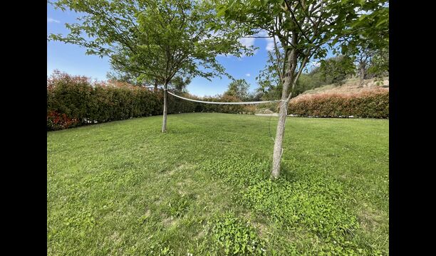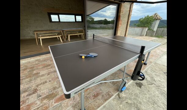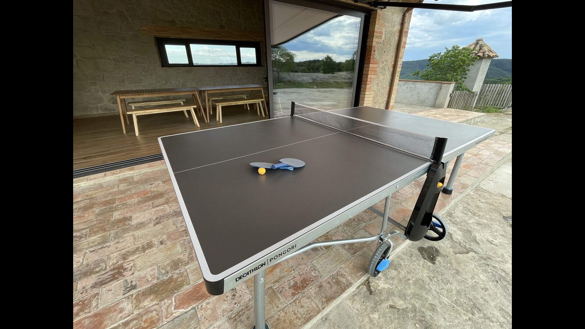 Im Garten gibt es ein Trampolin, auf dem die Kinder wunderbar herumhüpfen können. Eltern können die spielenden Kinder durch die Fenster im Innenpool sowie im Ess-/Wohnzimmer und auf der Terrasse des Porxo beobachten. Direkt neben dem Trampolin befindet sich eine Fußballfläche mit zwei Toren. Darüber hinaus ist im Garten ein Volleyballnetz aufgestellt und es gibt auch eine Tischtennisplatte, die Sie nutzen können.