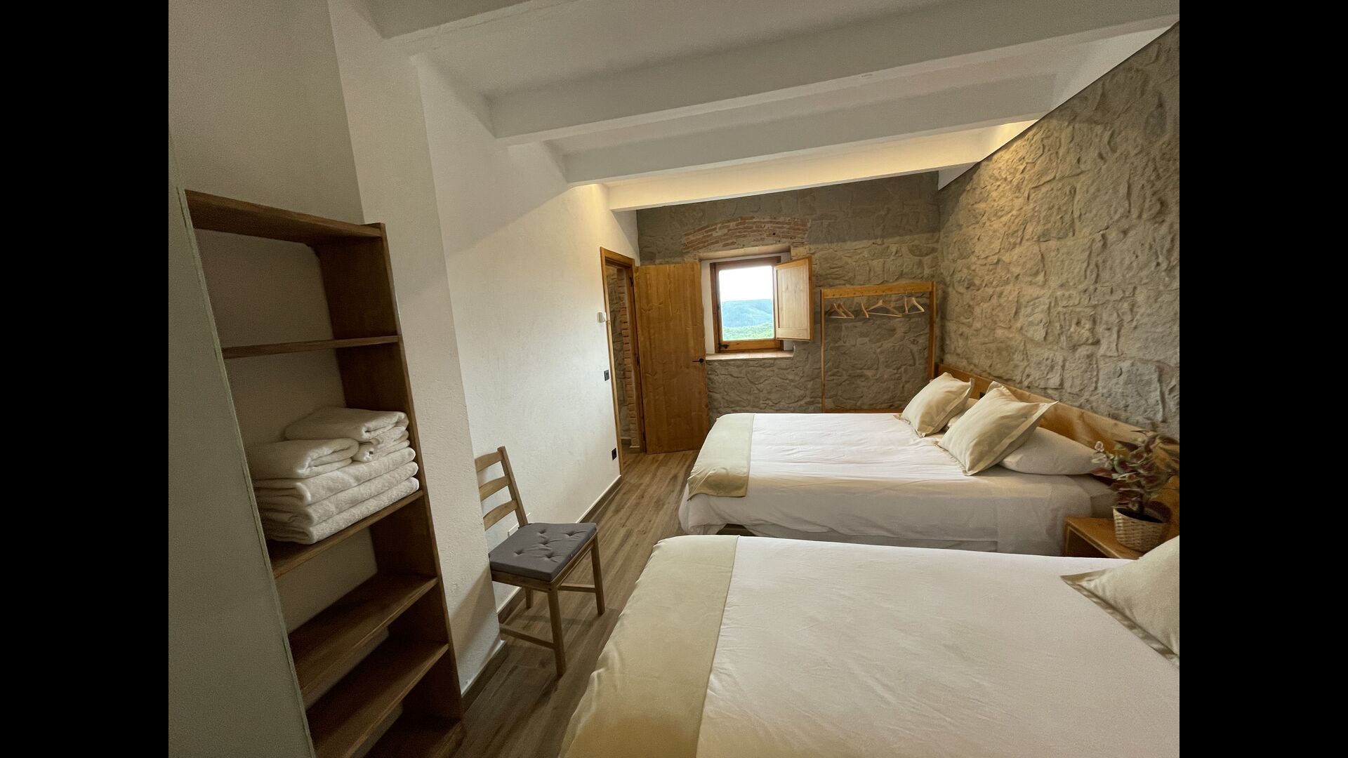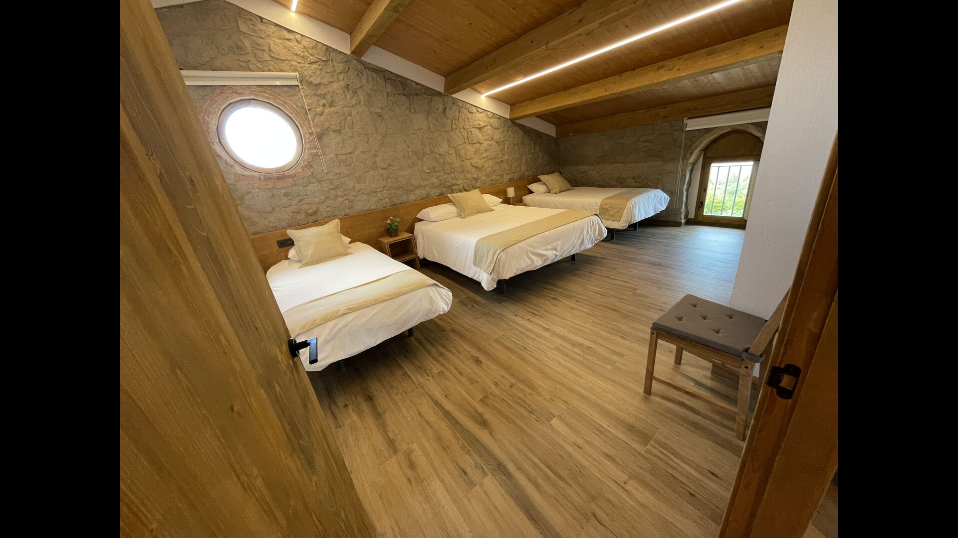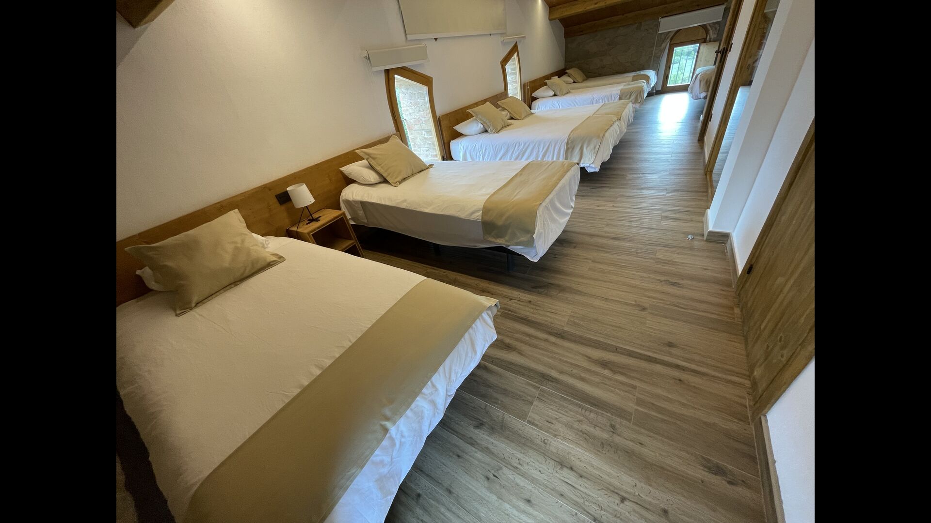 Im zweiten Stock finden Sie dieletzten drei Schlafzimmer; Ein Zimmer verfügt über 2 Einzelbetten und 1 Doppelbett, ein anderes über 1 Einzelbett und 1 Doppelbett Bett. Schließlich gibt es noch eingroßes Schlafzimmer mit 7 Einzelbetten.