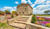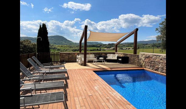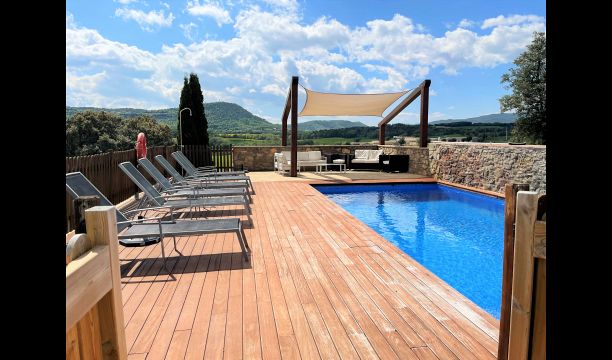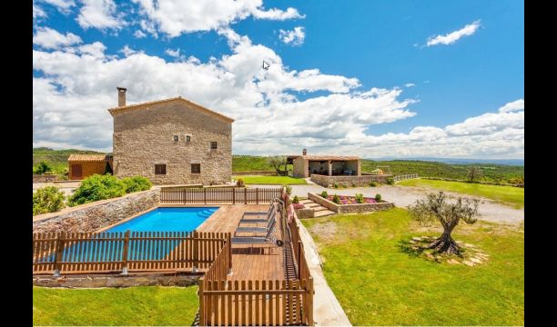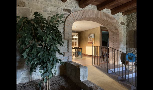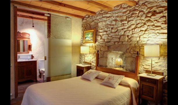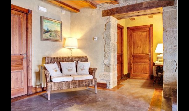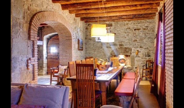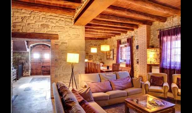 Casa Torres ist ein Kalksteinhaus aus dem 15. Jahrhundert, auf einem Hügel mit Panoramablick auf die Pyrenäen wunderschön gelegen. Das eindrucksvollste Detail ist das Hallenbad, das von Steinmauern in den unteren Stock des Hauses umgeben ist - eine einzigartige Lösung.