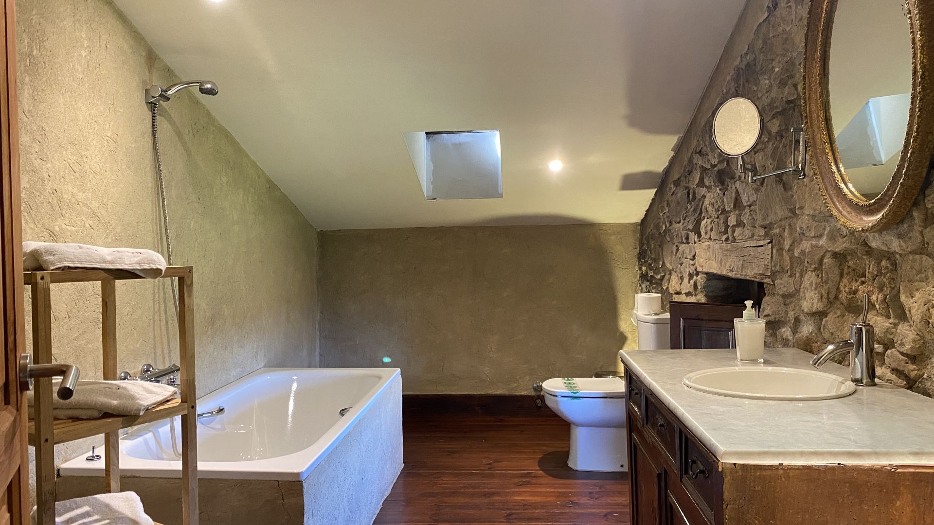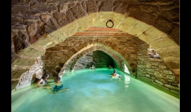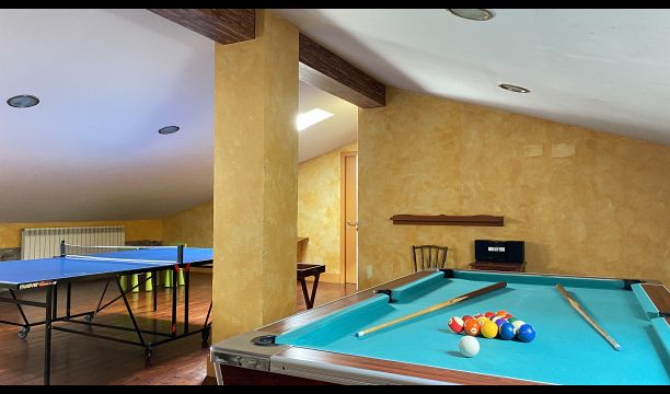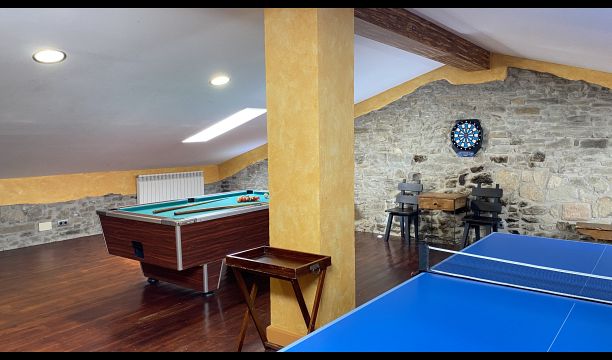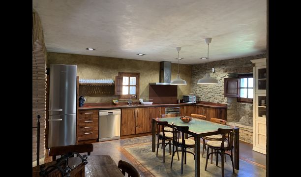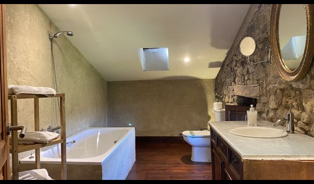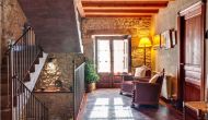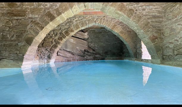 Die insgesamt 450 m2, auf drei Etagen aufgeteilt, sind mit Respekt für den rustikalen Stil renoviert und bietet eine voll ausgestattete Küche, eine schöne geschwungene Wohnzimmer mit Kamin und sechs Doppelzimmer und ein Dreibettzimmer, alle mit eigenen Bädern. Wie bereits erwähnt, gibt es ein Hallenbad, das das ganze Jahr lang Schwimmen ermöglicht.