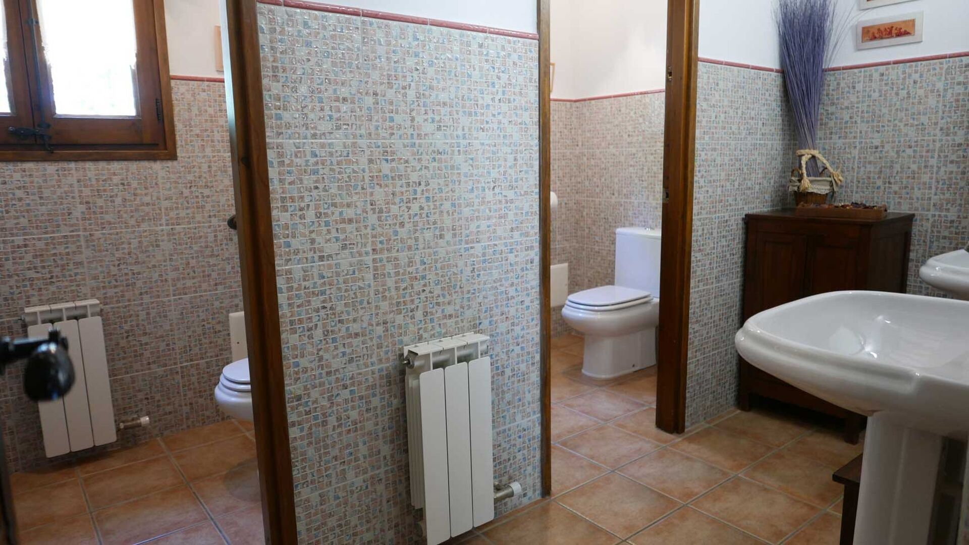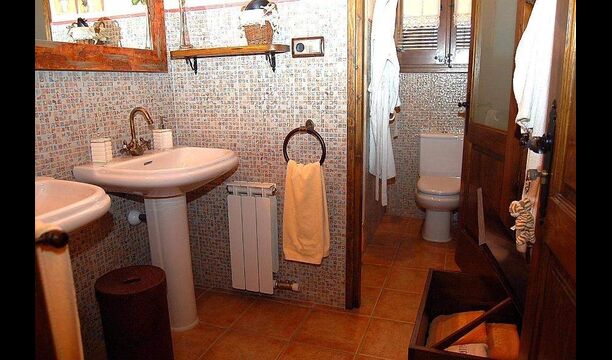 Im Haus gibt es im ersten Stock sechs Doppelzimmer und drei Badezimmer mit Hydromassage-Einrichtungen. Zwei zusätzliche Badezimmer finden Sie im Erdgeschoss, sowie ein voll ausgestattetes Einzelzimmer mit Bad speziell auf die Anforderungen unserer behinderten Gäste eingerichtet. Dieses Zimmer ist auch mit einem elektrischen Elevationsbett ausgestattet.