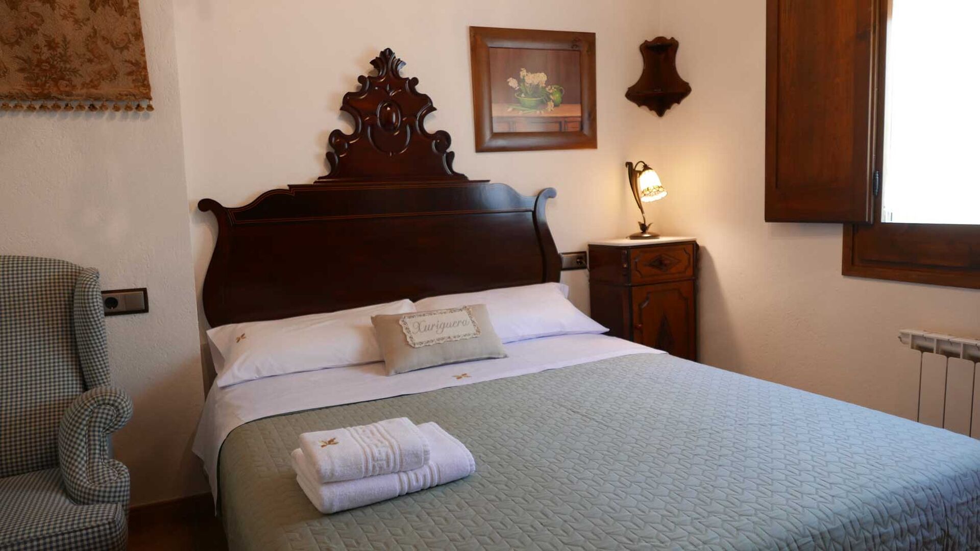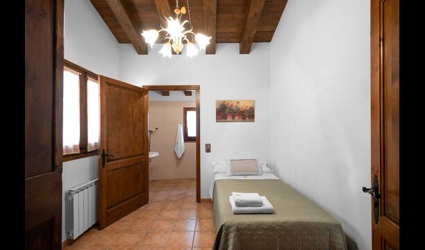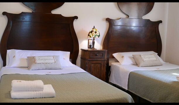 Casa Xuguera hat Platz für 13 Gäste in sechs Doppelzimmer plus ein zusätzliches Einzelzimmer das für Behinderte geeignet ist, alle von ihnen mit Blick auf die umliegenden Felder und Gärten. Es gibt zwei Badezimmer im unteren Stock, und drei im Obergeschoss. Das Zimmer für Behinderte ist mit eigener Toilette und Bad ausgestattet.