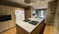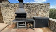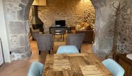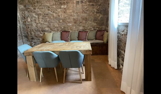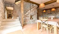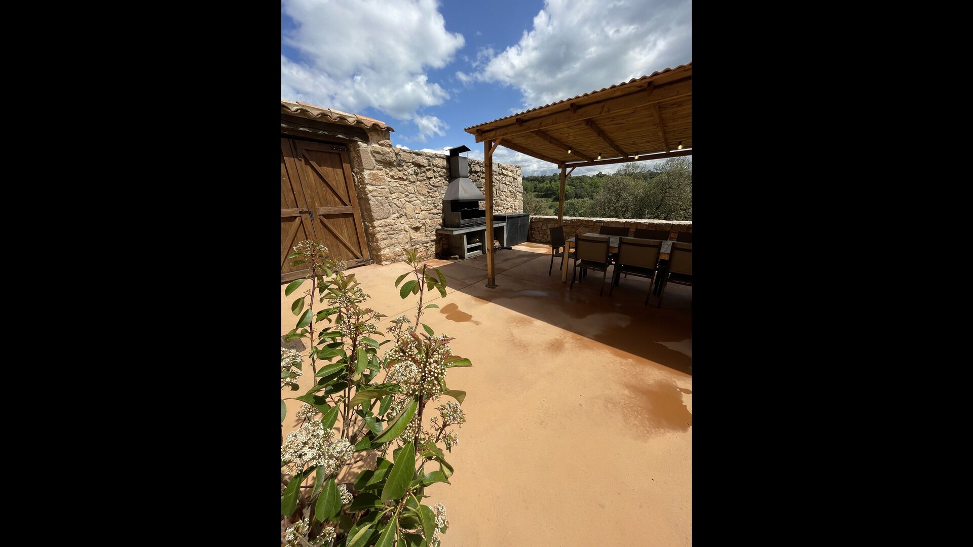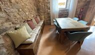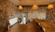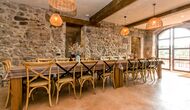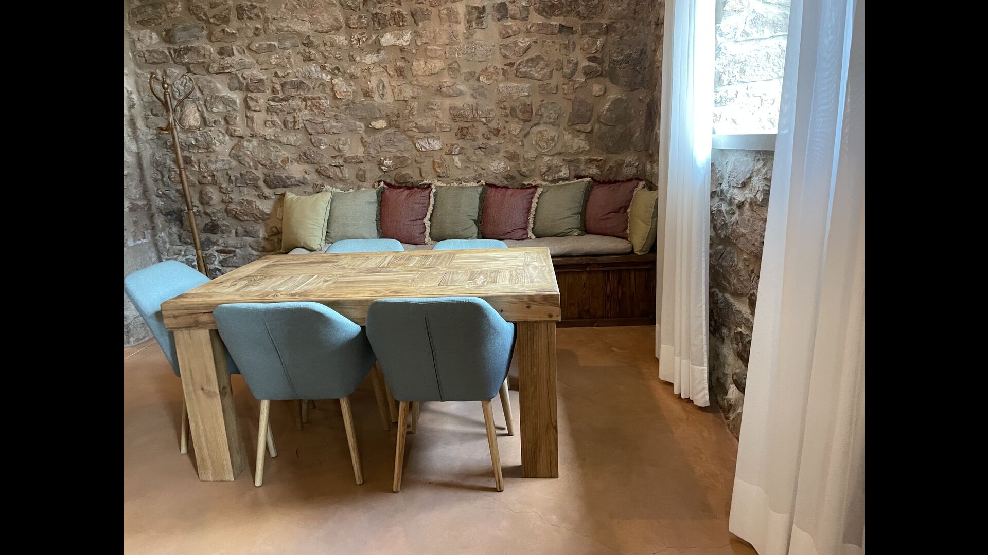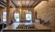 Von der Außenterrasse mit Grill, Essplatz und Liegestühlen zum Entspannen gelangen Sie direkt in den großen Speisesaal des Mas. Dieser fungiert als Herzstück des Hauses und verbindet die beiden kleinen Wohnzimmer im Erdgeschoss mit der großen Küche. Die Küche ist komplett ausgestattet mit 2 Gasherden, 2 Geschirrspülern, 2 Kühlschränken mit Gefrierfach, Backofen, Mikrowelle und Kaffeemaschine sowie einem kleinen Frühstückstisch.