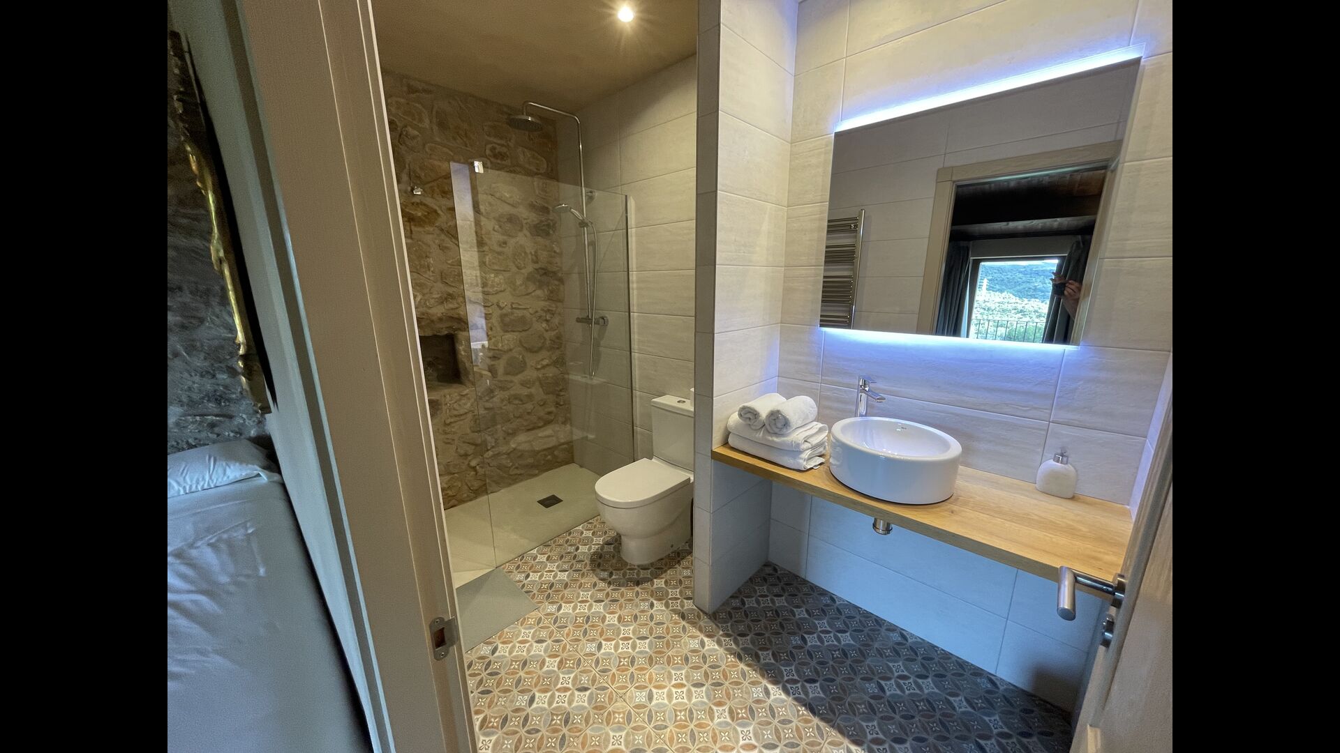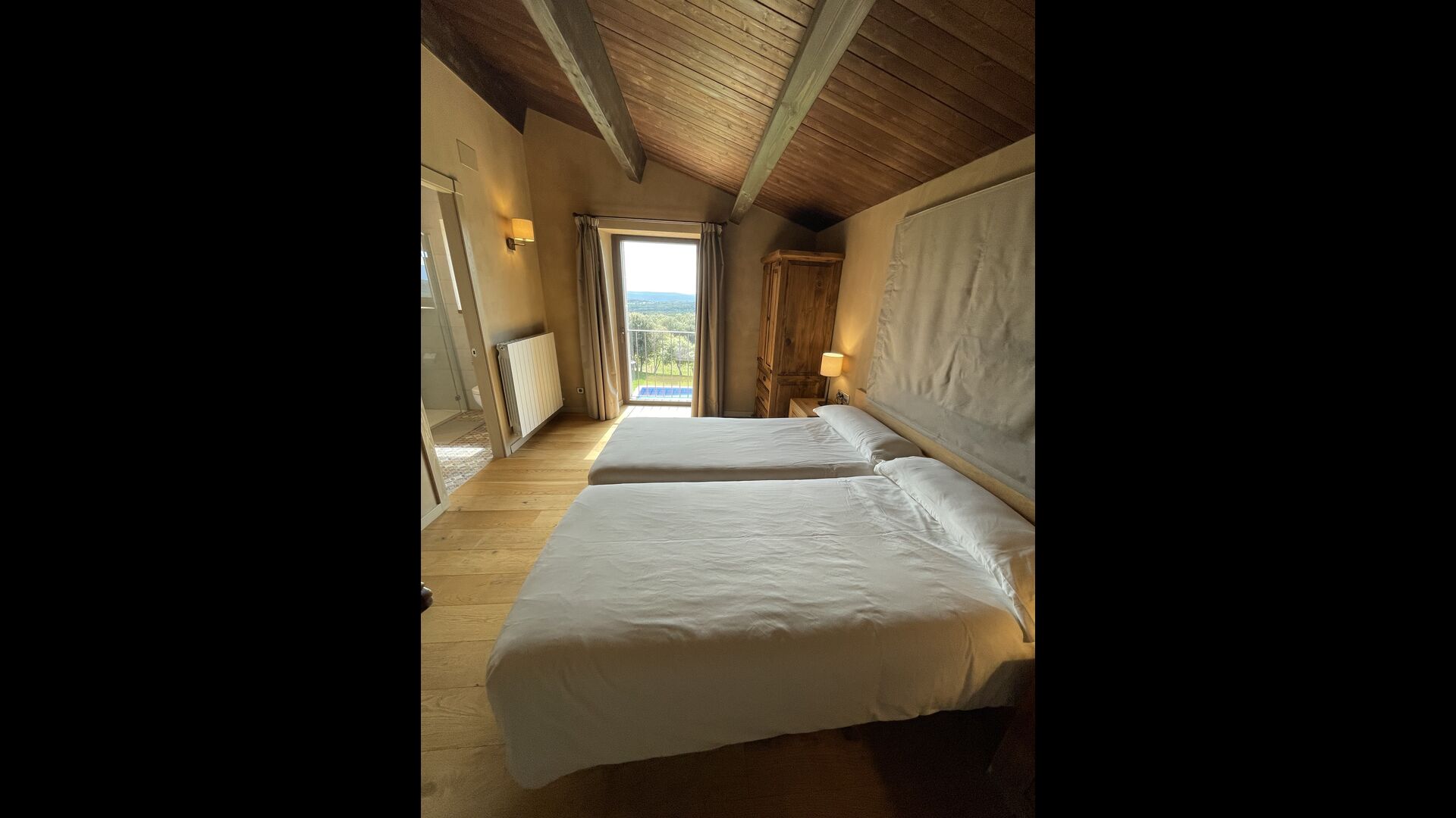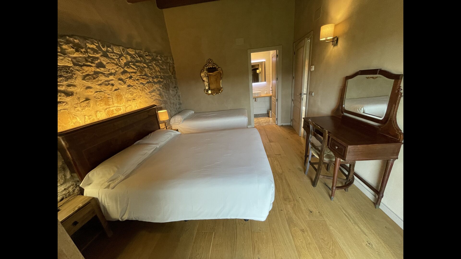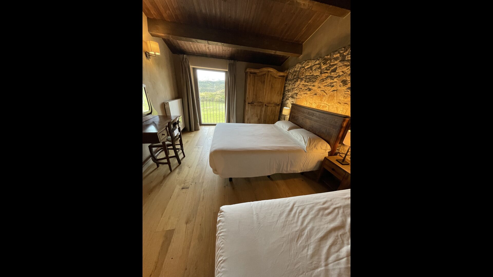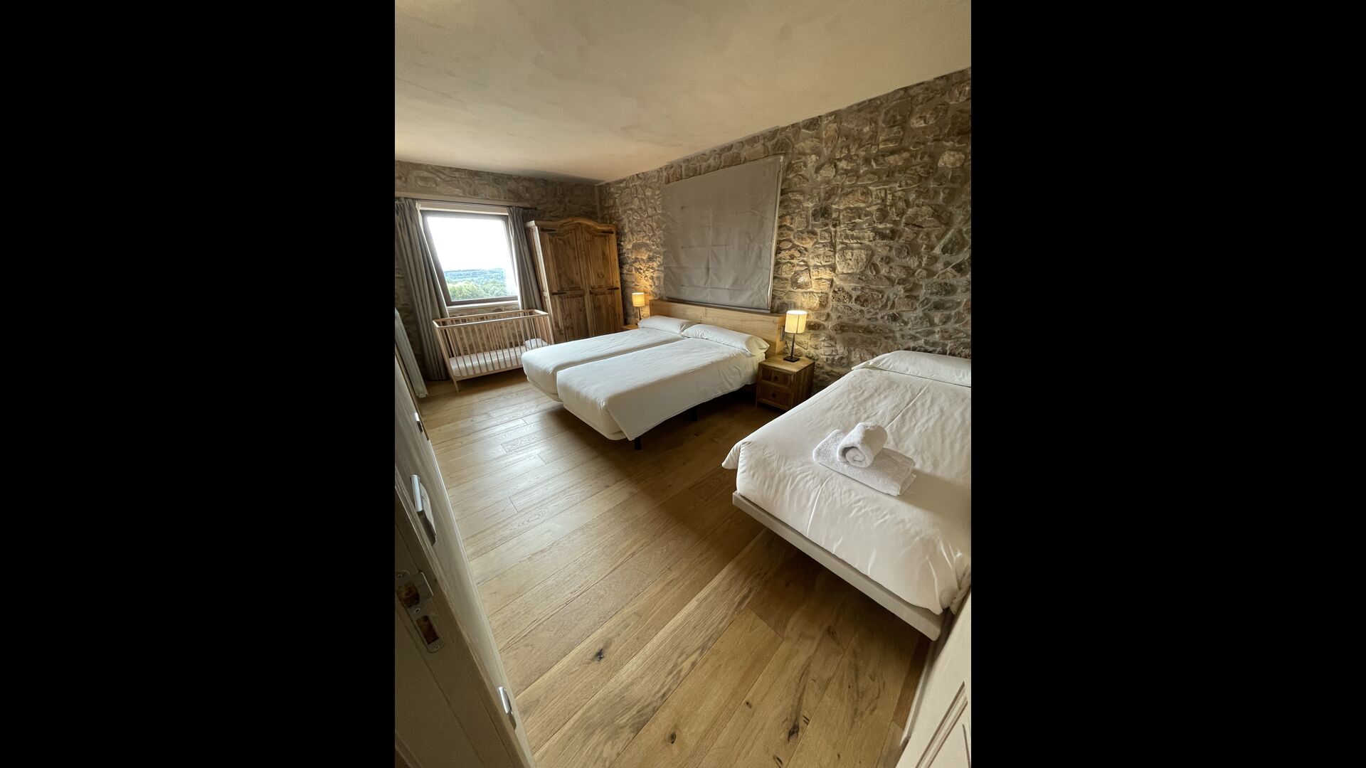 Im ersten Stock finden Sie 6 große Doppelzimmer mit Blick auf die Natur, alle mit eigenem Bad. Auf der zweiten Etage finden wir 2 weitere Doppelzimmer und 2 Vierbettzimmer (mit zwei Einzelbetten und einem Doppelbett, getrennt durch eine Tür). Diese haben auch alle Außenfenster