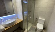 An das Esszimmer angeschlossen ist die offene Küche mit natürlichen Eichenholzmöbeln, komplett ausgestattet mit 2 Kühl- und 2 Gefrierschränken, Backofen, Mikrowelle, Gasherd, Geschirrspüler, Kaffeemaschine und im selben Raum befindet sich ein Ruhebereich mit bequemen Sofas. Auf dieser Etage befindet sich auch eine kleine Toilette mit Toilette und Waschbecken.