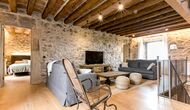 Ein spektakuläres Haus voller Details aus der ursprünglichen Konstruktion, eingerahmt von Holzmöbeln und warmen Stoffen.