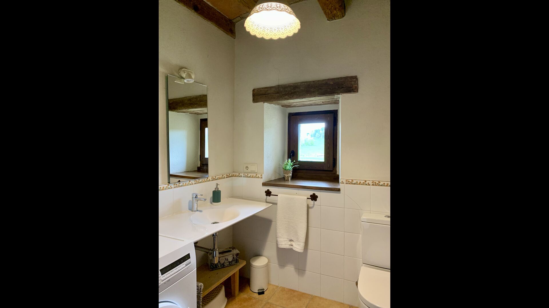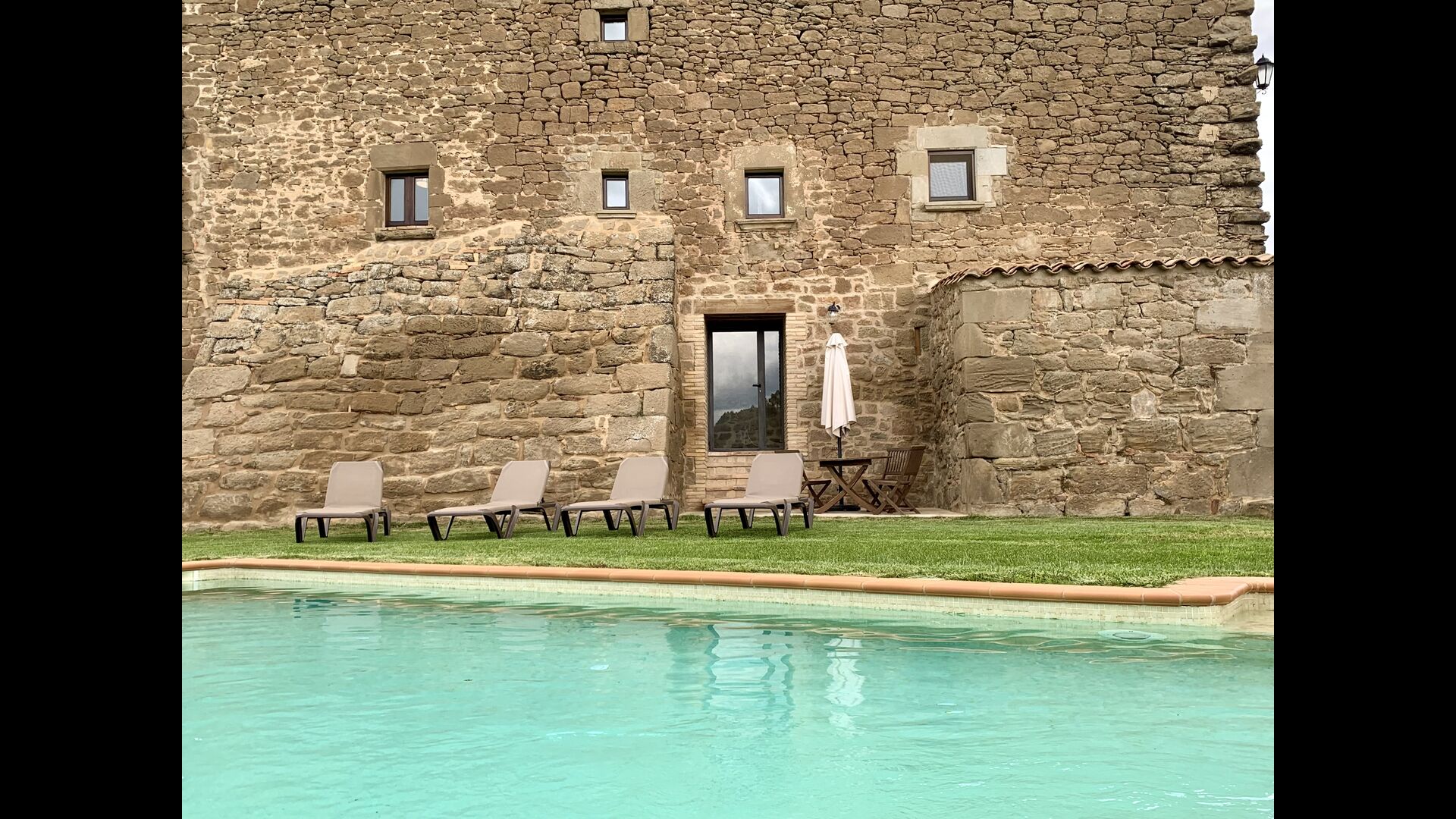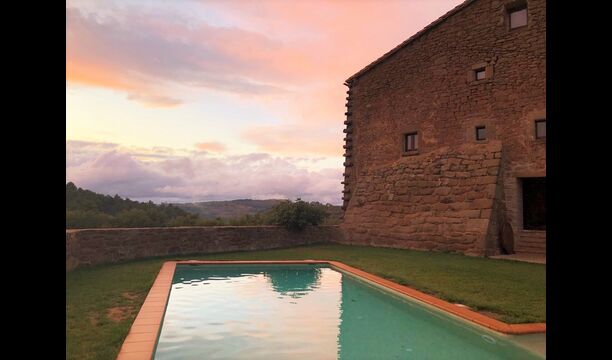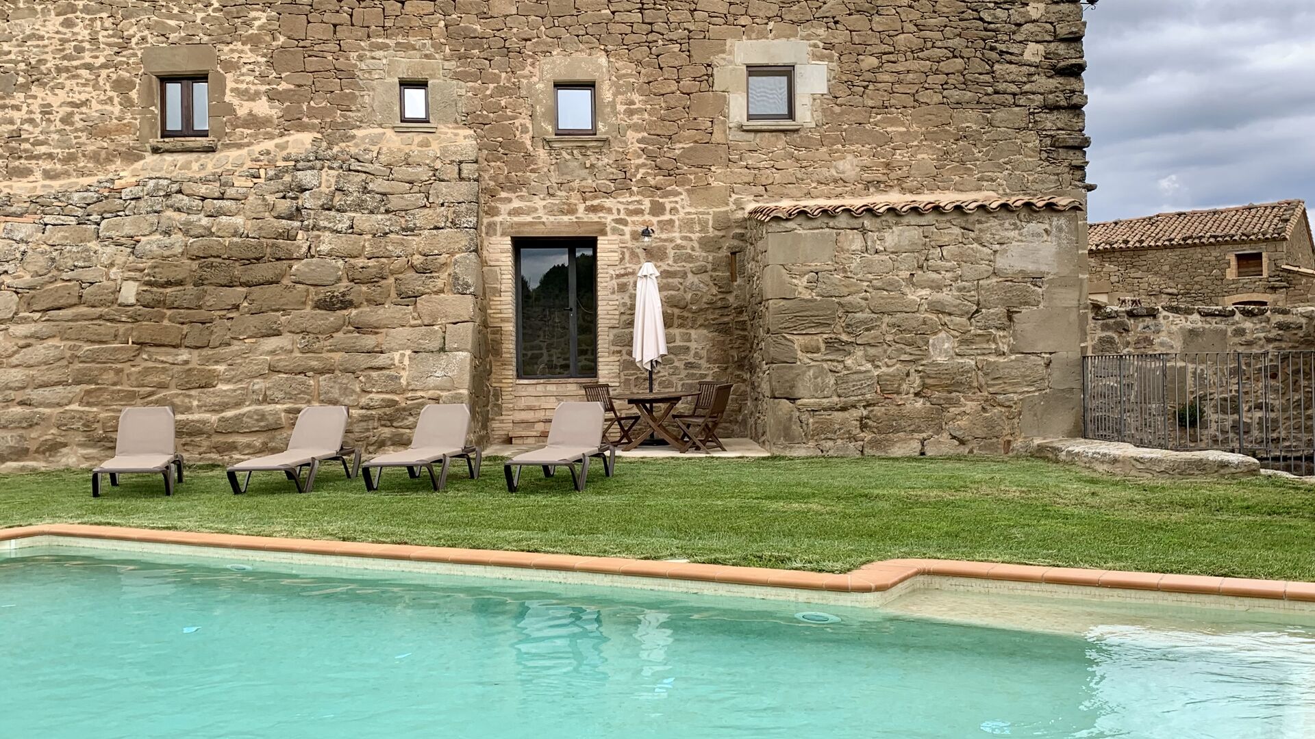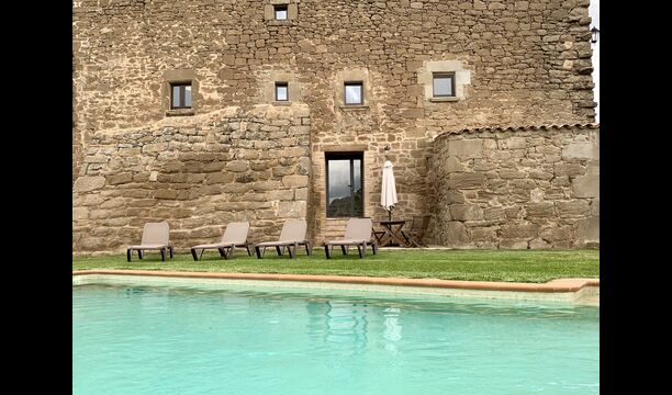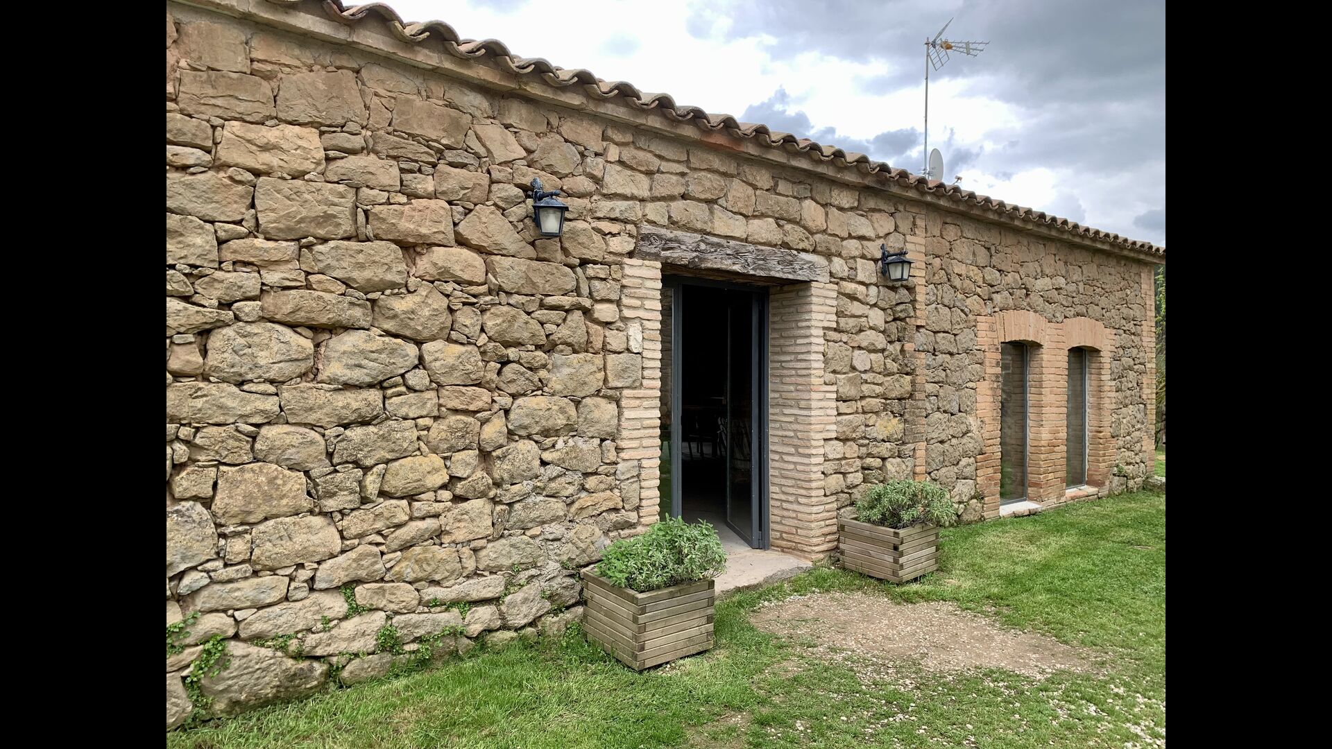 Eine kurvenreiche Schotterstraße führt durch das Grün zum schönen Kalksteinhaus, das aus einem Hauptgebäude und einem kleineren Nebengebäude besteht. Wenn Sie aus dem Auto steigen, werden Sie sofort von der wunderschönen Natur, die das Haus umgibt, beeindruckt. Der Poolbereich befindet sich vor dem Haus. Es hat einen atemberaubenden Blick auf die Täler und bequeme Sonnenliegen sind entlang des Pools aufgereiht. Wirklich der perfekte Ort, um in der katalanischen Sonne zu entspannen!