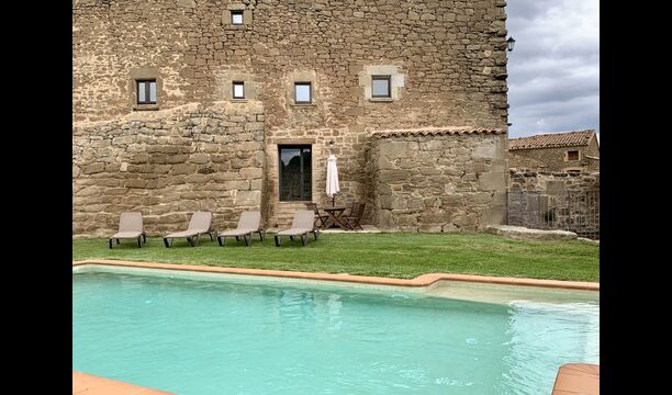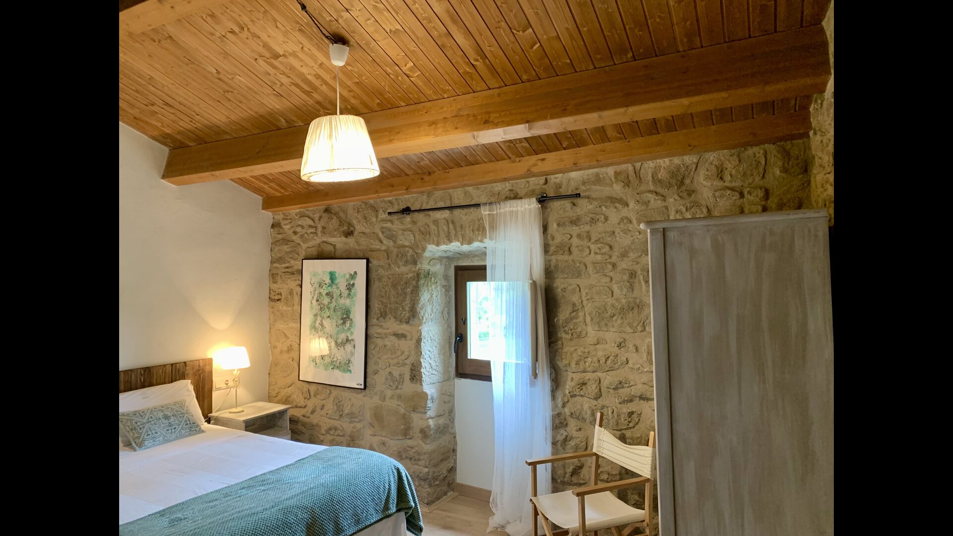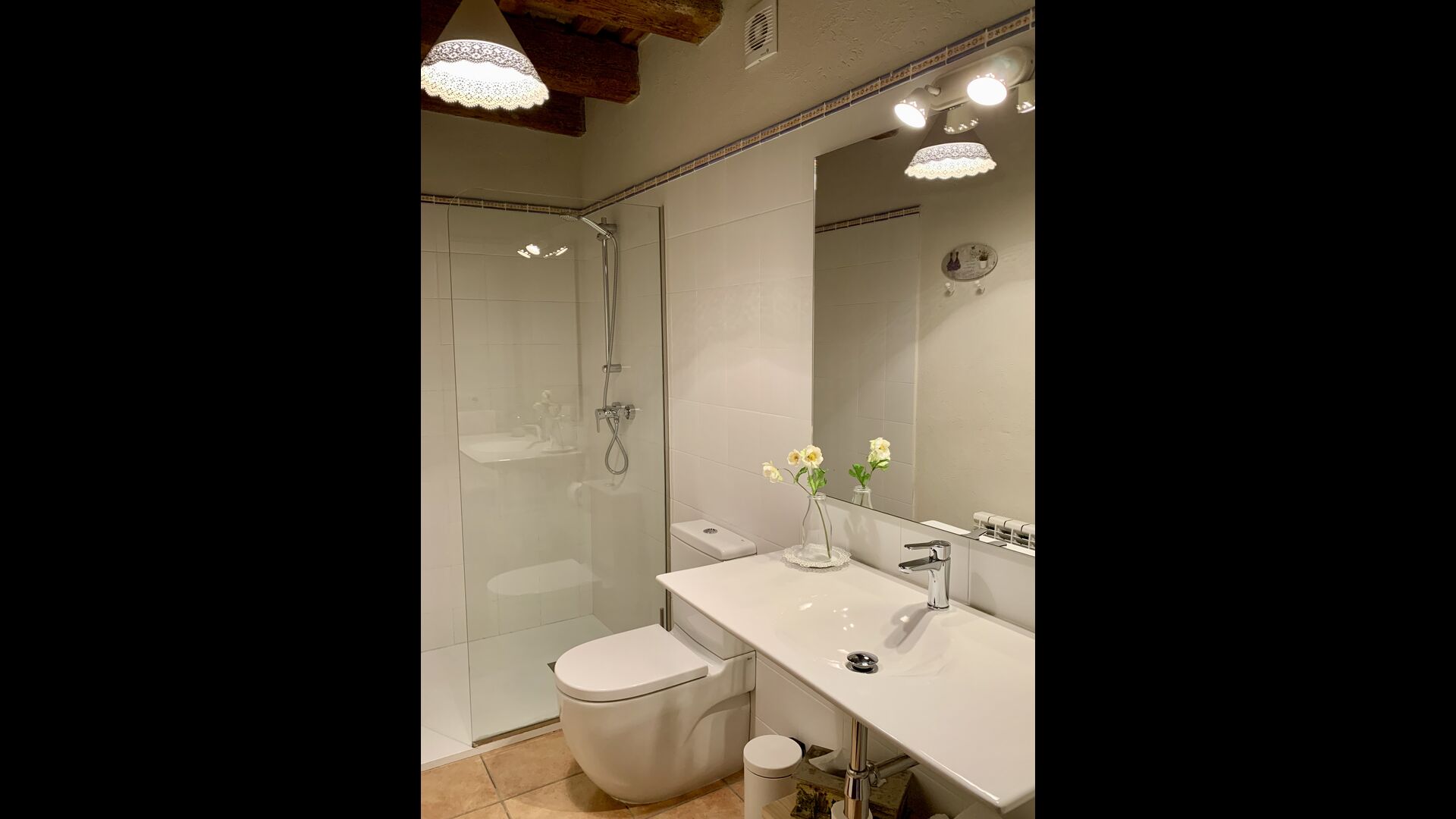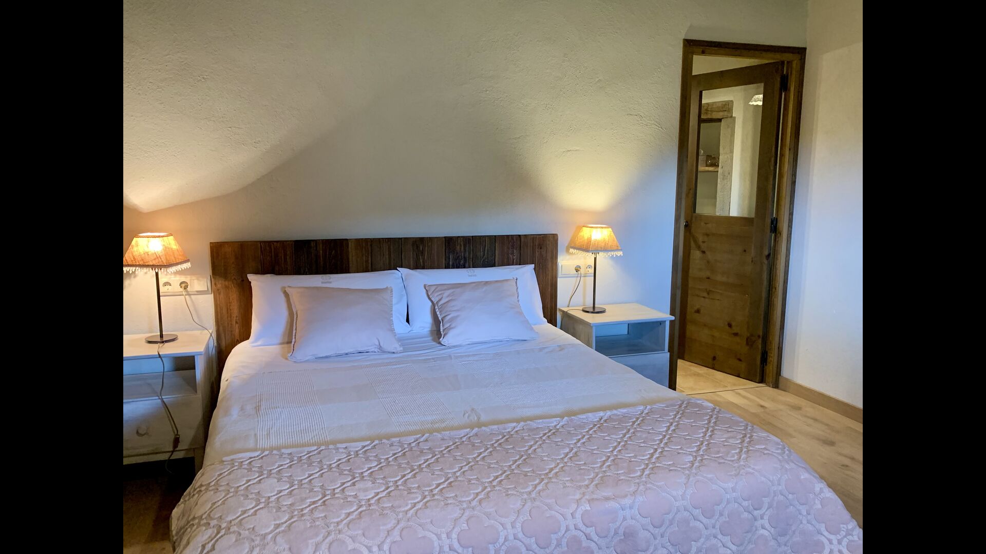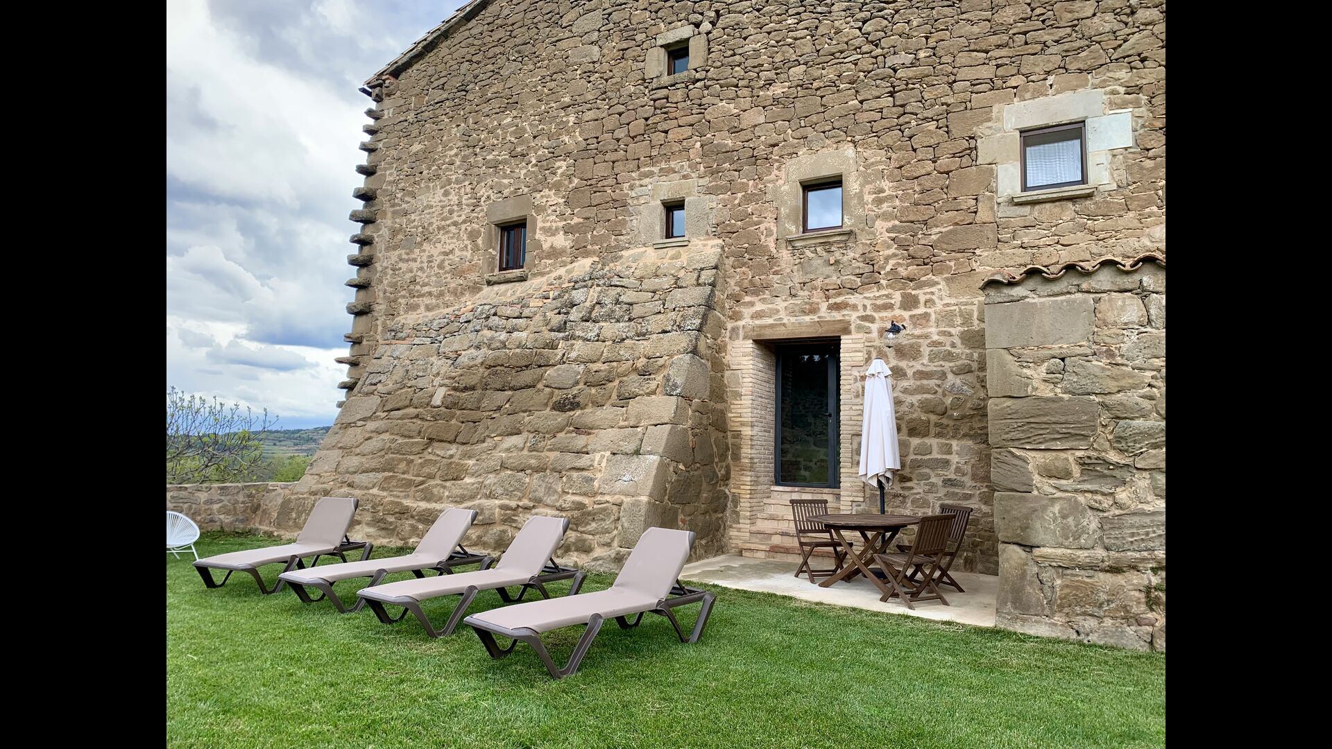 Eine kurvenreiche Schotterstraße führt durch das Grün zum schönen Kalksteinhaus, das aus einem Hauptgebäude und einem kleineren Nebengebäude besteht. Wenn Sie aus dem Auto steigen, werden Sie sofort von der wunderschönen Natur, die das Haus umgibt, beeindruckt. Der Poolbereich befindet sich vor dem Haus. Es hat einen atemberaubenden Blick auf die Täler und bequeme Sonnenliegen sind entlang des Pools aufgereiht. Wirklich der perfekte Ort, um in der katalanischen Sonne zu entspannen!