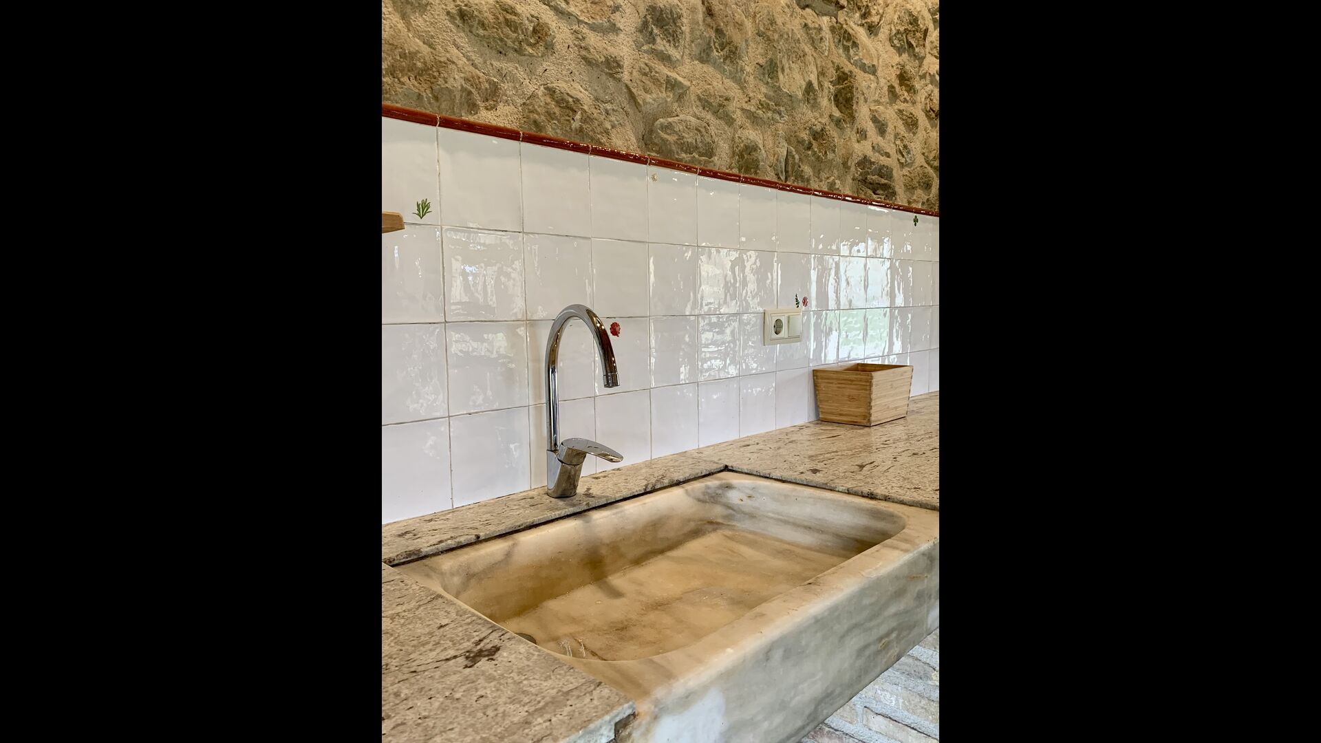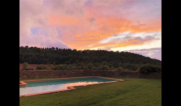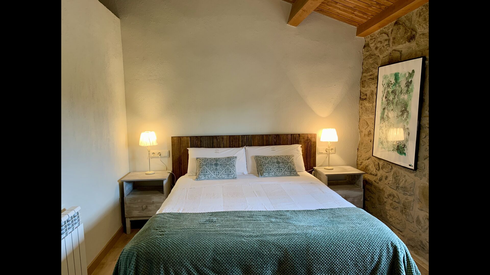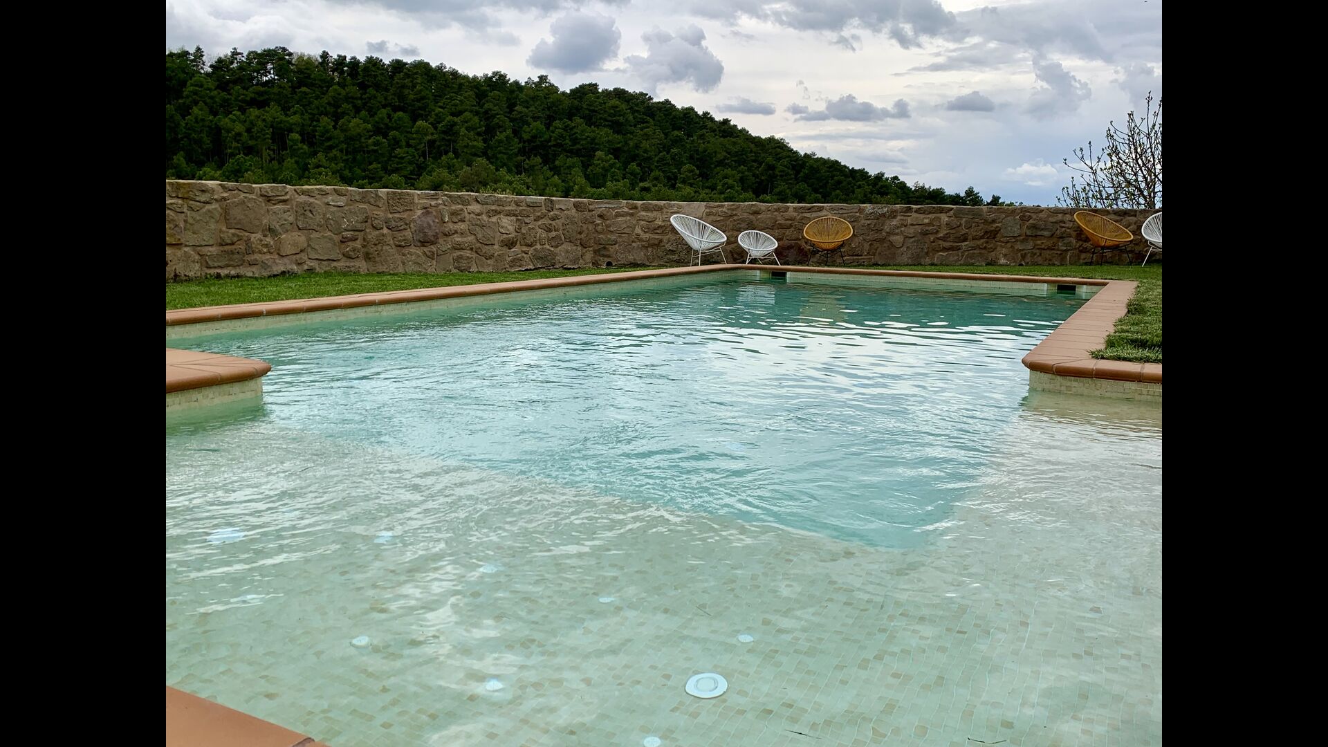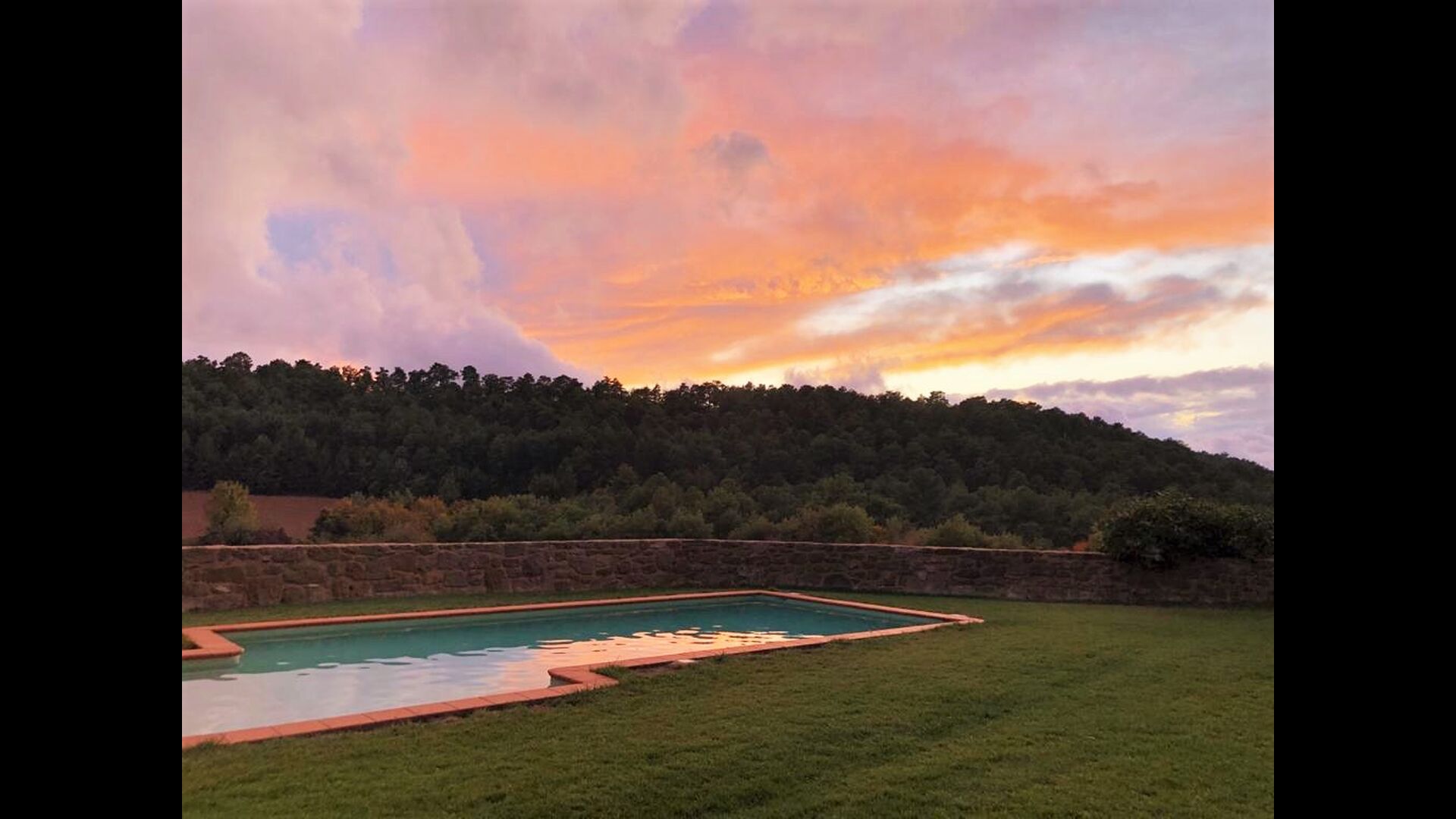 Eine kurvenreiche Schotterstraße führt durch das Grün zum schönen Kalksteinhaus, das aus einem Hauptgebäude und einem kleineren Nebengebäude besteht. Wenn Sie aus dem Auto steigen, werden Sie sofort von der wunderschönen Natur, die das Haus umgibt, beeindruckt. Der Poolbereich befindet sich vor dem Haus. Es hat einen atemberaubenden Blick auf die Täler und bequeme Sonnenliegen sind entlang des Pools aufgereiht. Wirklich der perfekte Ort, um in der katalanischen Sonne zu entspannen!