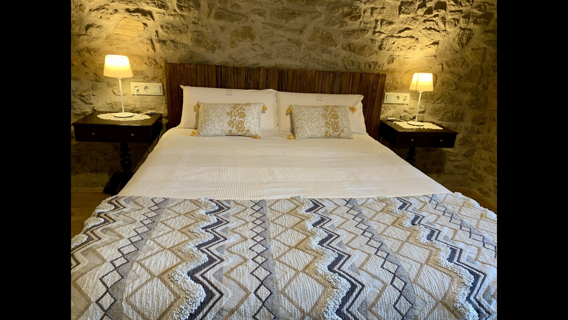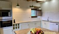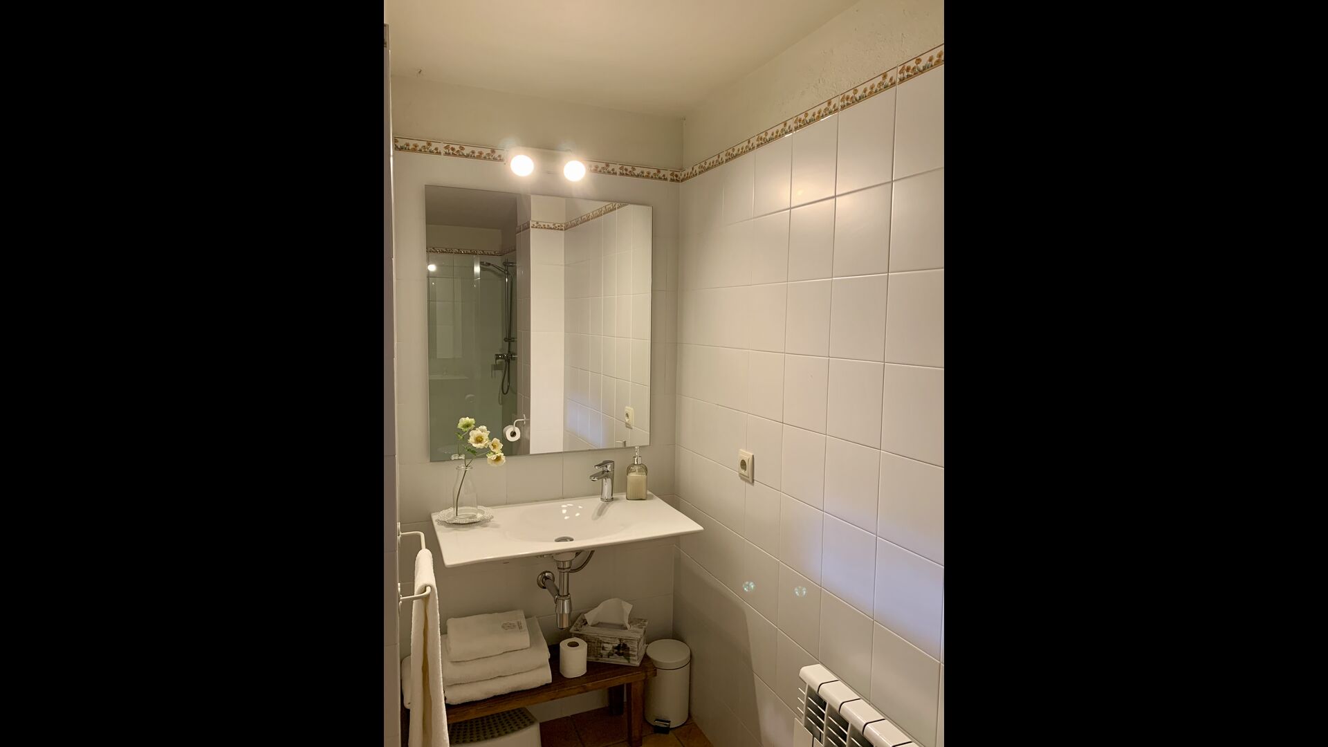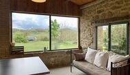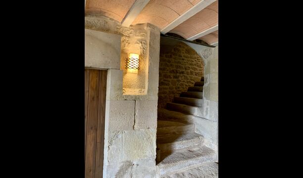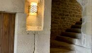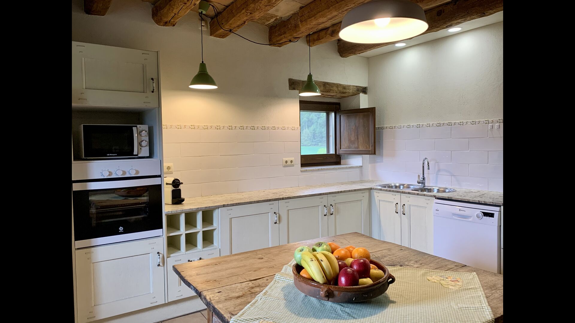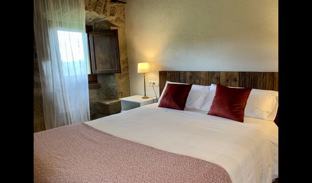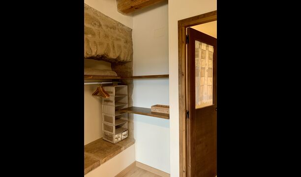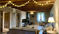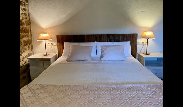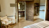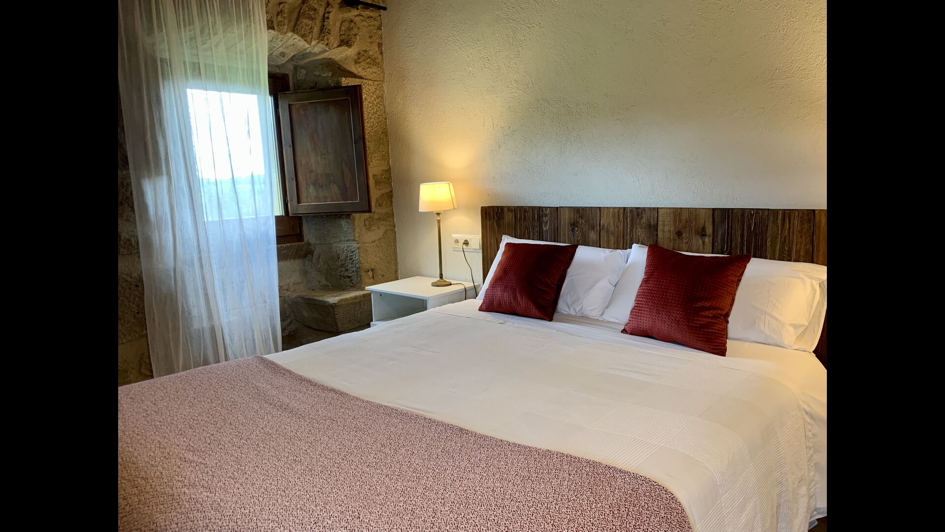 Beim Betreten des Hauptgebäudes betreten Sie eine große, einladende Halle, die von klassischer katalanischer Architektur und Design geprägt ist, wie den großen hölzernen Doppeltüren und Kalksteinwänden und -böden. Über das Treppenhaus gelangen Sie in den ersten Stock des Hauses, wo Sie das große Wohn- und Esszimmer betreten, das sich daran anschließt. Das Esszimmer verfügt über einen langen Holztisch mit Platz für die gesamte Gruppe und ist mit der voll ausgestatteten Küche verbunden, und das Wohnzimmer verfügt über gemütliche Sofas und einen Fernseher.