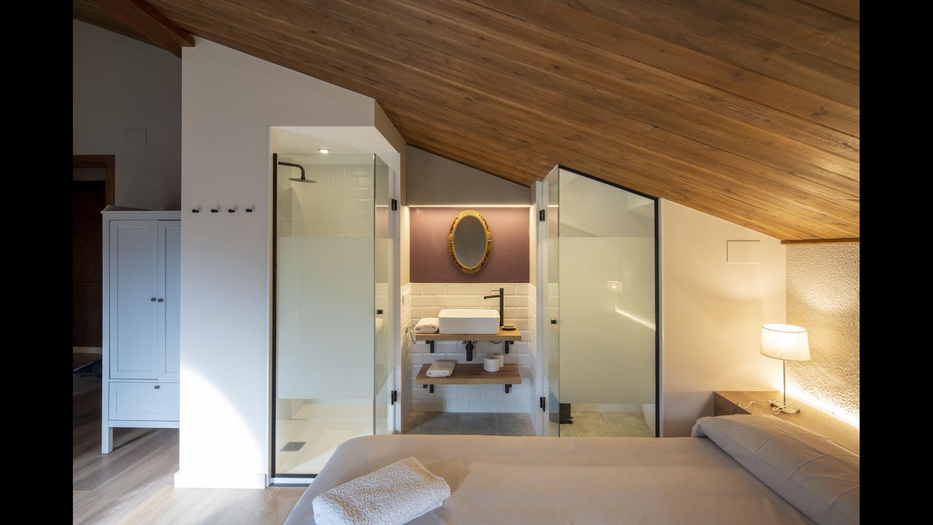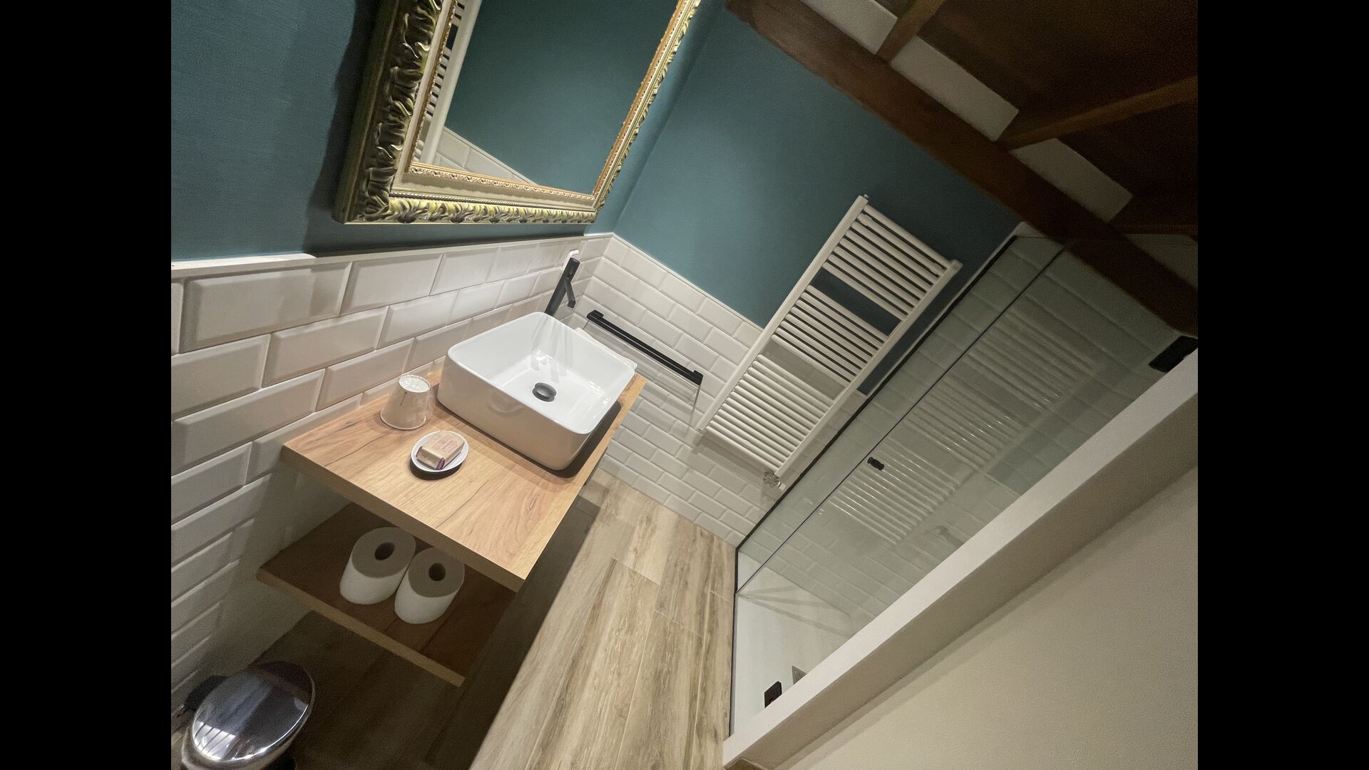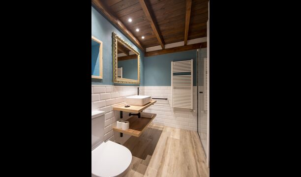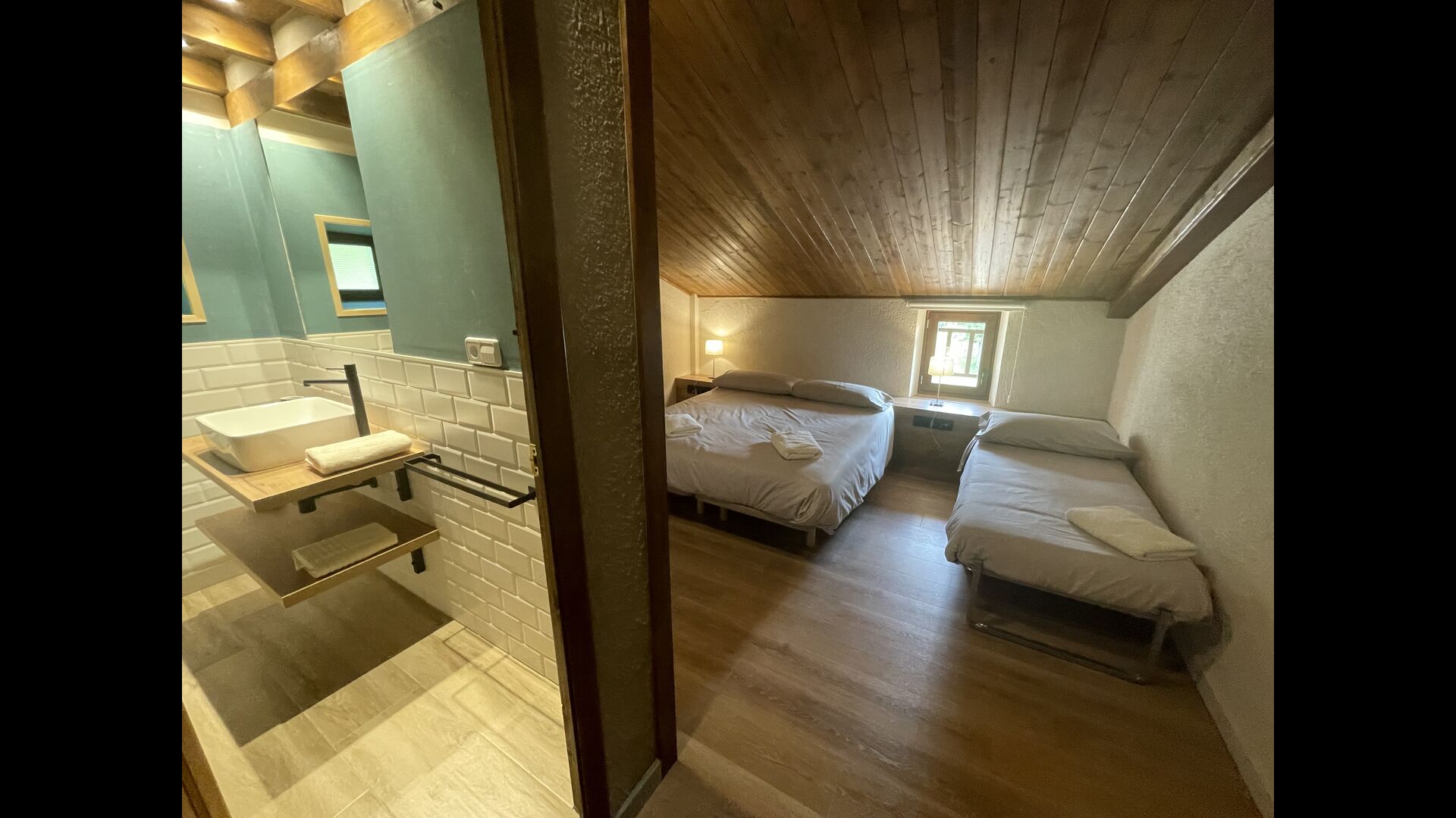 Im ersten Stock gibt es Unterkunftskapazitäten für bis zu 11 Personen – und hervorragende Panoramaaussichten. Alle Zimmer verfügen über ein eigenes Badezimmer mit Dusche und Handtüchern. Die Etage verfügt über 2 Doppelzimmer, 1 Doppelzimmer mit einem Schlafsofa für 2 Personen und 1 Doppelzimmer mit einer n Zustellbett für eine Person.