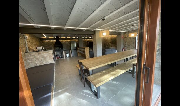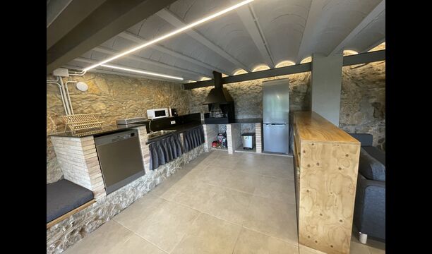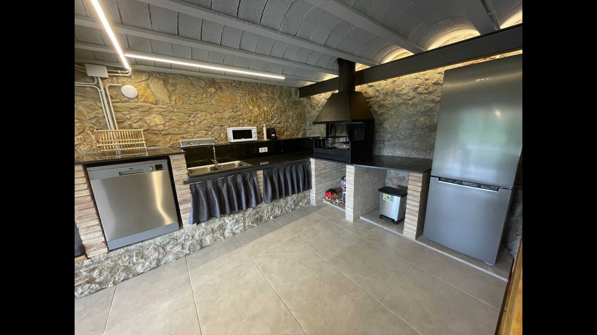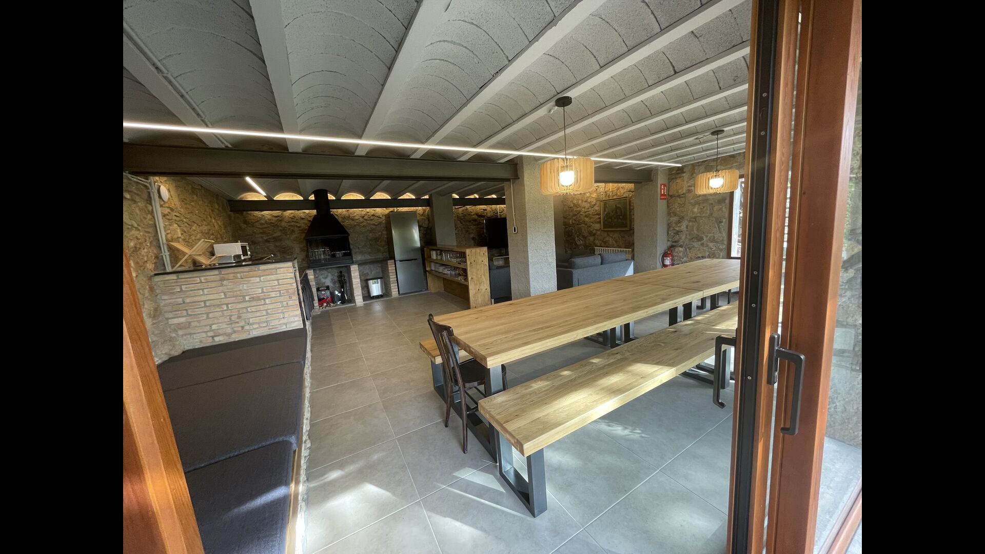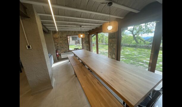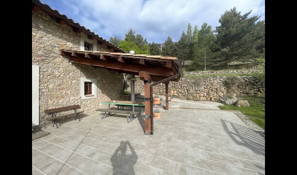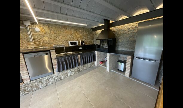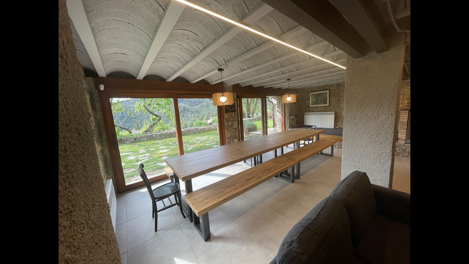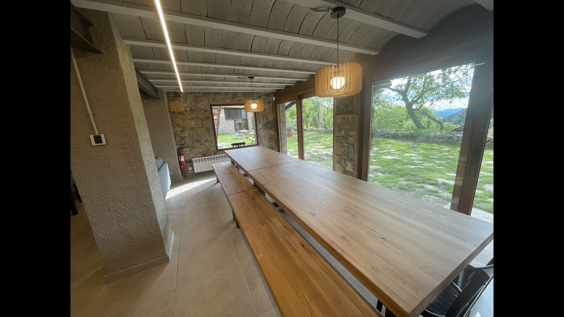 Das Haus besitzt auch einen wunderbaren Veranda-/Terrassenbereich, komplett mit einem eigenen großen Tisch (bis zu 14 Personen), einem eigenen Kühl-/Gefrierschrank und ein BBQ zum Grillen. Perfekt für ein Abendessen, wenn die Sonne in der ruhigen Berglandschaft untergeht, die sich vor Ihren Augen entfaltet, Abende mit Brettspielen und lange Gespräche mit Freunden oder der Familie bis in die späten Nachtstunden bei einer guten Flasche katalanischem Wein.