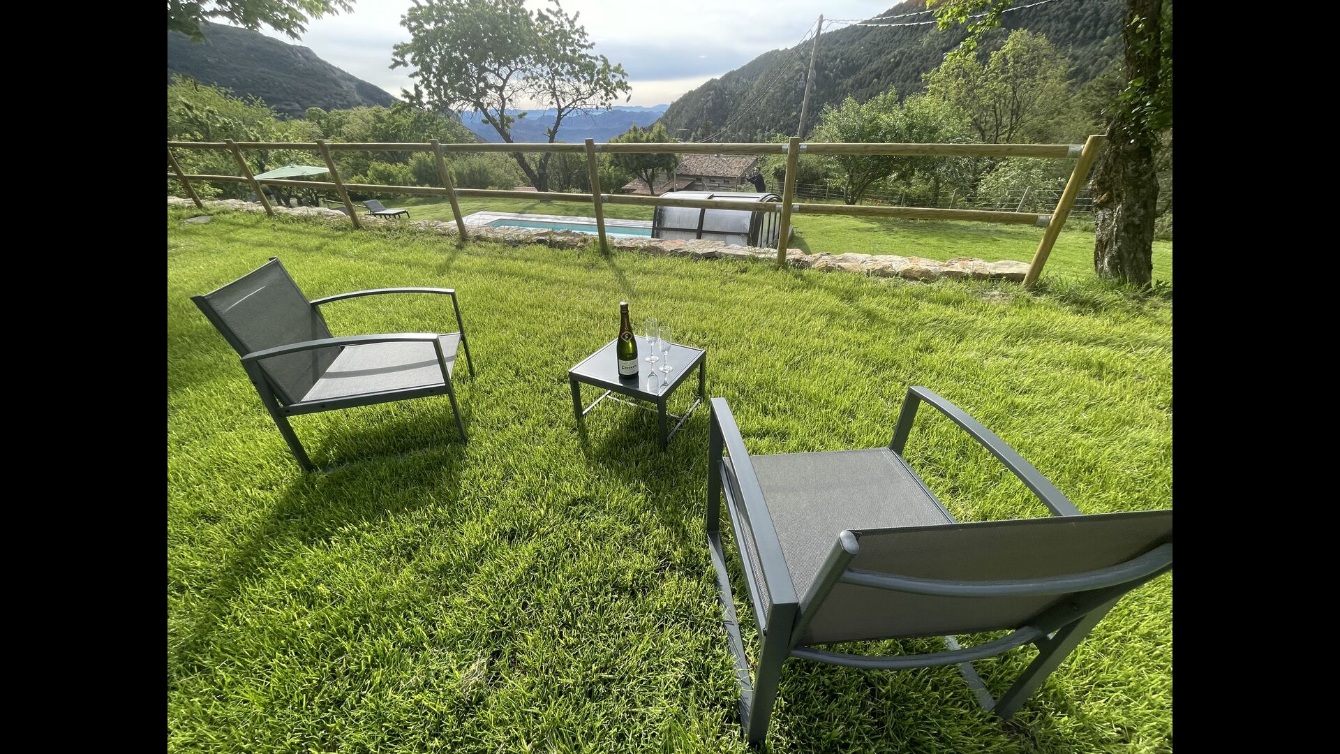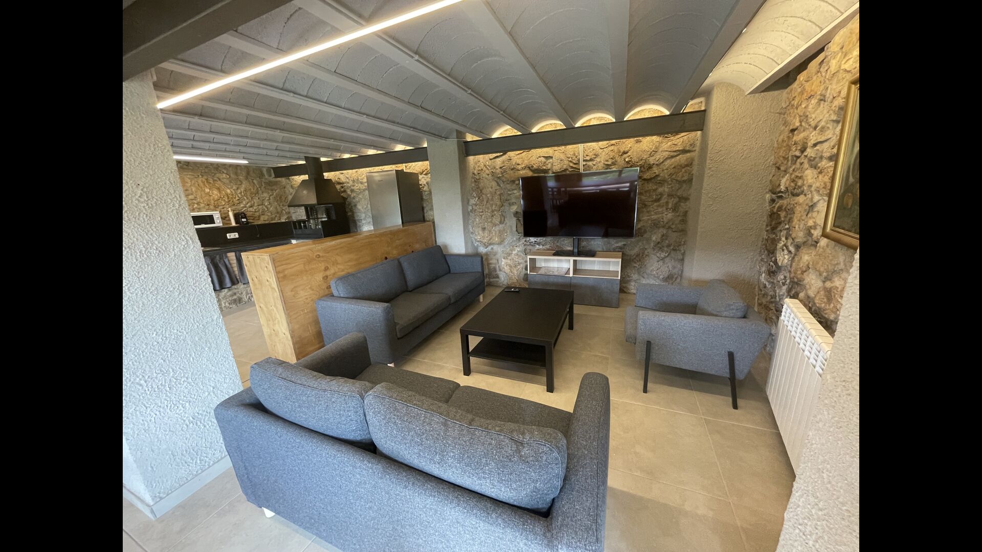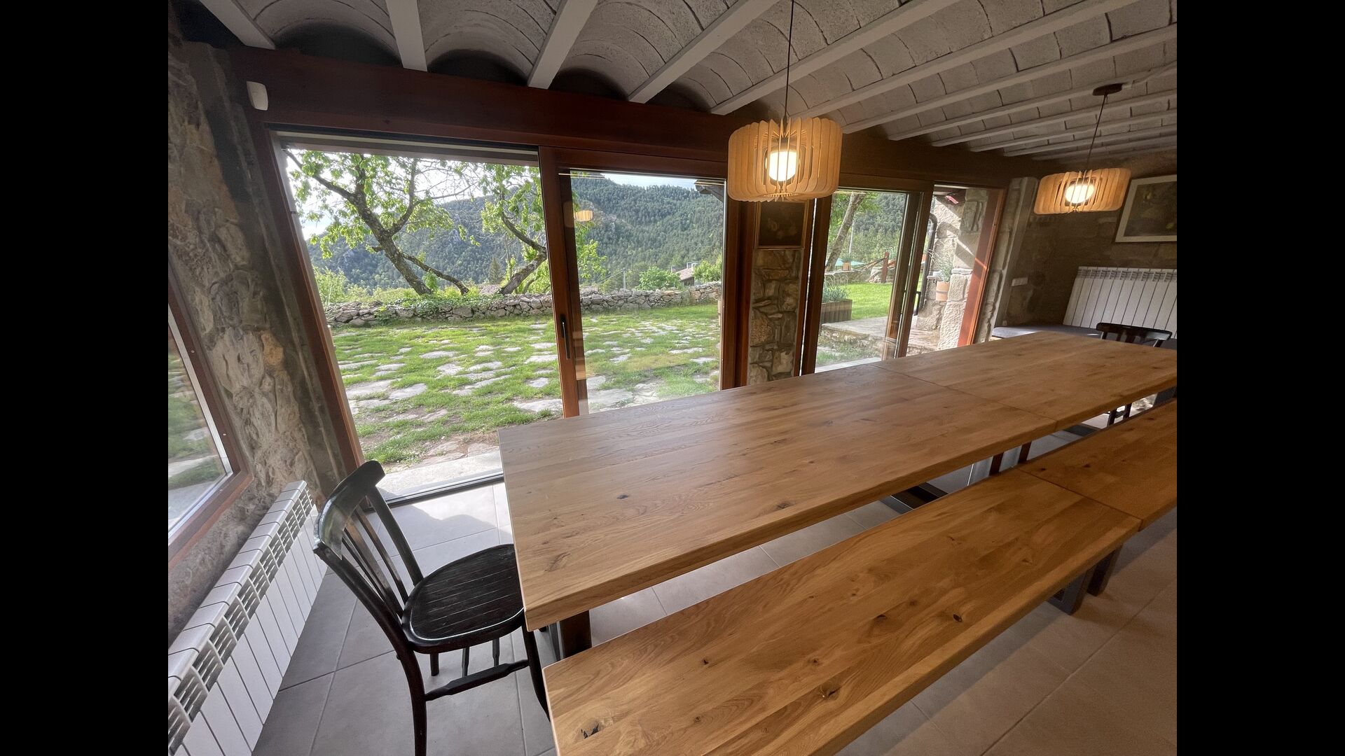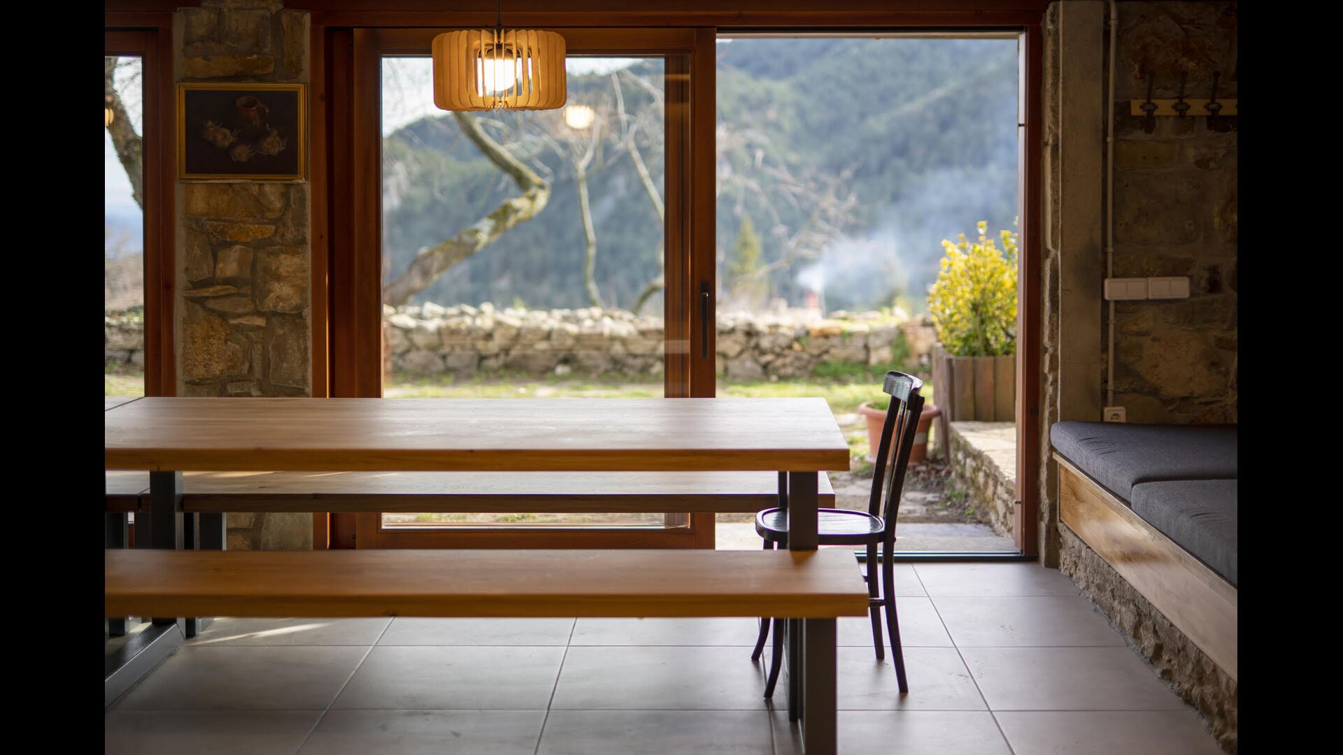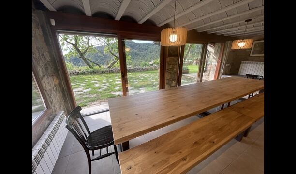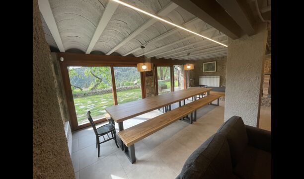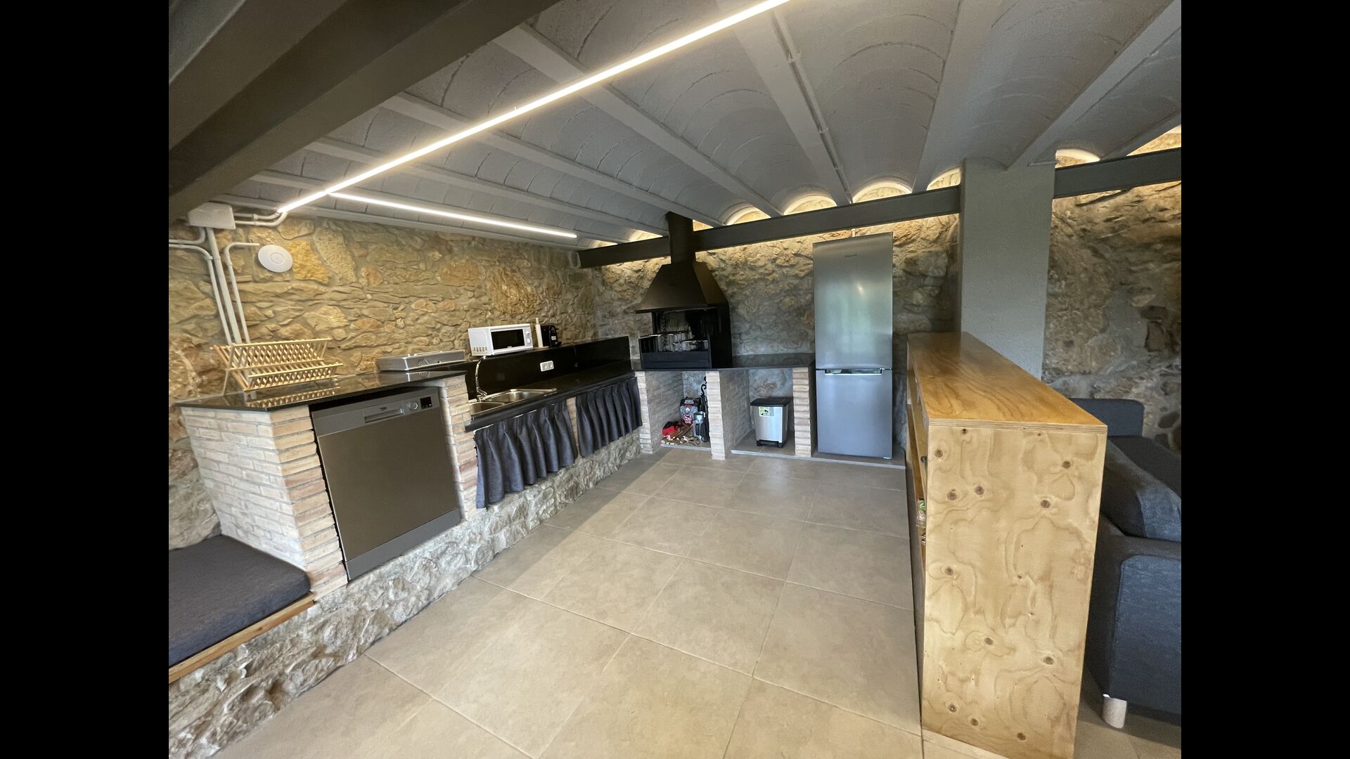 Das Haus besitzt auch einen wunderbaren Veranda-/Terrassenbereich, komplett mit einem eigenen großen Tisch (bis zu 14 Personen), einem eigenen Kühl-/Gefrierschrank und ein BBQ zum Grillen. Perfekt für ein Abendessen, wenn die Sonne in der ruhigen Berglandschaft untergeht, die sich vor Ihren Augen entfaltet, Abende mit Brettspielen und lange Gespräche mit Freunden oder der Familie bis in die späten Nachtstunden bei einer guten Flasche katalanischem Wein.