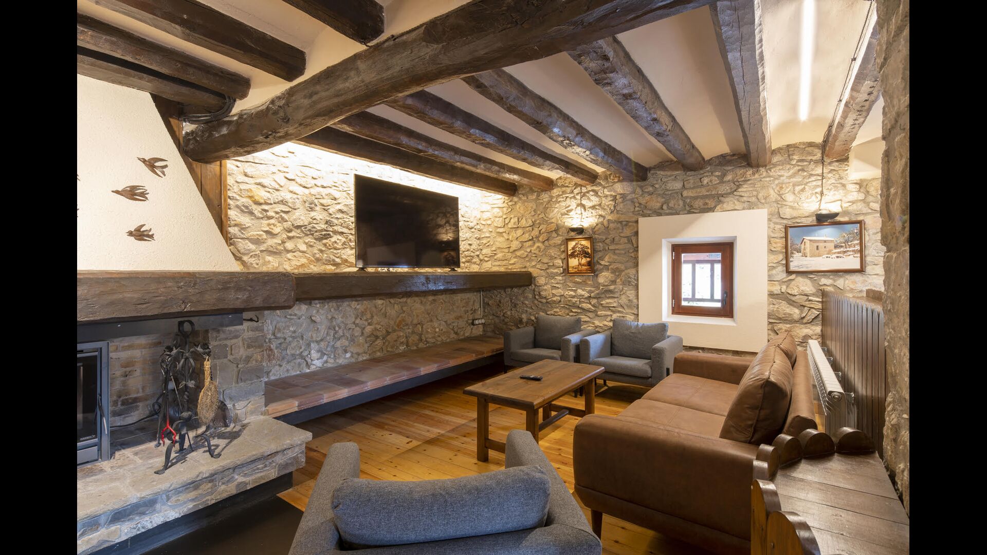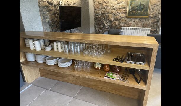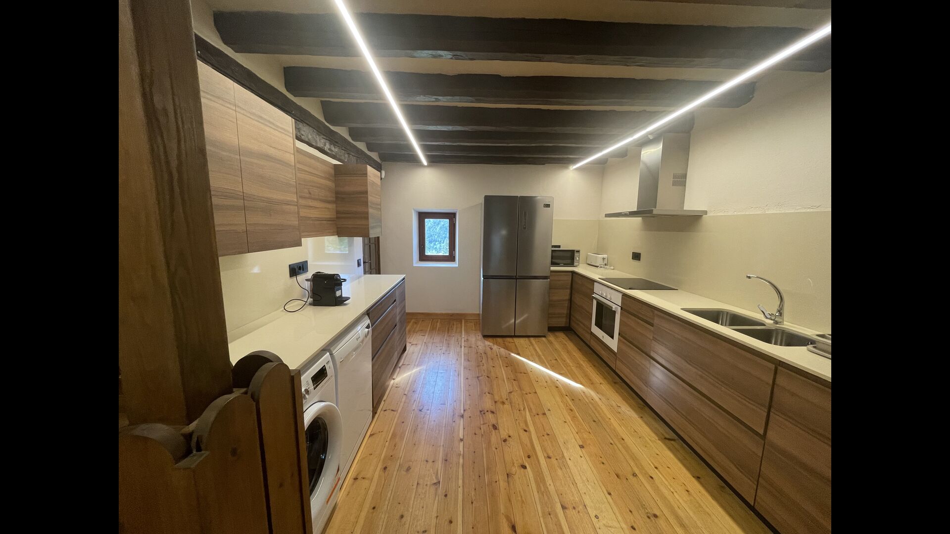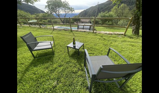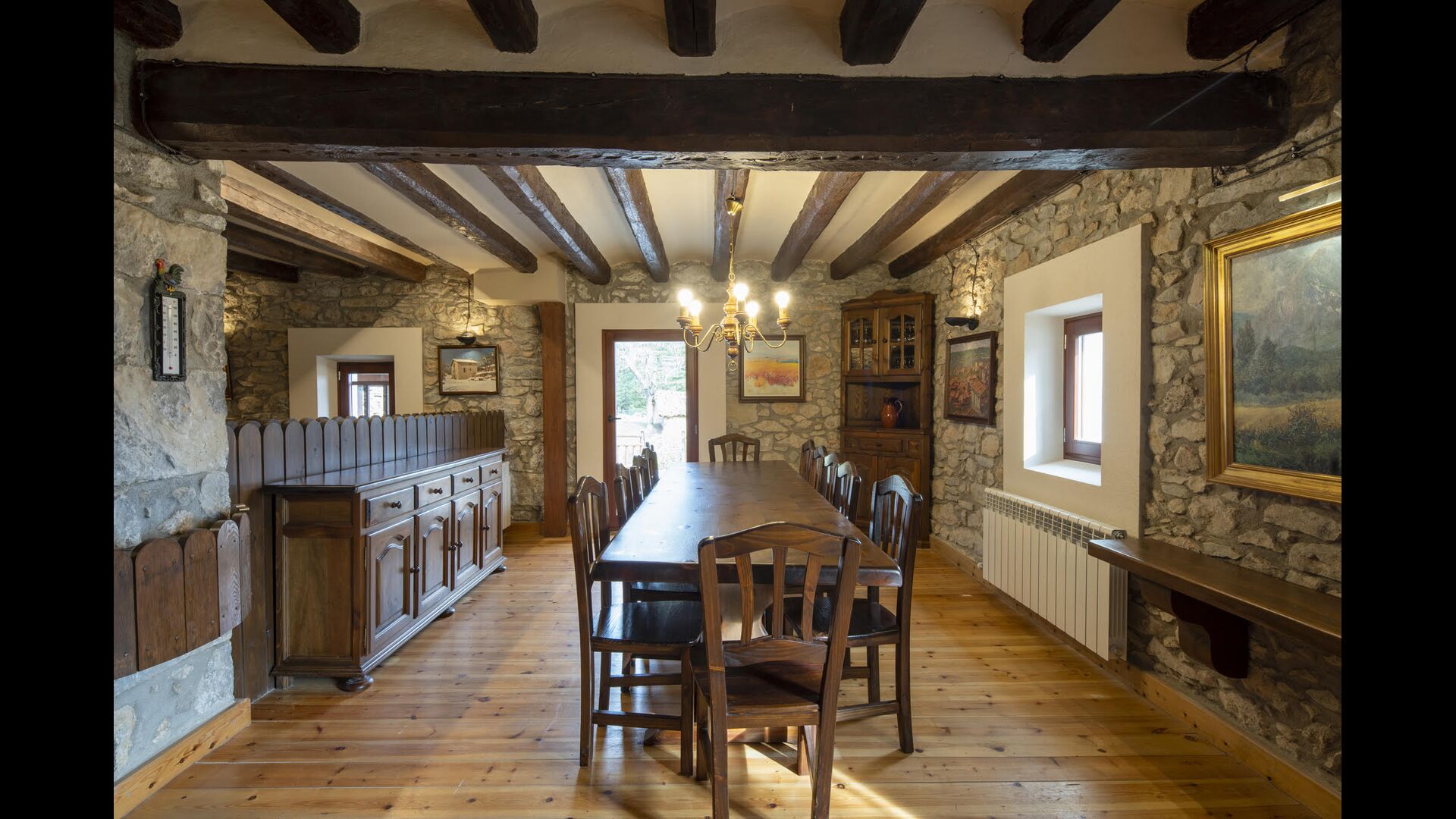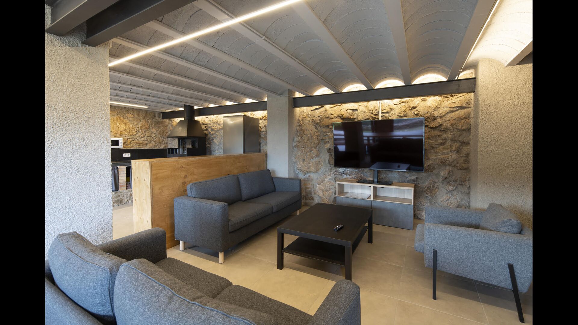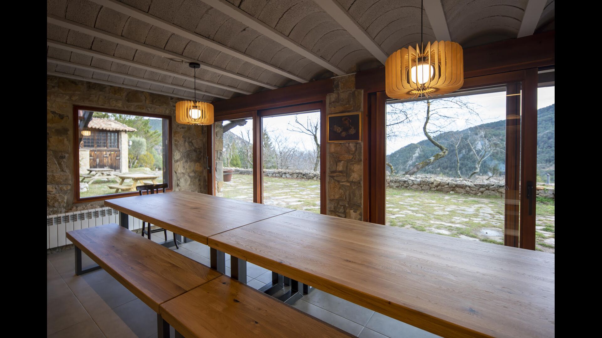 Das Haus besitzt auch einen wunderbaren Veranda-/Terrassenbereich, komplett mit einem eigenen großen Tisch (bis zu 14 Personen), einem eigenen Kühl-/Gefrierschrank und ein BBQ zum Grillen. Perfekt für ein Abendessen, wenn die Sonne in der ruhigen Berglandschaft untergeht, die sich vor Ihren Augen entfaltet, Abende mit Brettspielen und lange Gespräche mit Freunden oder der Familie bis in die späten Nachtstunden bei einer guten Flasche katalanischem Wein.