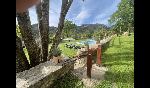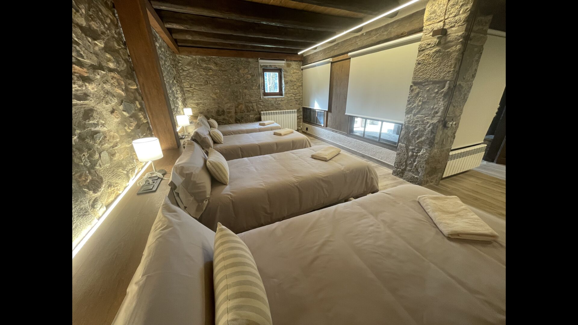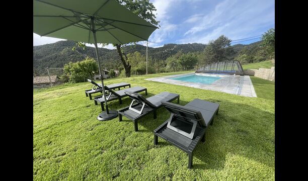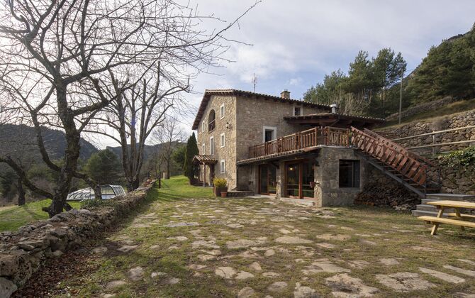 1,25 Kilometer hoch oben in der bergigen, idyllischen und malerischen katalanischen Region Berguedà liegt Mas del Pintàr; ein wunderschönes, traditionelles Bauernhaus aus der Mitte bis Ende des 19. Jahrhunderts – sorgfältig renoviert mit einem modernen Touch und allen notwendigen Einrichtungen - mitten in einigen der schönsten Landschaften und Natur, die Katalonien zu bieten hat! Das Haus ist ein idealer Ort, um mit Gruppen von Freunden oder der Familie zu bleiben, da es bis zu 15 Personen aufnehmen kann, ausgestattet mit 5 Schlafzimmern und einem eigenen Badezimmer Badezimmer, Fernseher, ein Kamin und eine Küche für alle Grundbedürfnisse und mehr…und außen hat das Anwesen einen Swimmingpool, eine Veranda (ausgestattet mit Grill</strong). > Essentials und mehr) sowie ein hervorragendes Solarium.